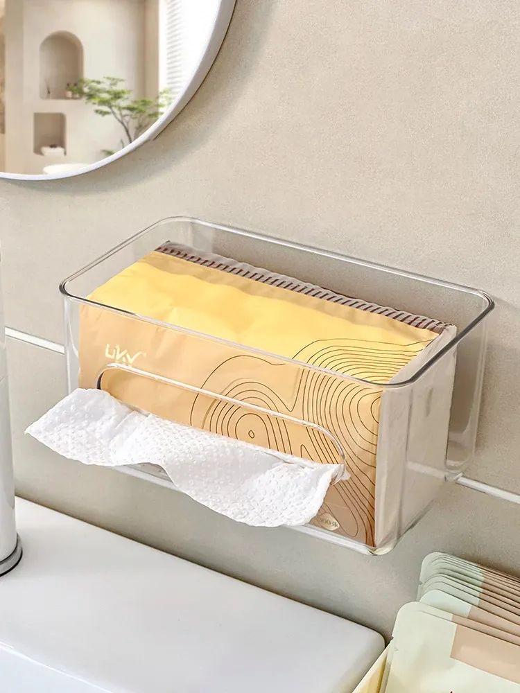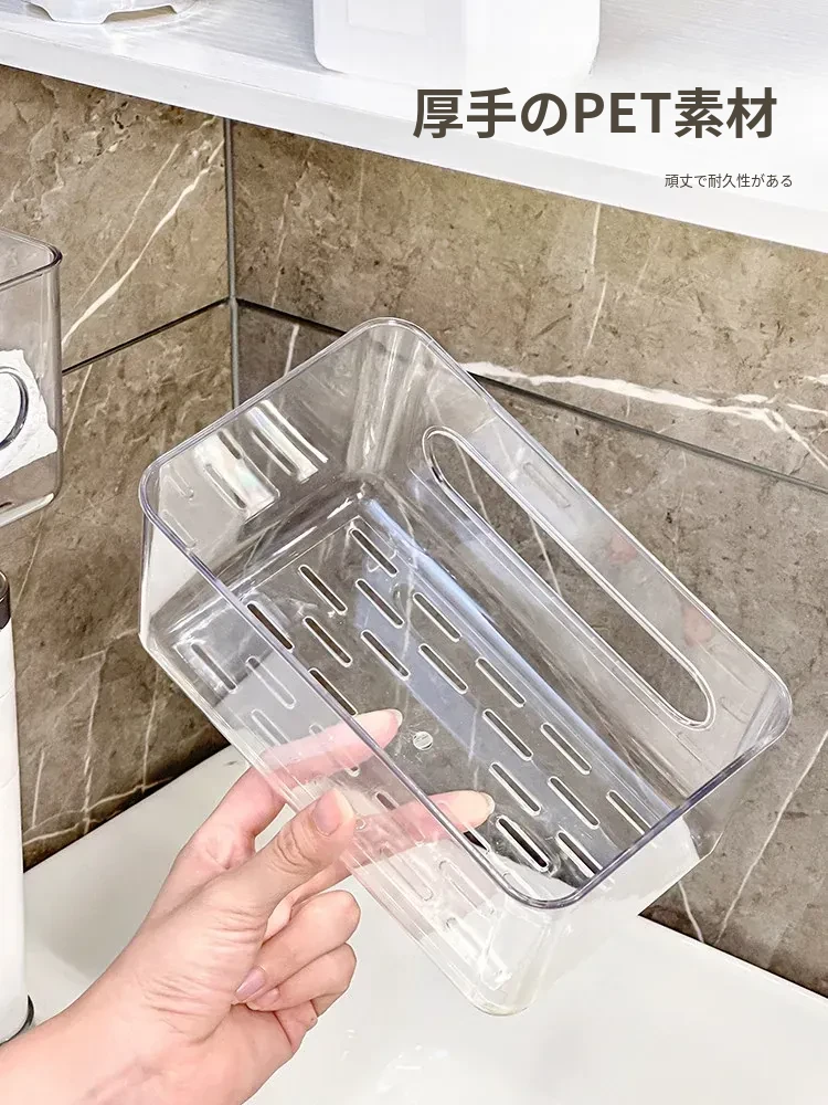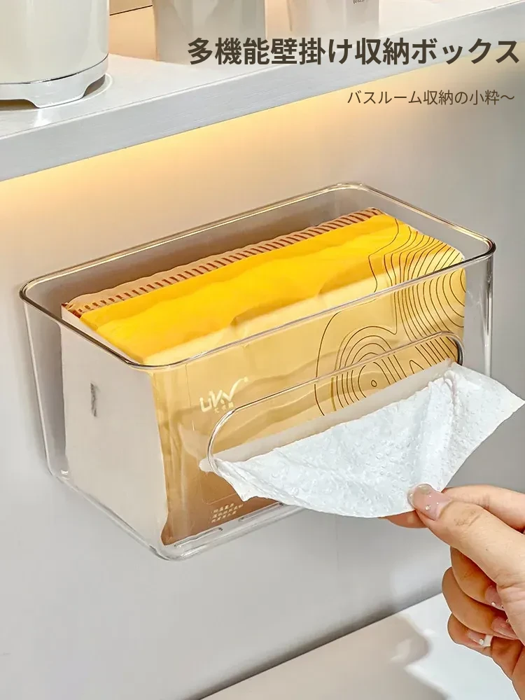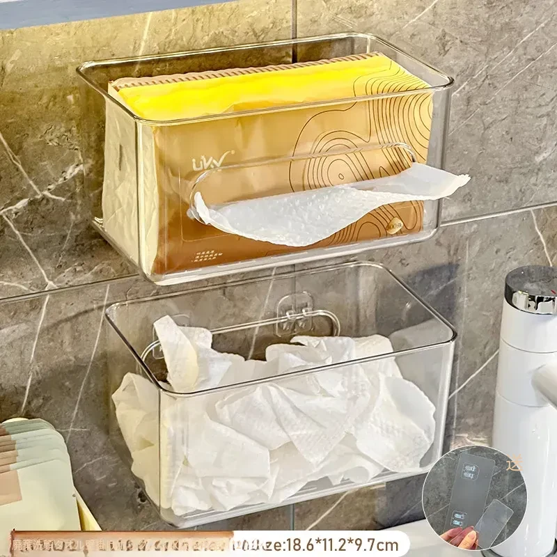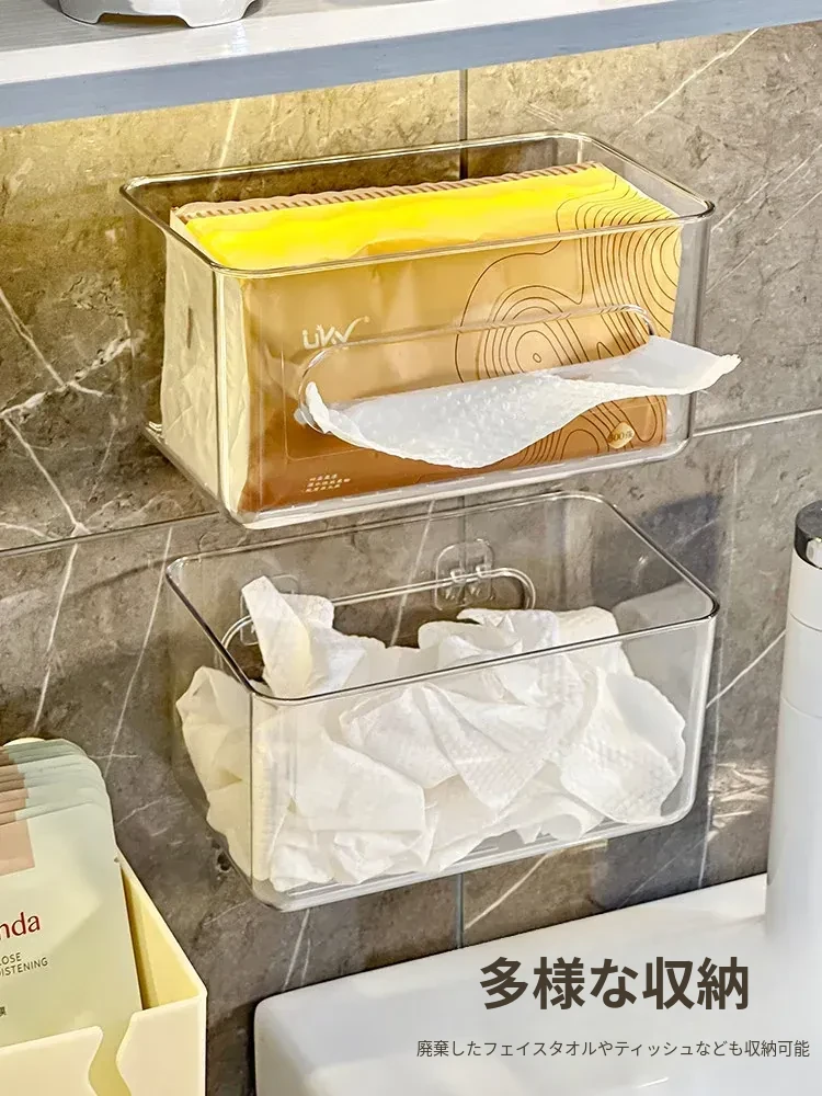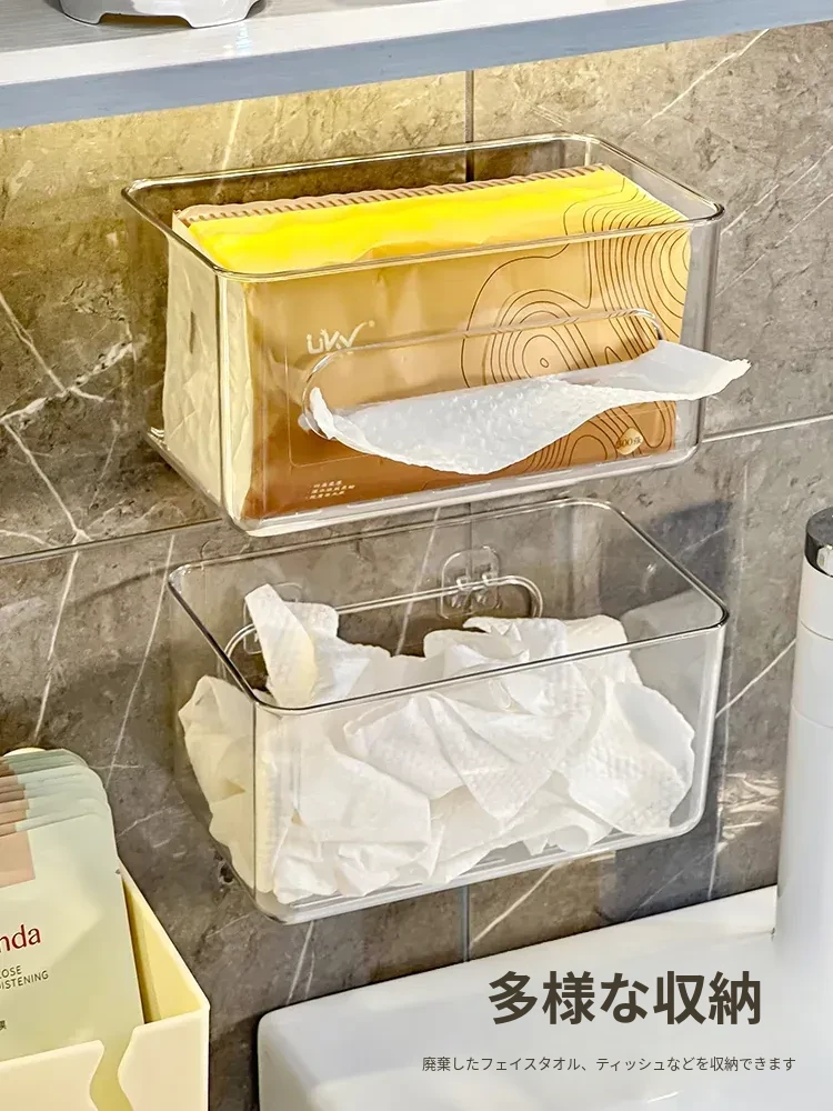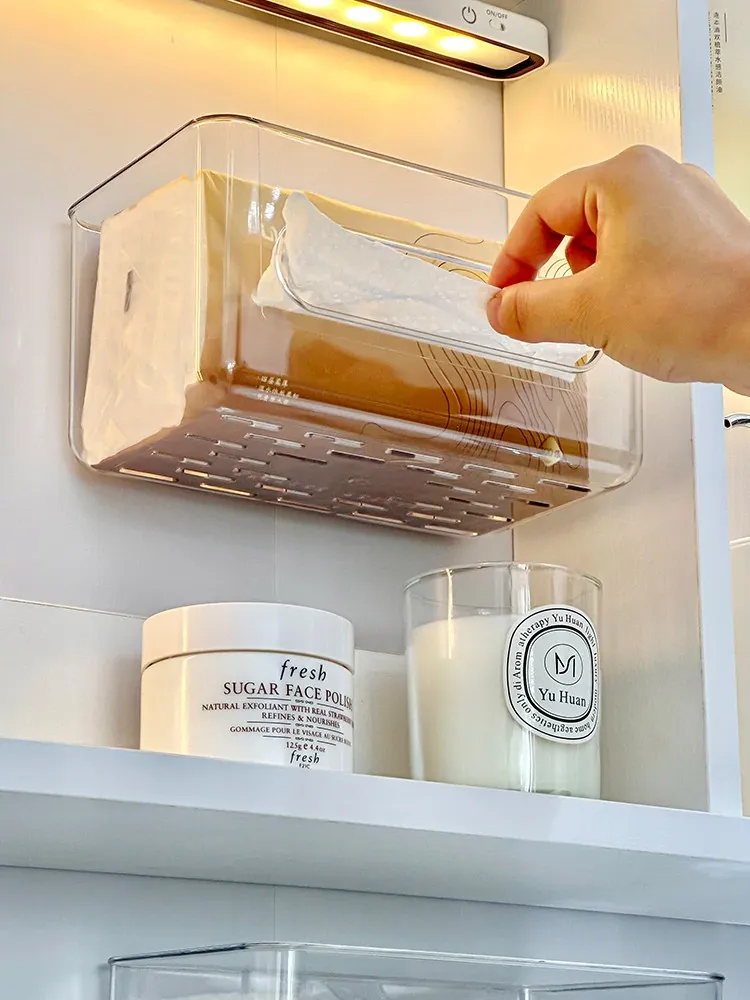 使い捨てフェイスタオル収納ボックス - 浴室壁掛けタイプ、柔らかい使い捨てペーパータオル、便利な水切りハンギングバスケット!清潔でスタイリッシュな収納で、毎日の洗顔がもっと快適に!