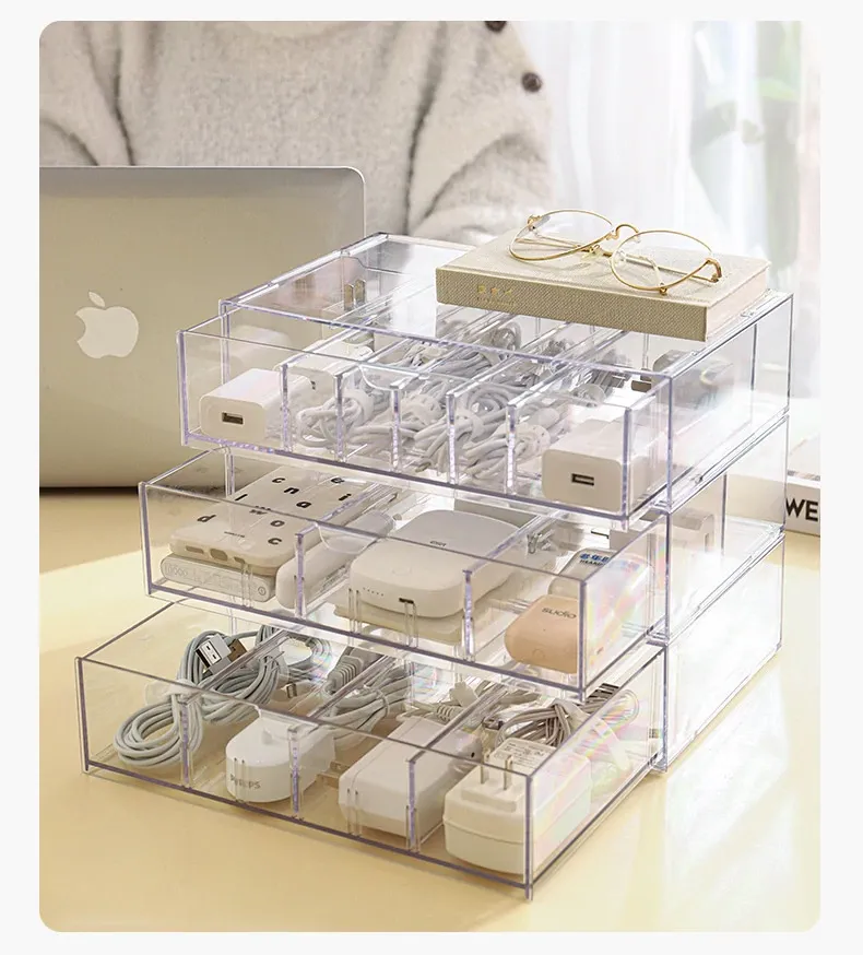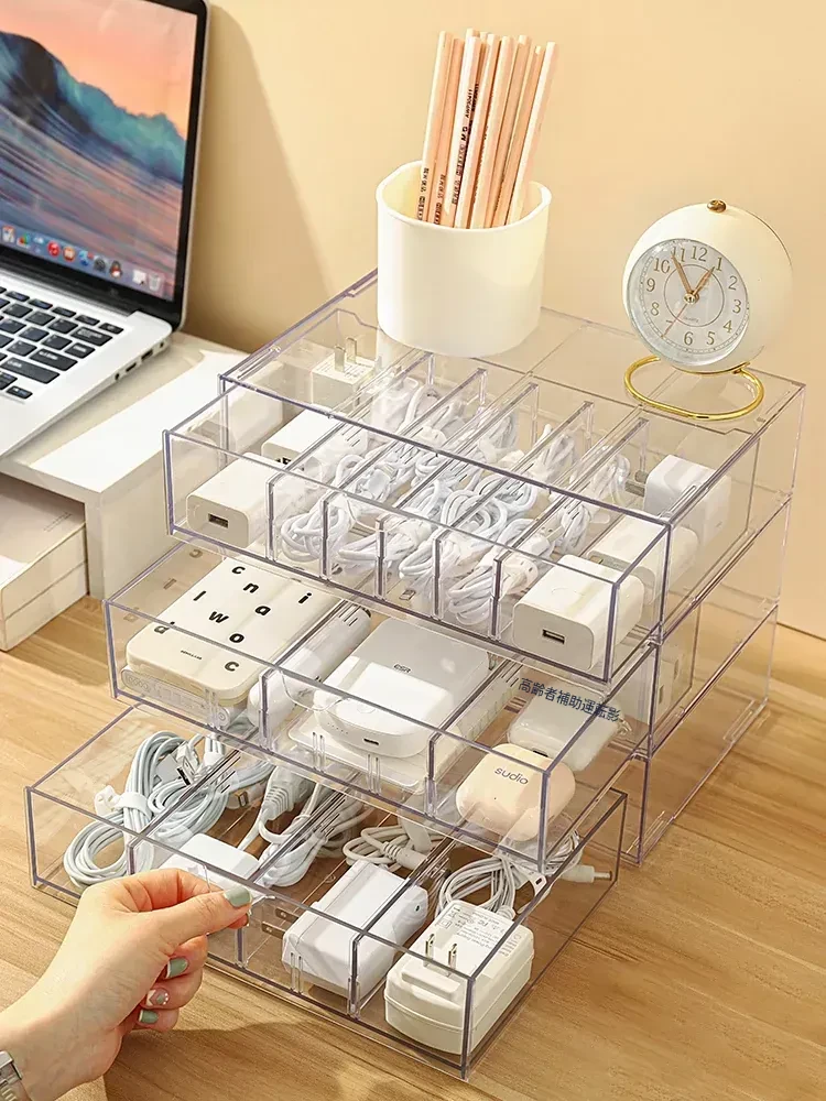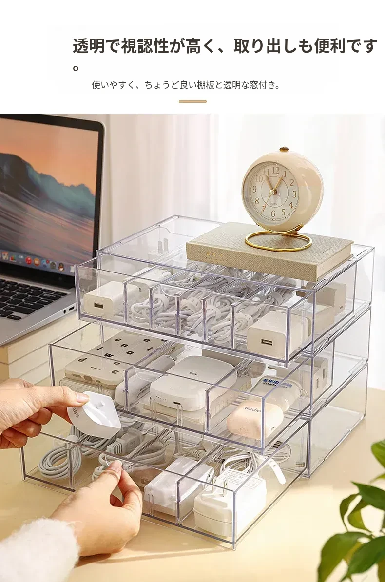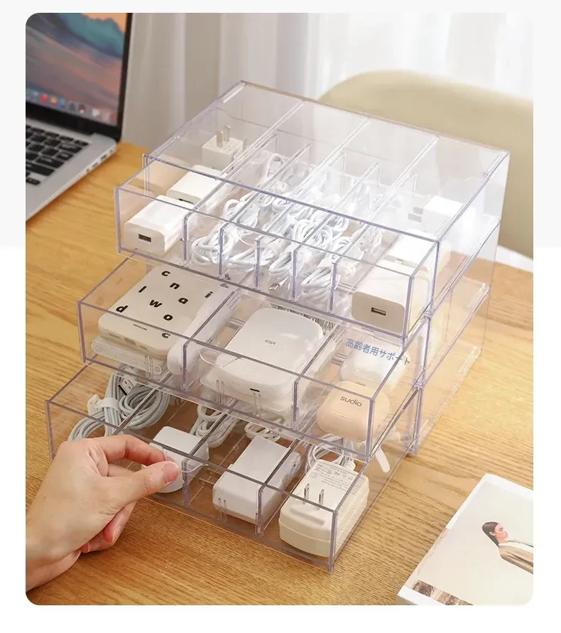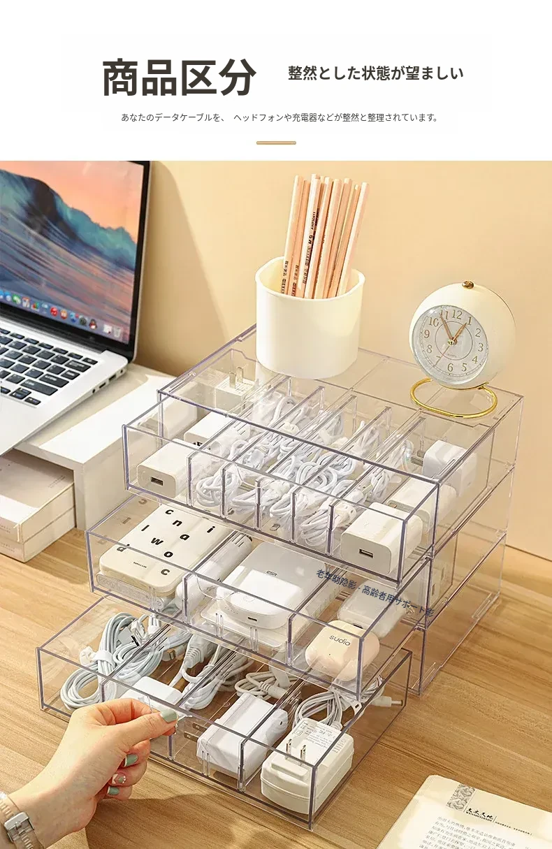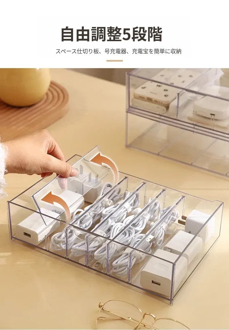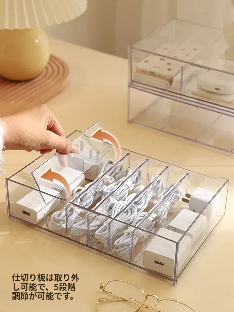 デスク引き出し用データケーブル収納ボックス - プラグとコードを整頓!パソコン充電器や電源コードもスッキリ収納できる便利な整理ラック!お部屋をスッキリさせて、作業効率アップ!