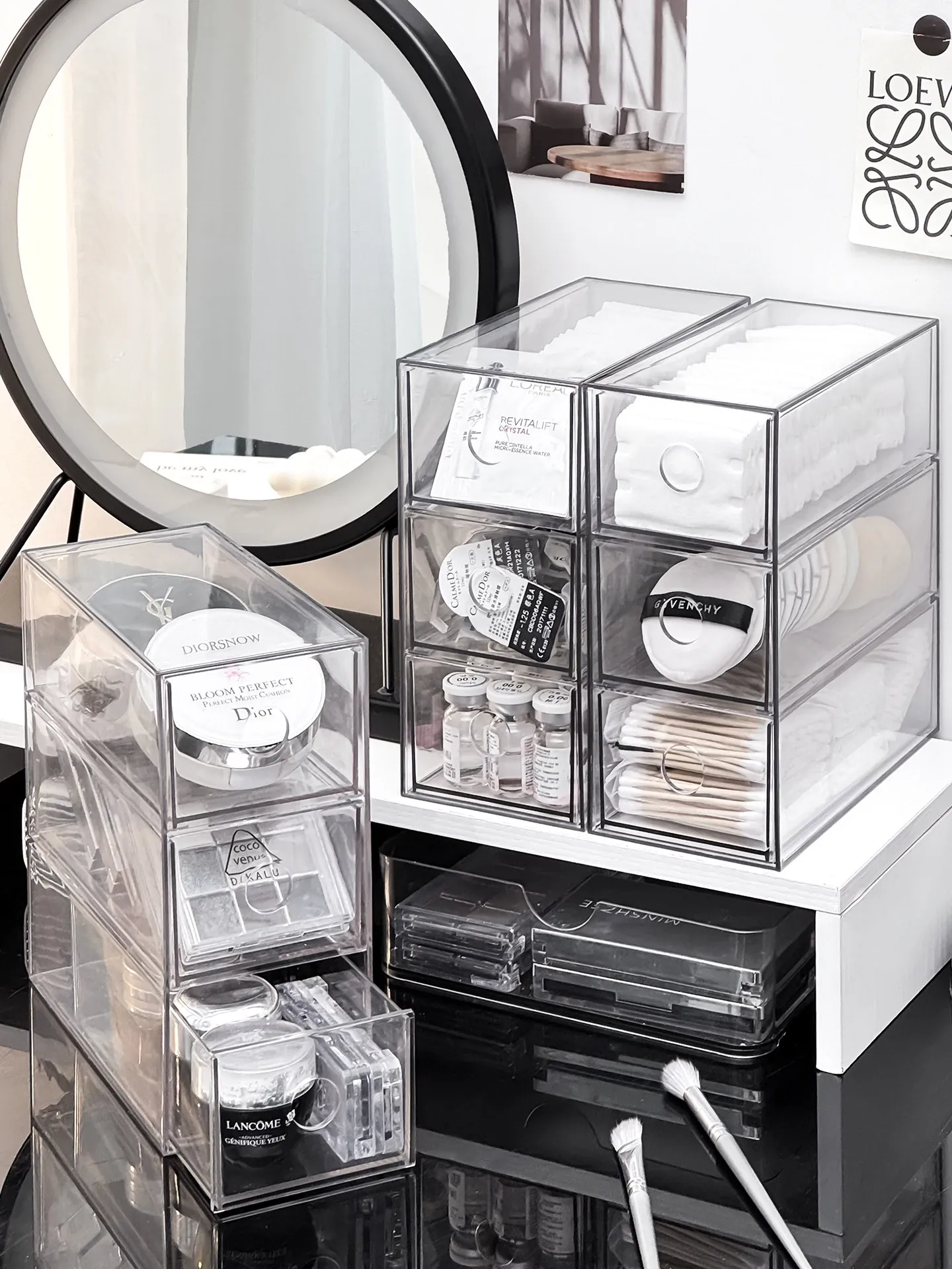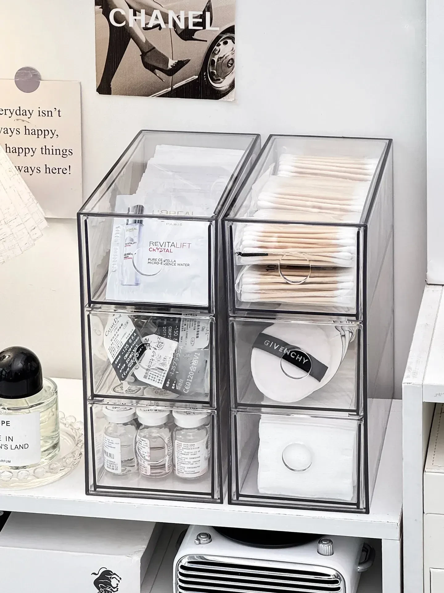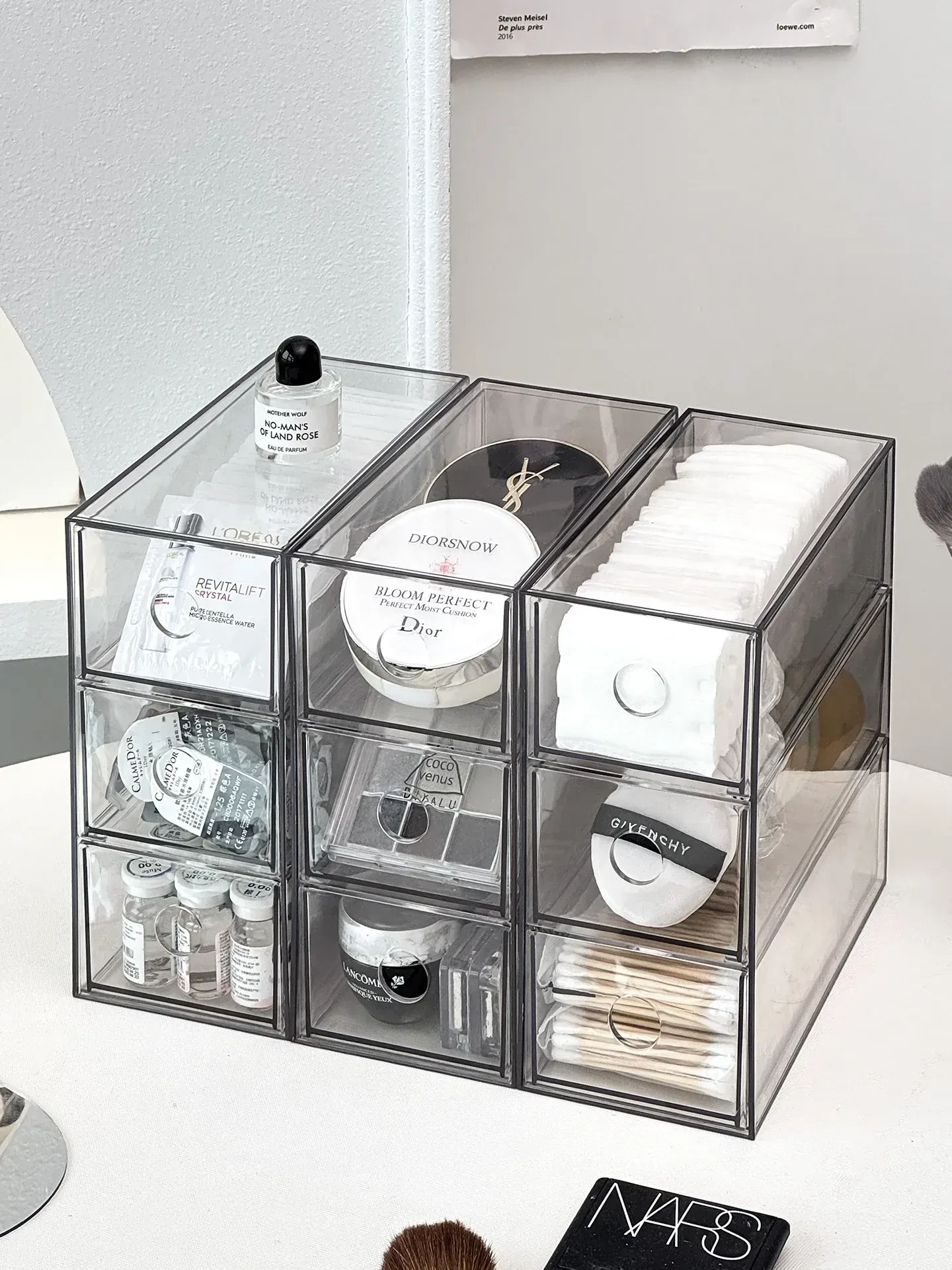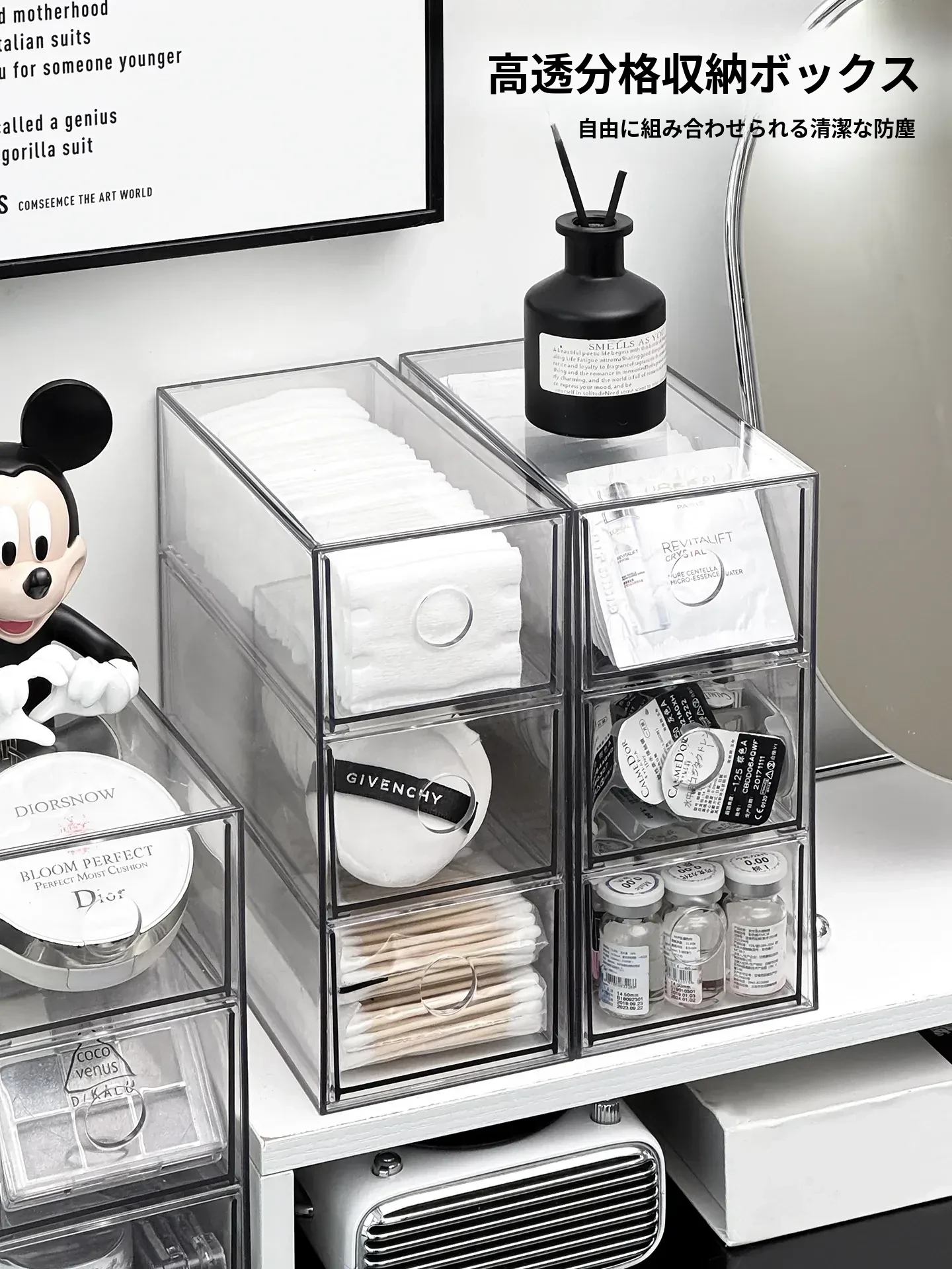 引き出し式メイクアップコットン&綿棒整理ツール!デスク上の化粧品サンプル収納ボックス、ファンデーションパフ&ビューティーエッグ用スタンド。あなたのメイクアップスペースをスッキリ整頓!