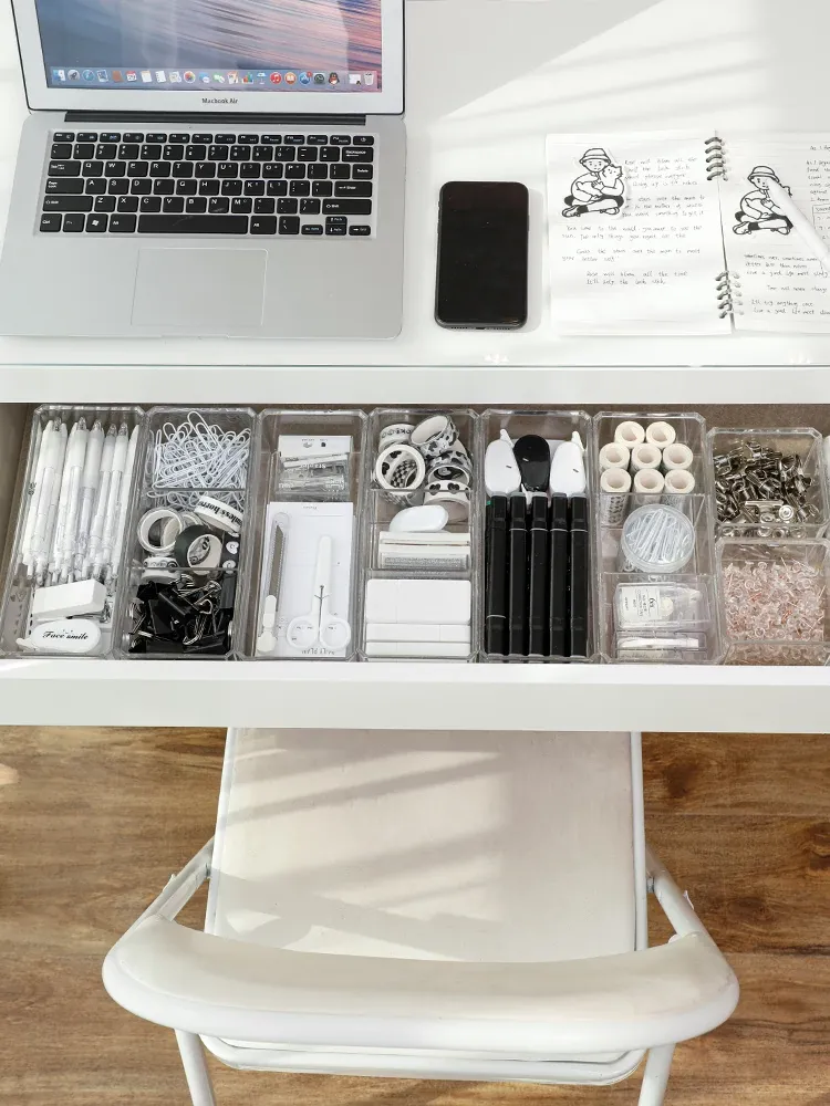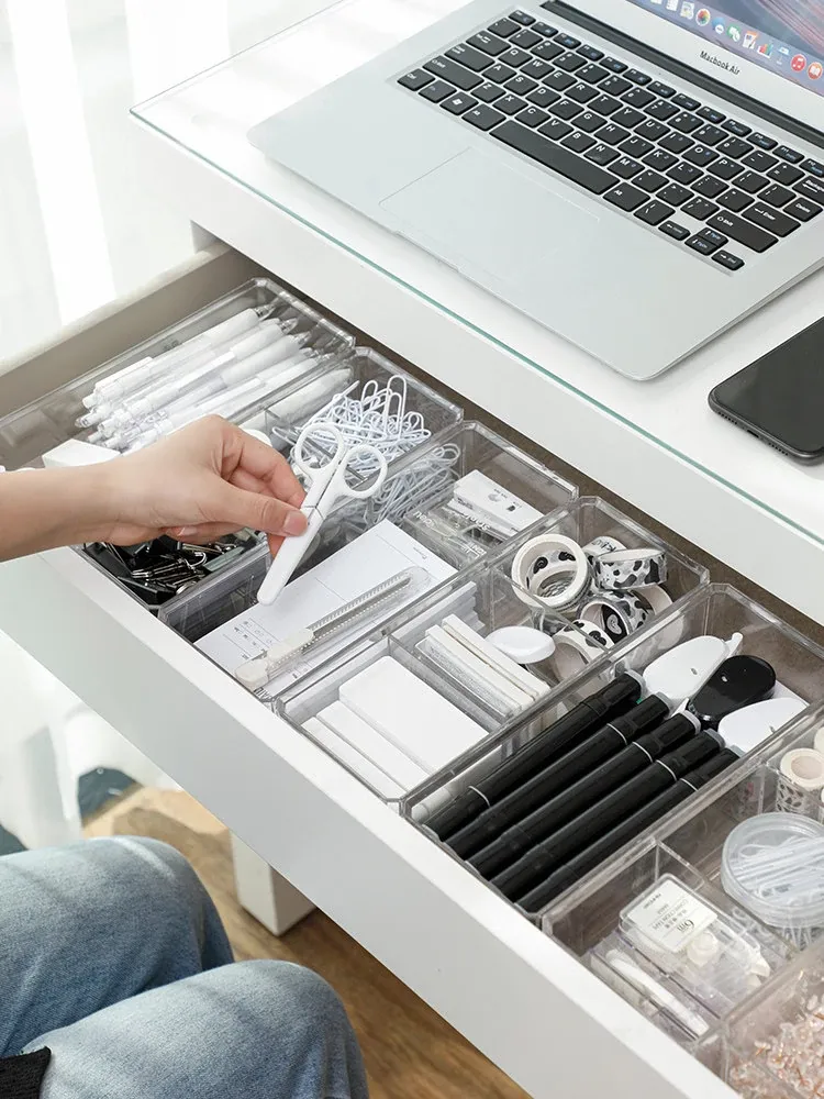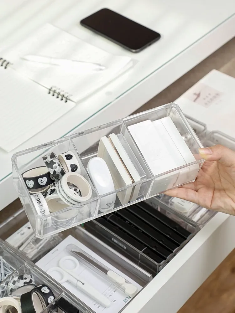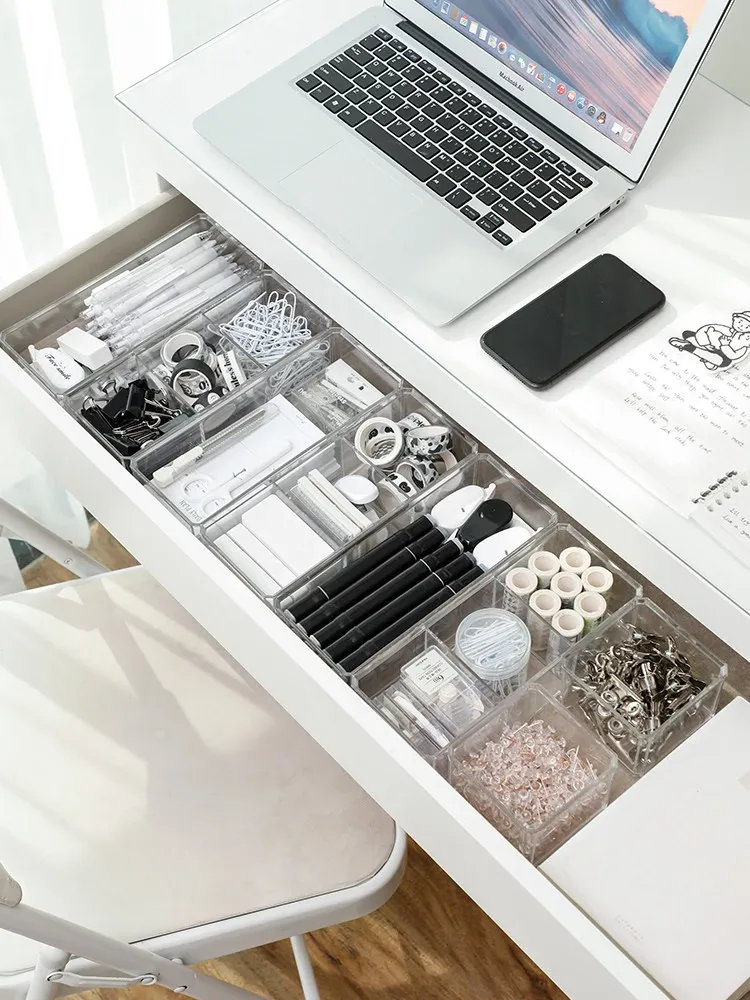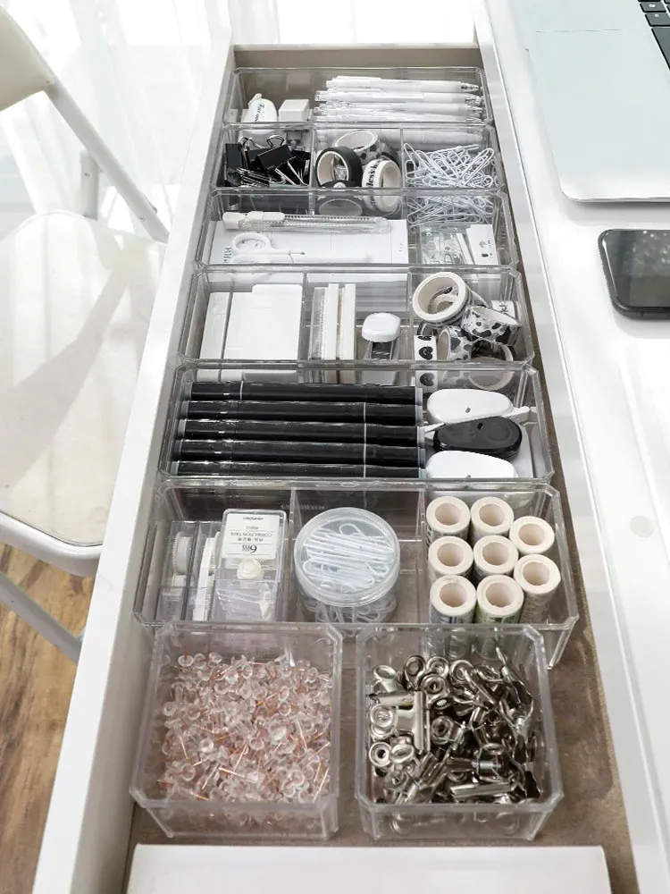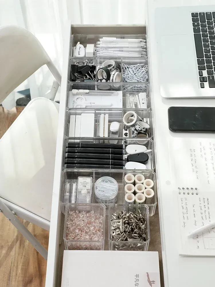引き出し文房具収納ボックス - 整理整頓に最適な仕切り付き!学生寮やオフィスデスクにぴったりなアイテムで、小物をすっきり分類。作業効率アップで快適な空間を実現!