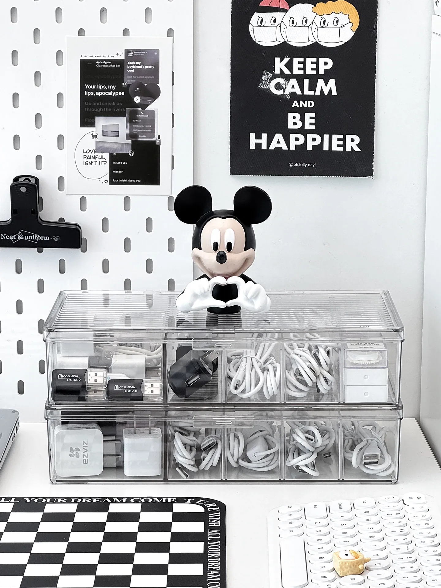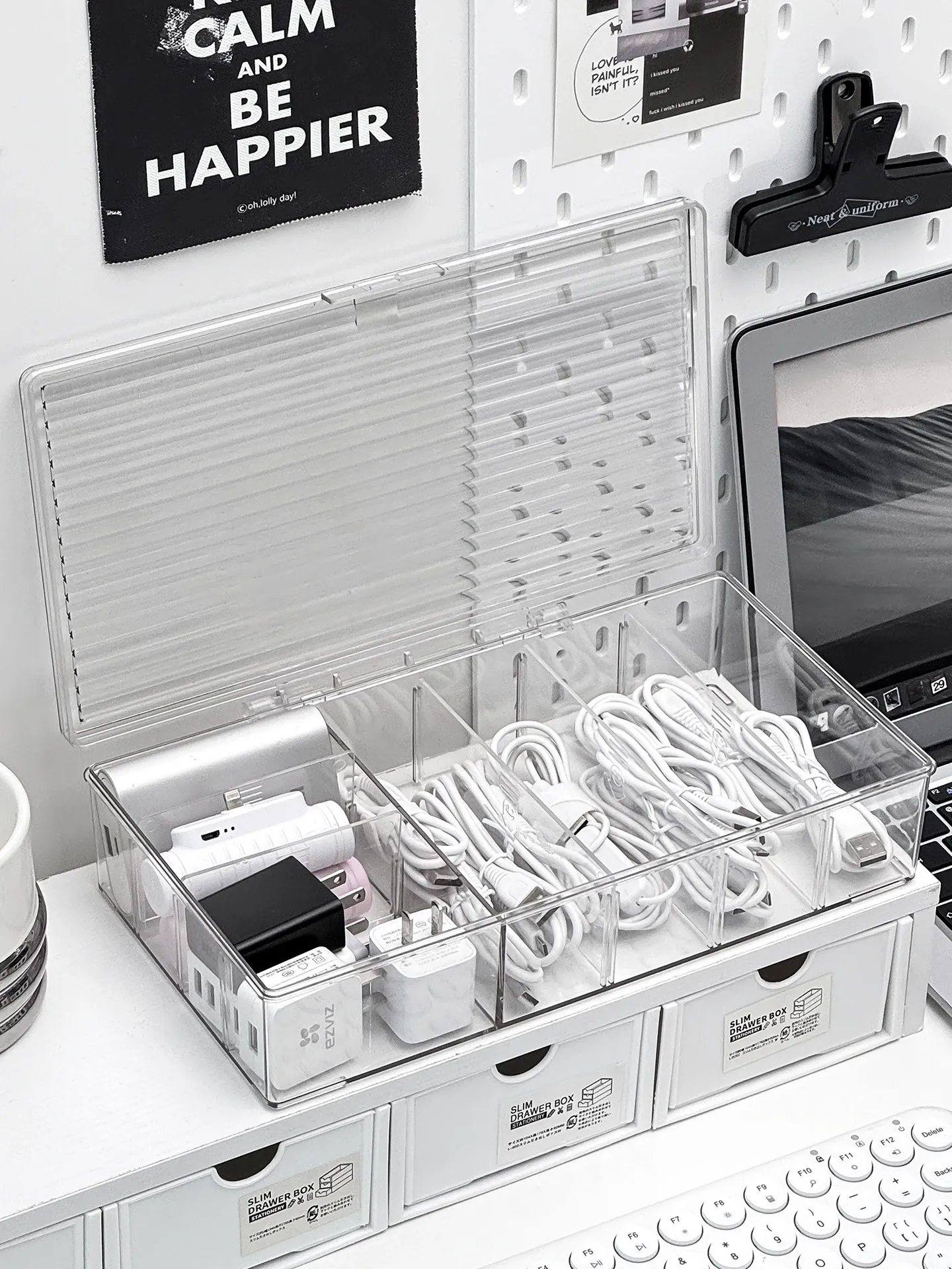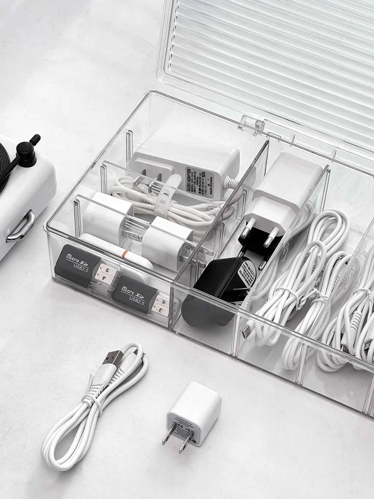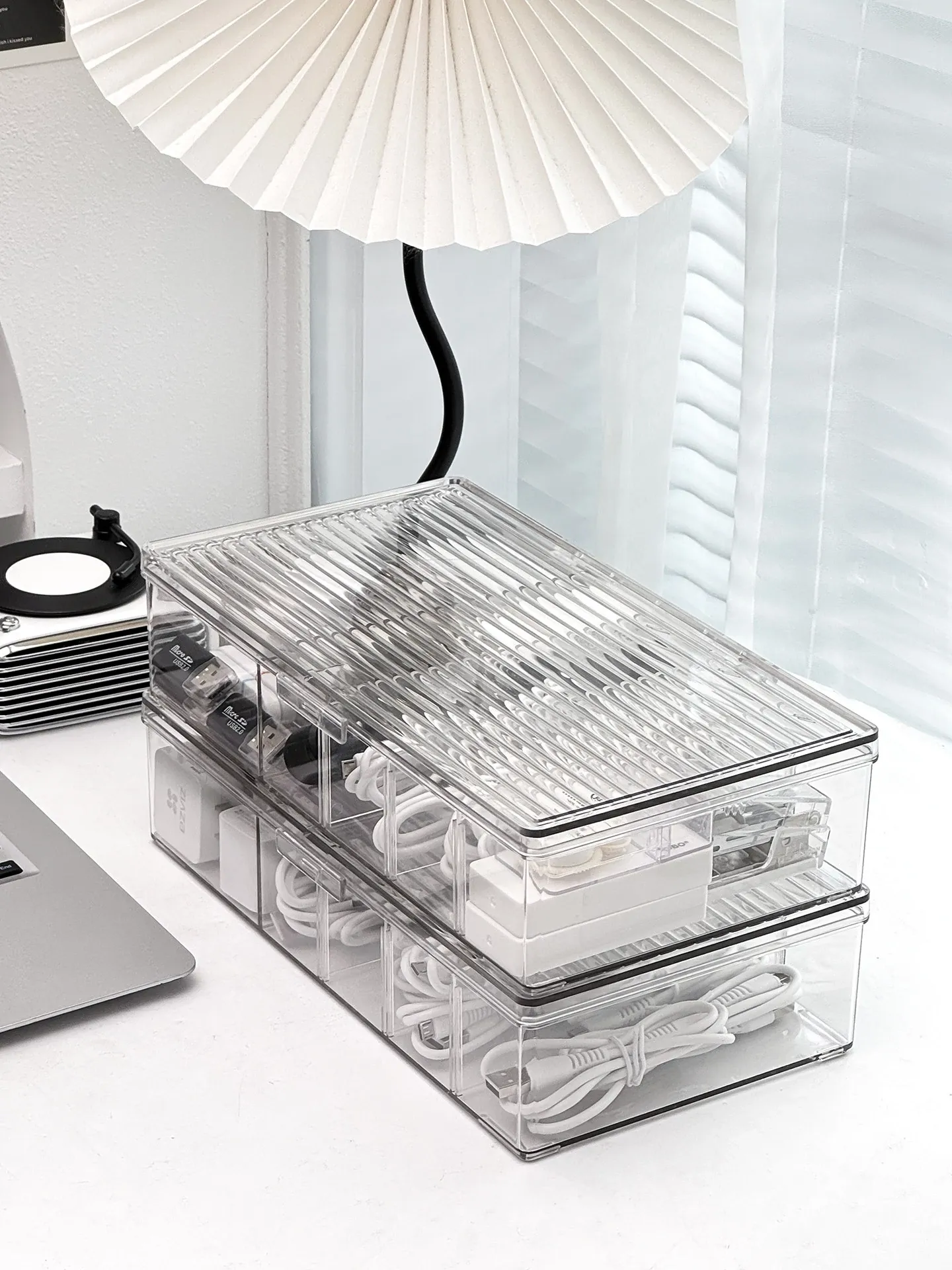 ホコリ防止データケーブル収納ボックス デスクトップ仕切り付き スマホ充電器・電源ケーブル整理グッズ 蓋付きでスッキリ整頓!あなたのデスクを美しく保つ必需品!