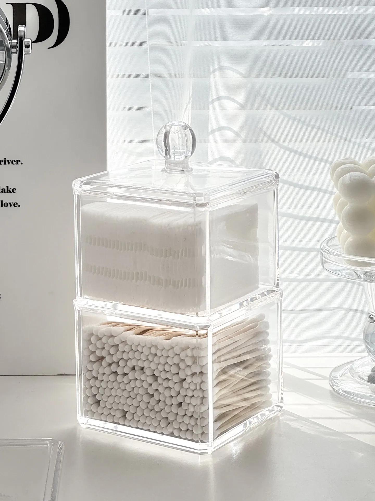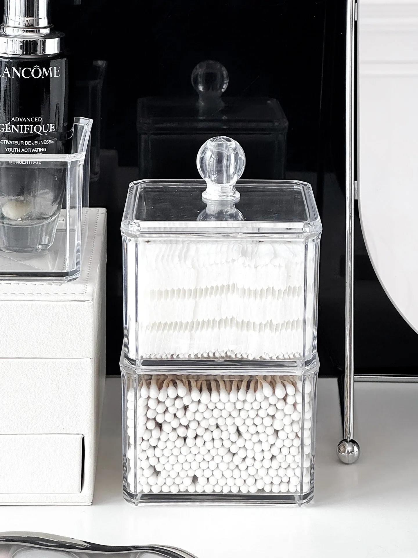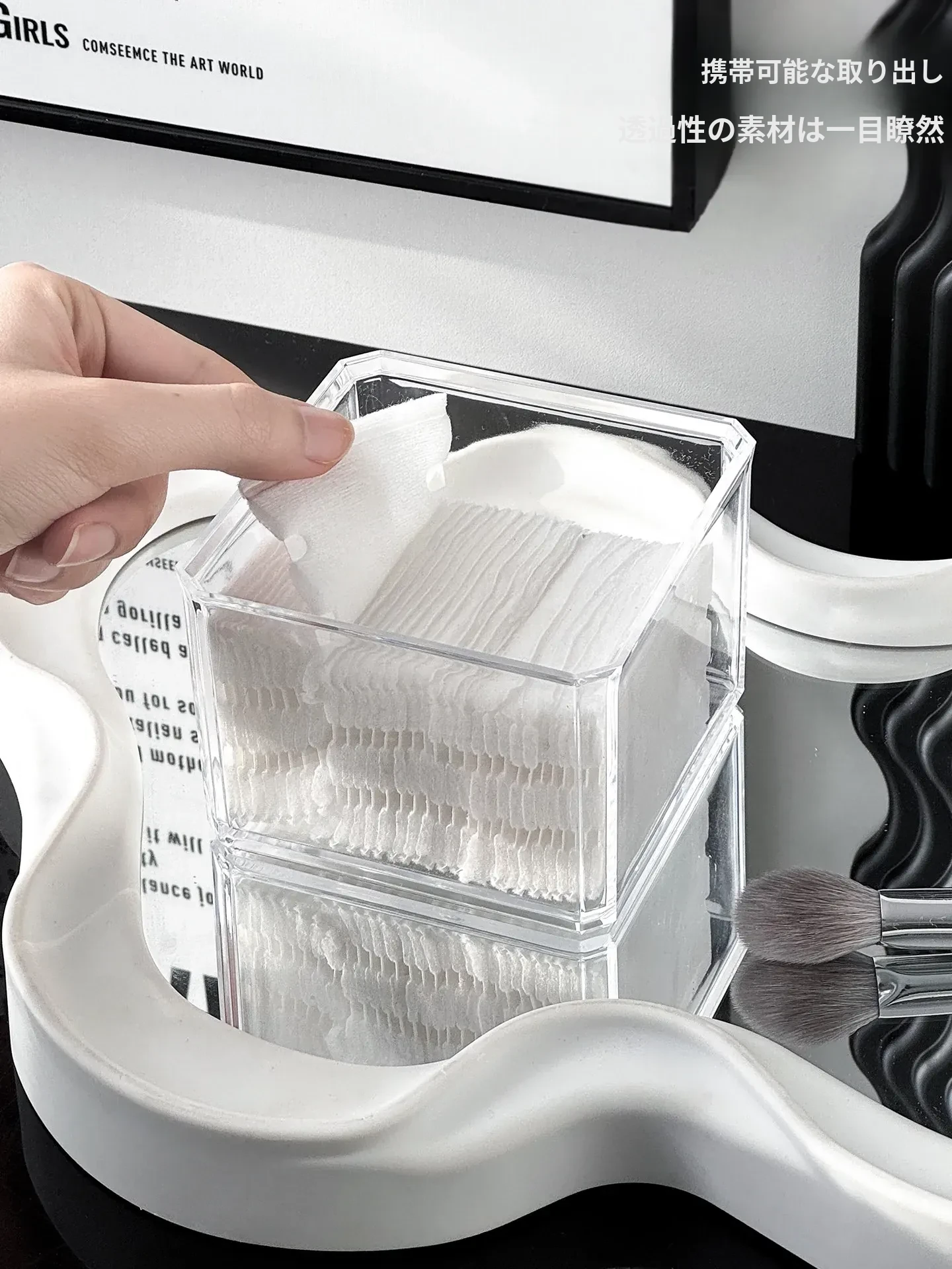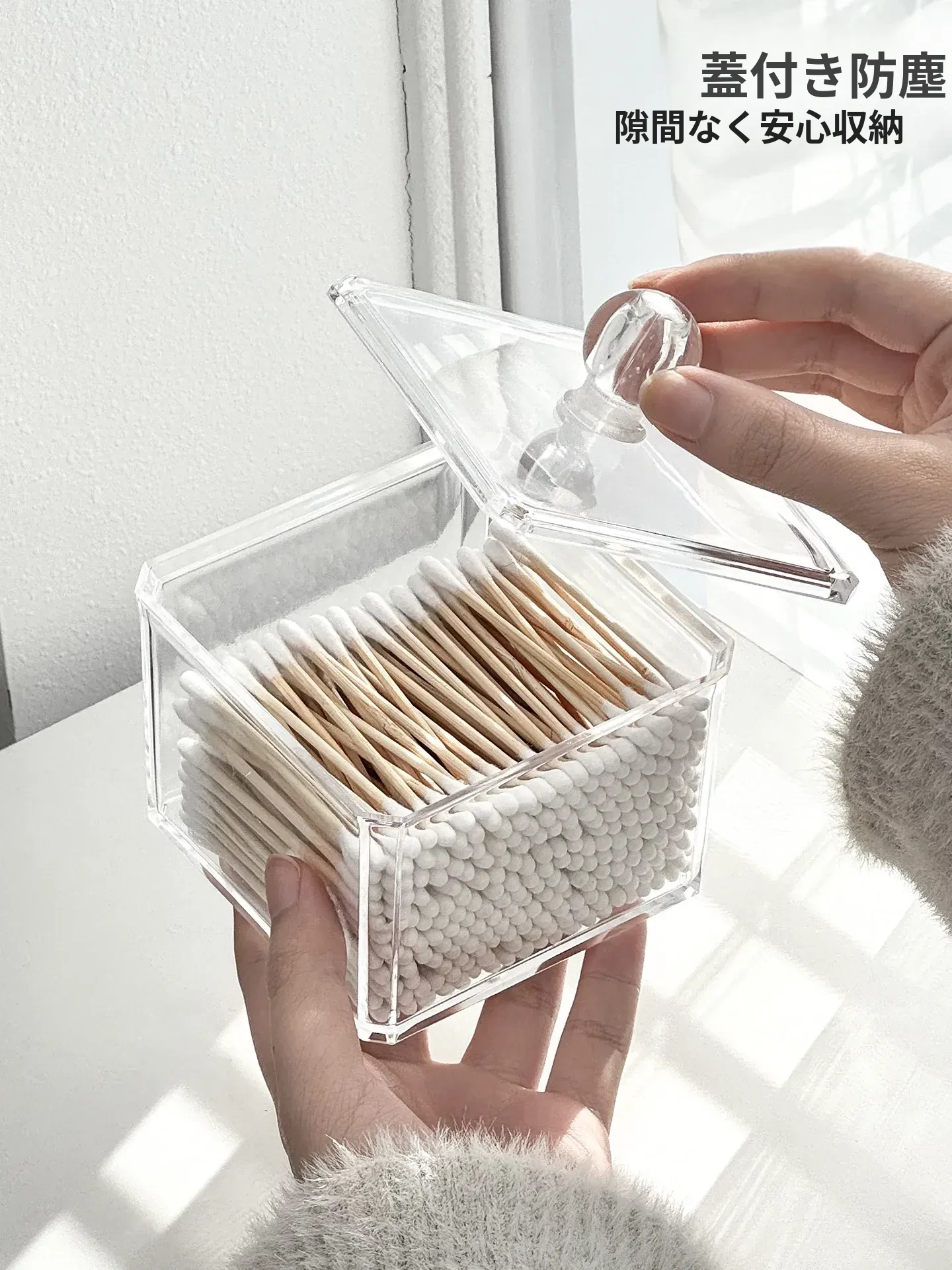 化粧品収納ボックス|防塵デザインでおしゃれなデスク周りを実現!大容量のコットン&綿棒収納ケース|サンプルやミニサイズの美容液もスッキリ整理!