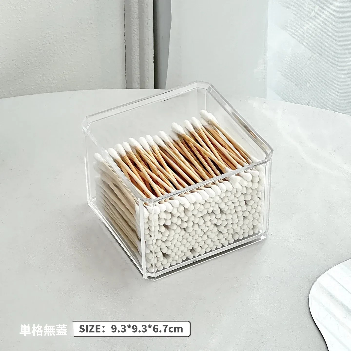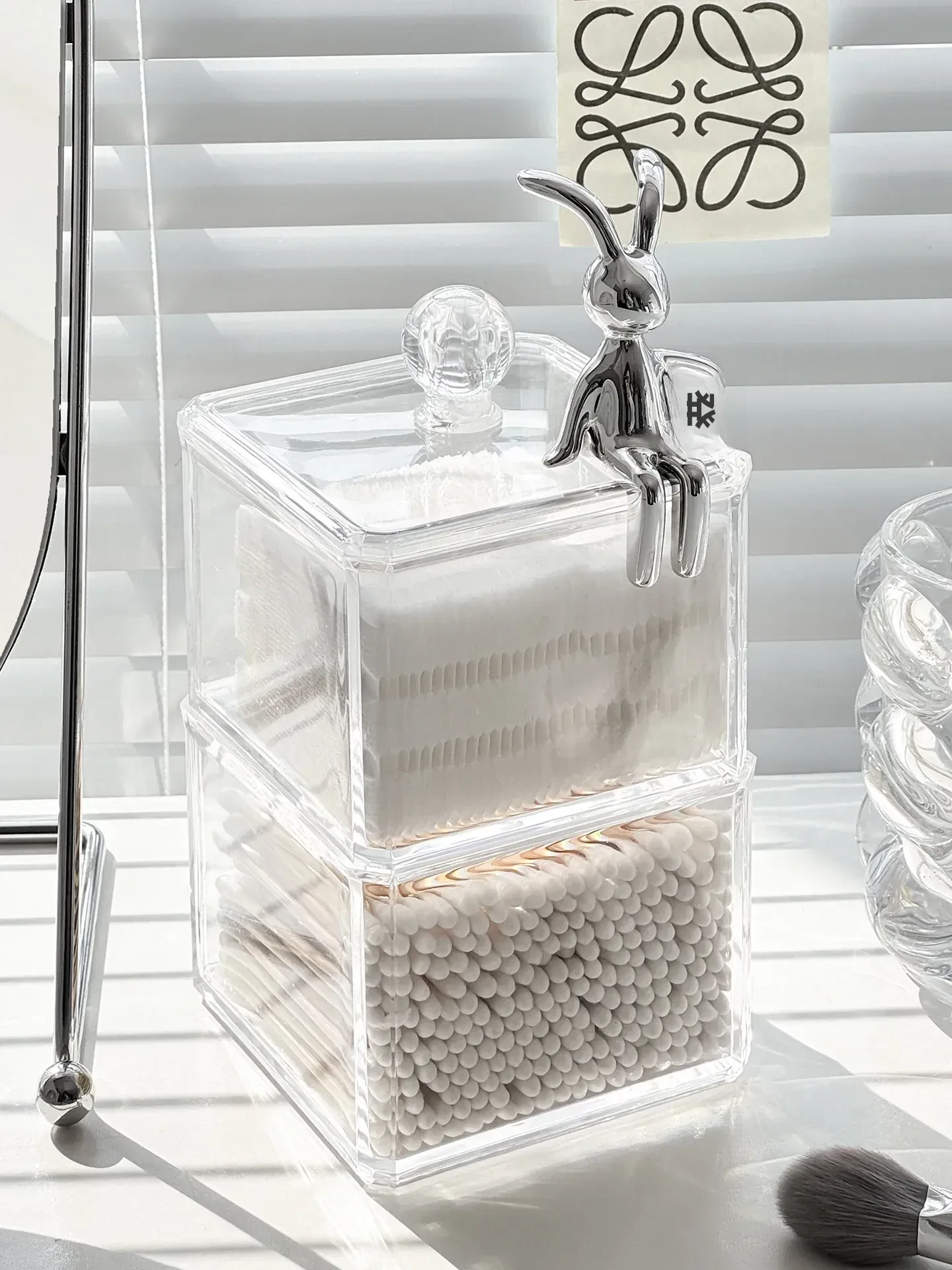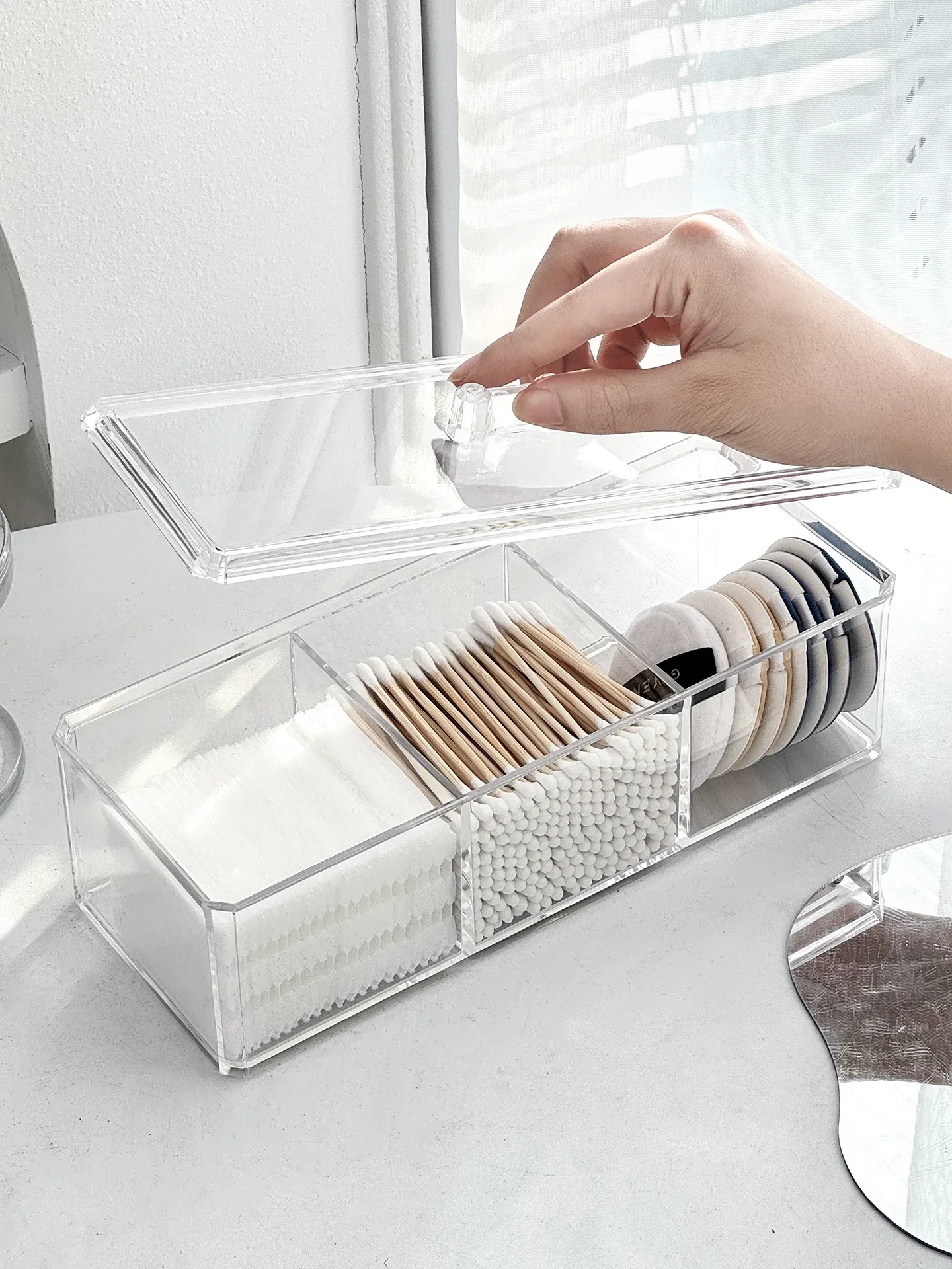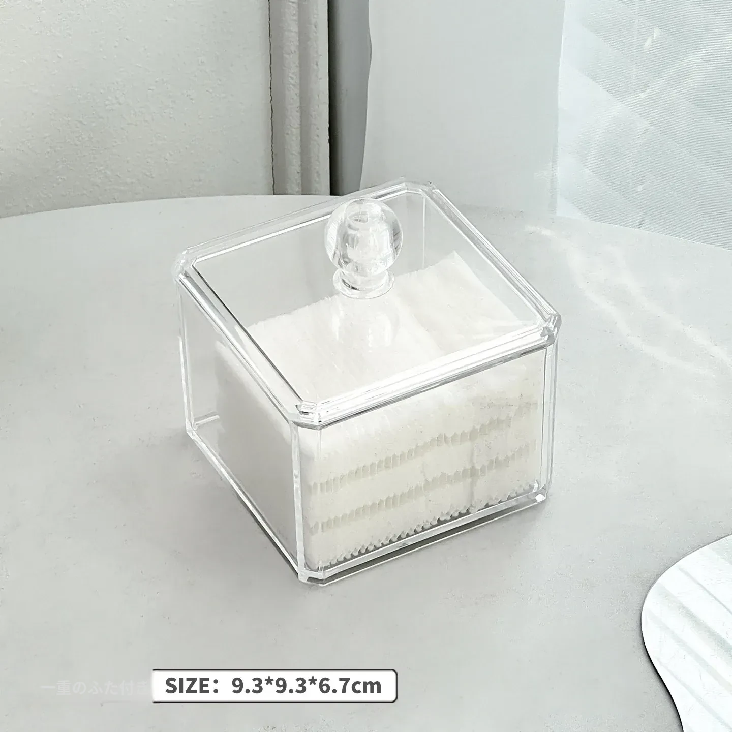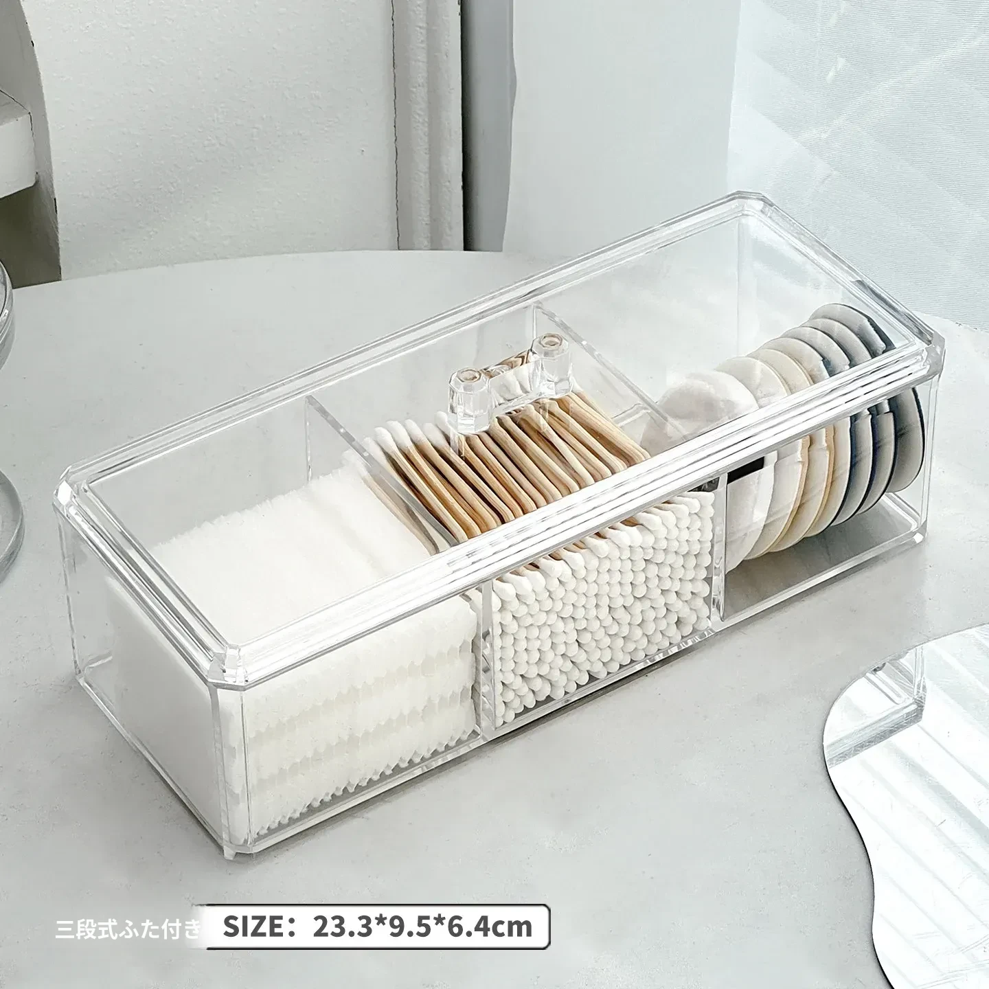 化粧品収納ボックス|防塵デザインでおしゃれなデスク周りを実現!大容量のコットン&綿棒収納ケース|サンプルやミニサイズの美容液もスッキリ整理!