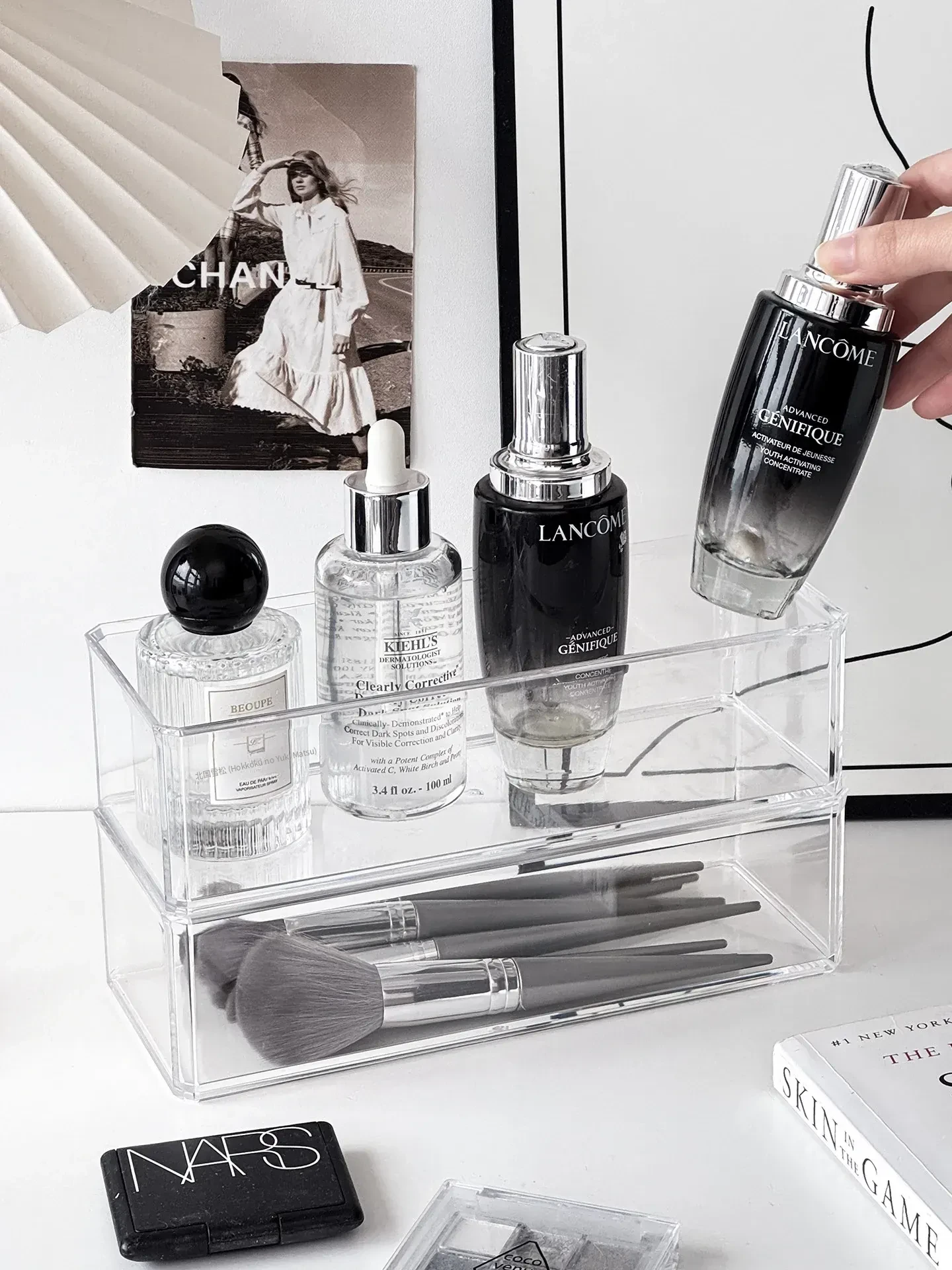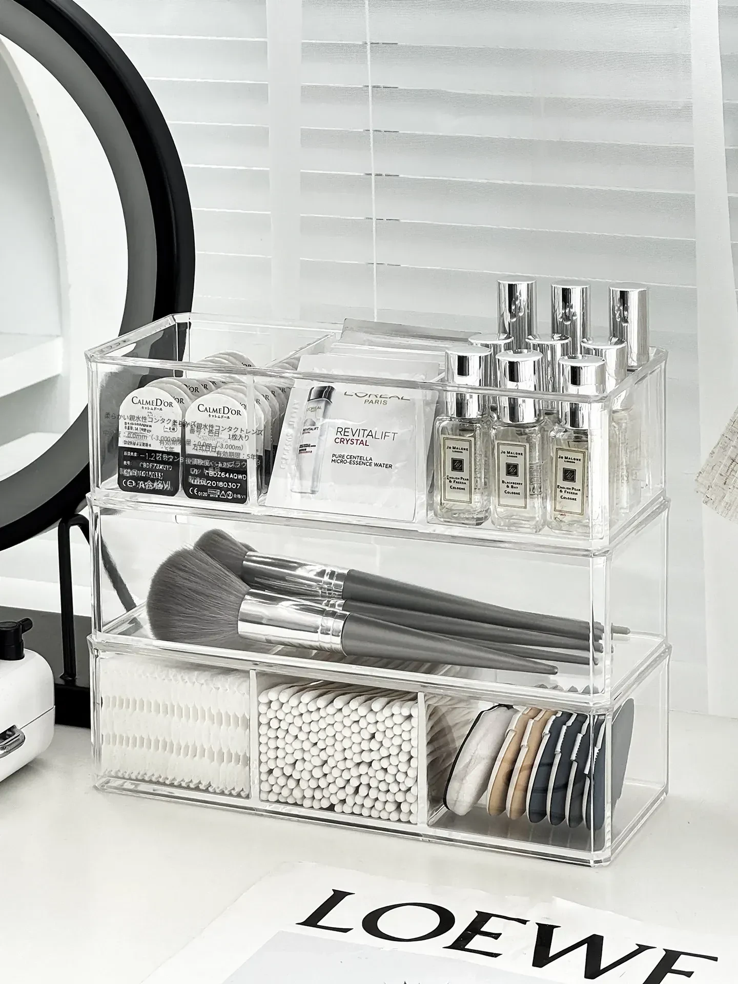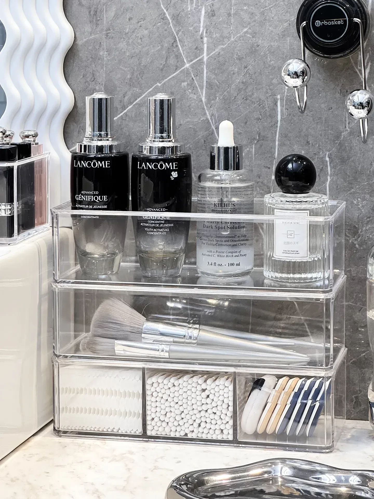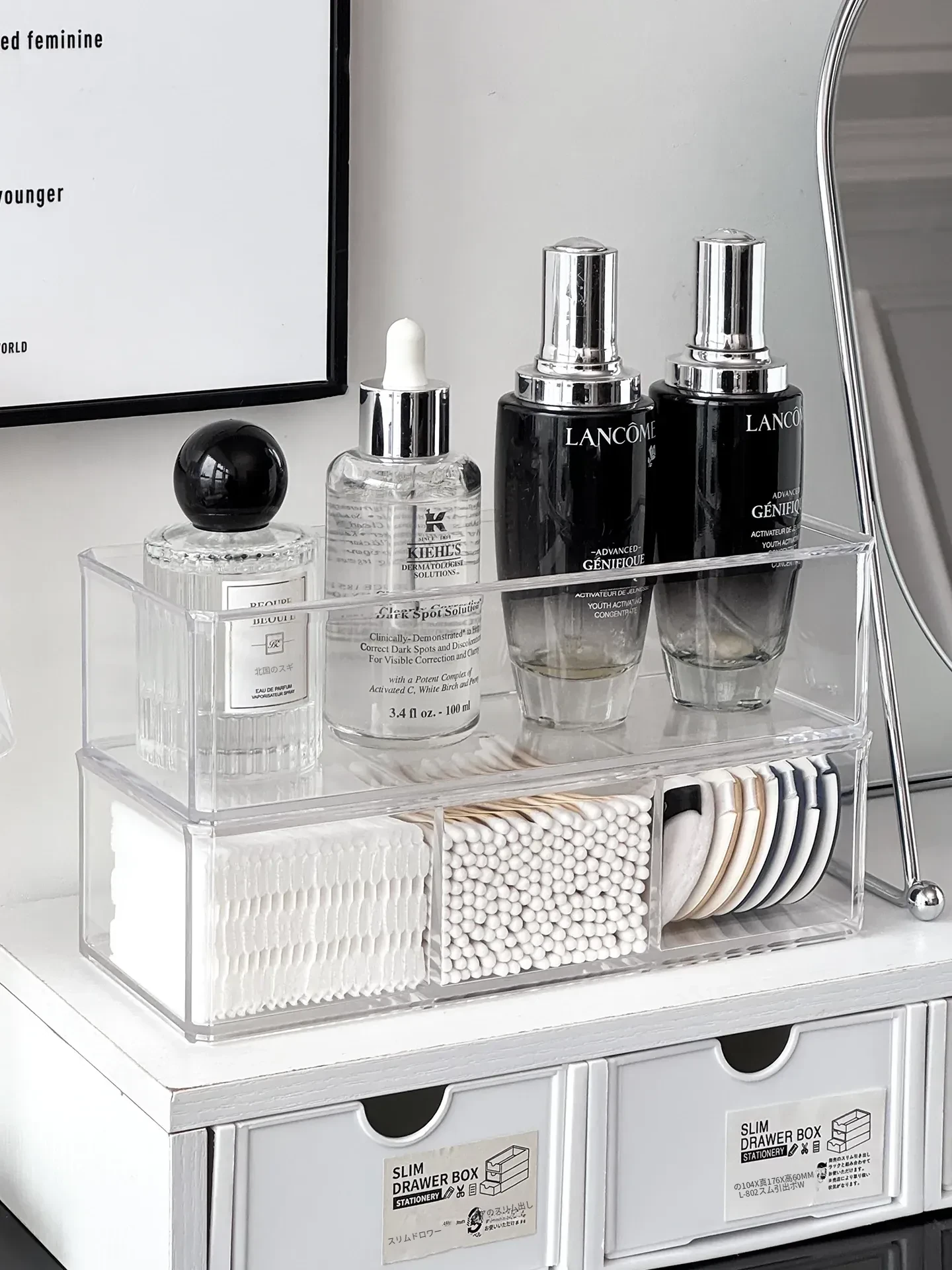 化粧品収納ボックス|防塵デザインでおしゃれなデスク周りを実現!大容量のコットン&綿棒収納ケース|サンプルやミニサイズの美容液もスッキリ整理!