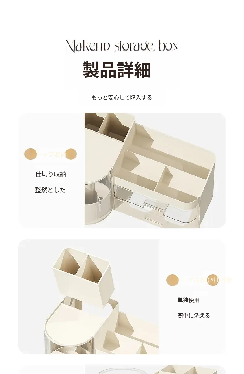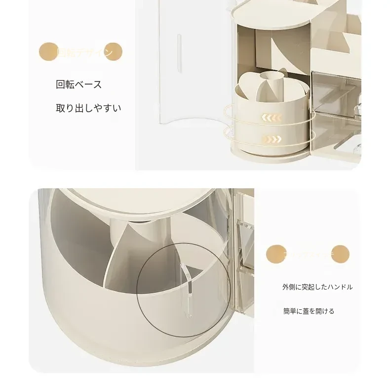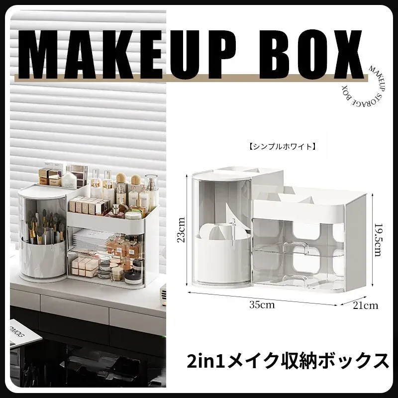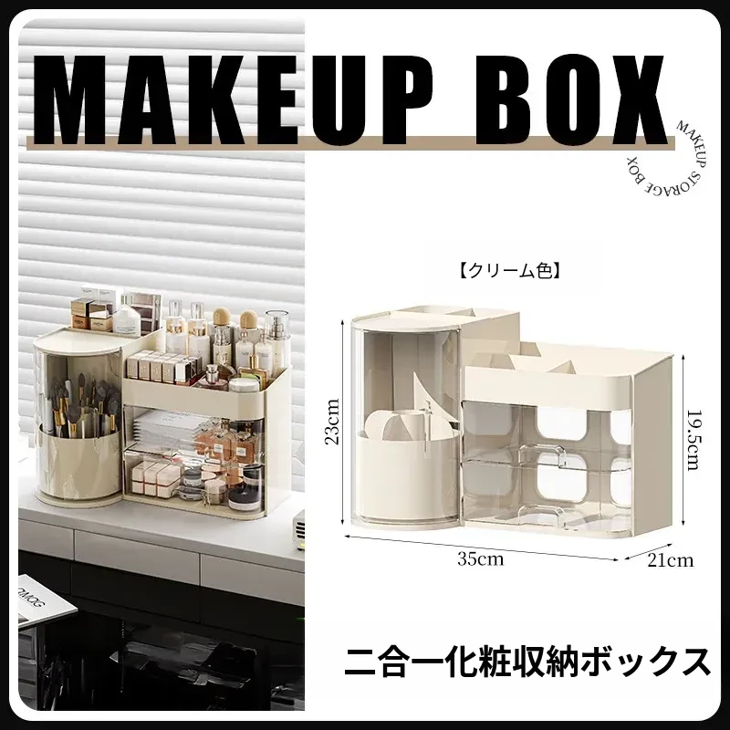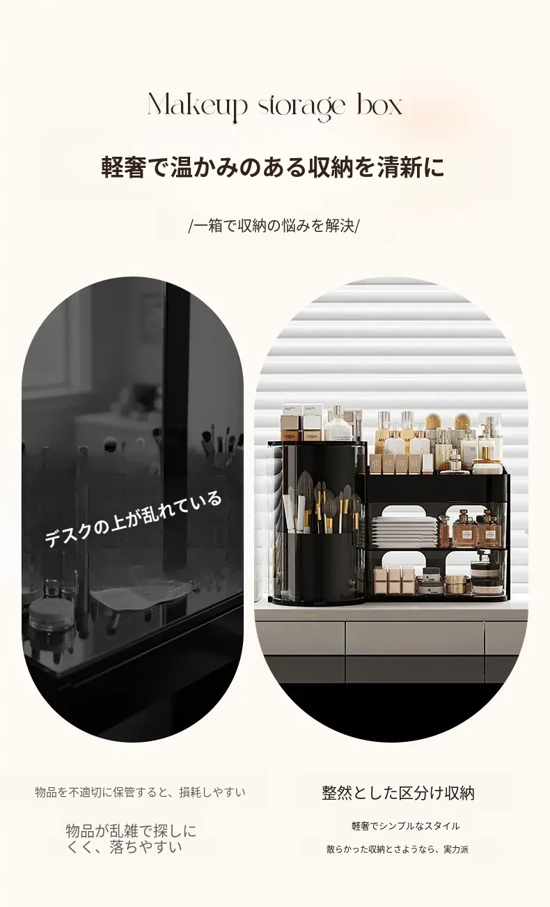高級感あふれるメイク用品収納ボックス!360度回転するメイクブラシホルダーと多機能な香水・リップ整理器。美しいデスク周りを実現し、すべてをスッキリ整理します!