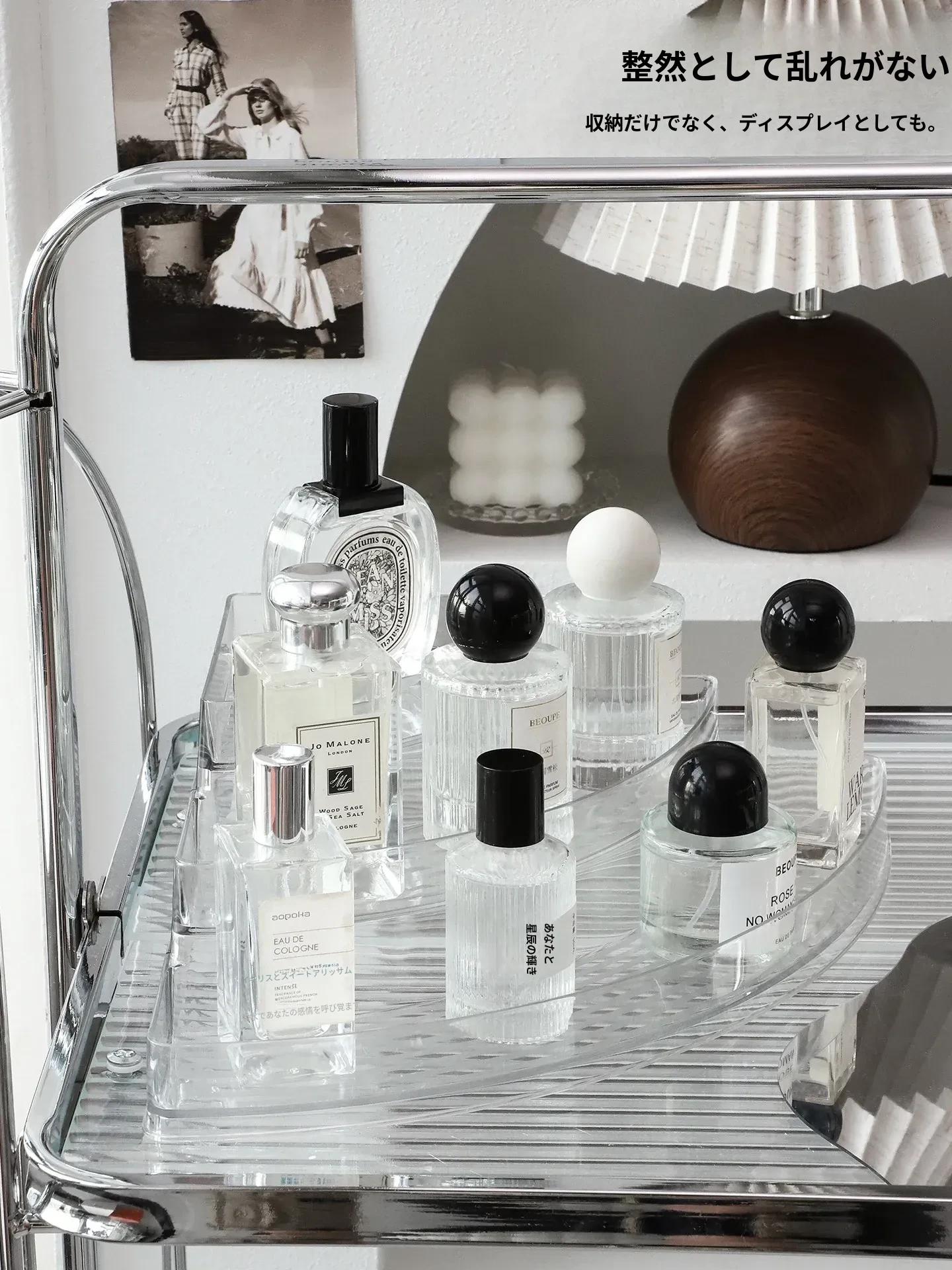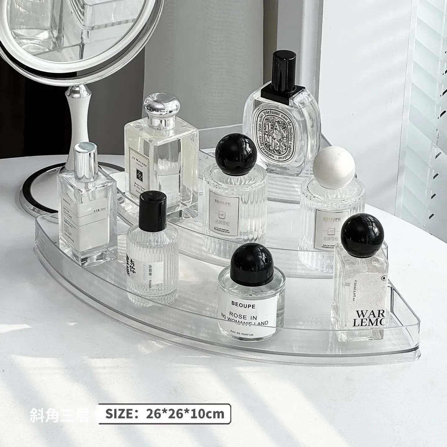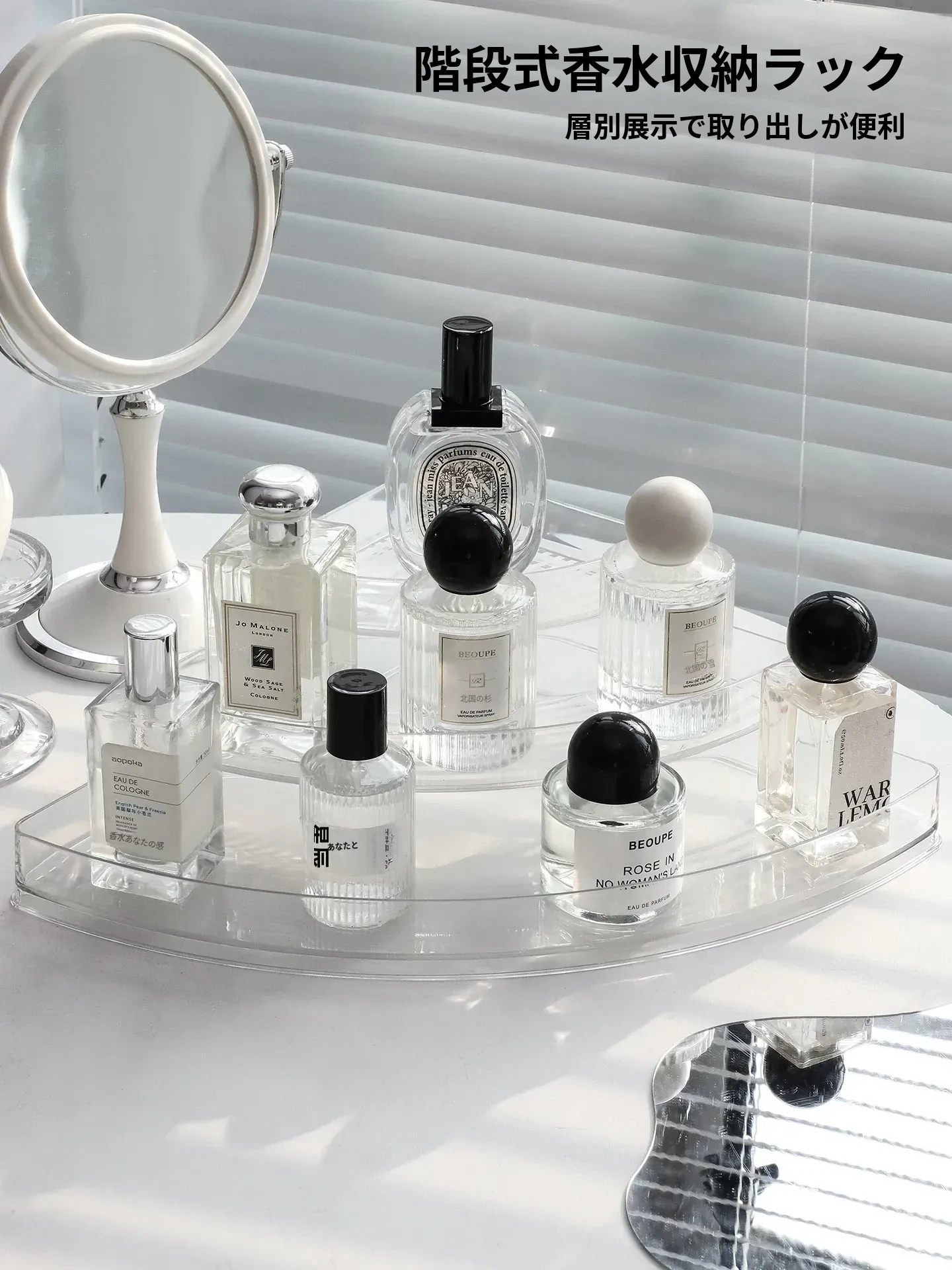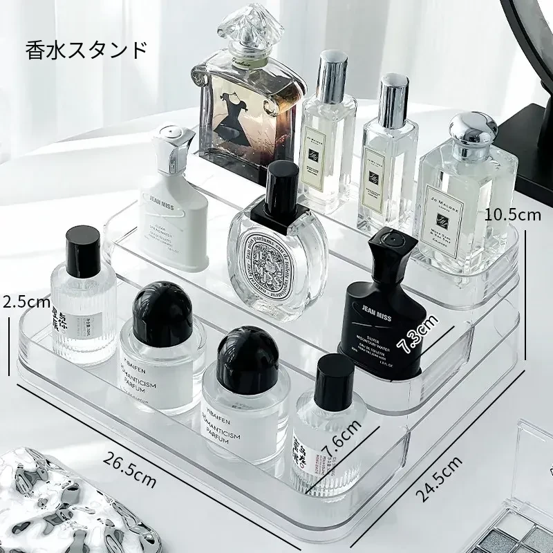 香水収納ラック - おしゃれな角型階段式デザインの化粧品整理ボックス!高級感あふれる玄関ディスプレイに最適な多層展示ラックで、あなたの美しさを引き立てます。