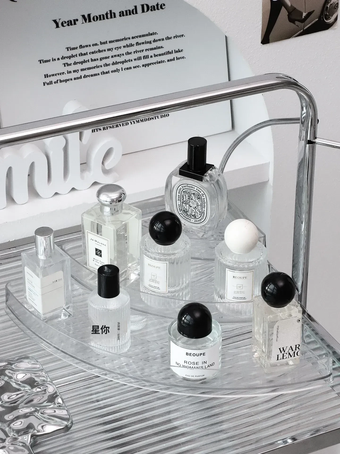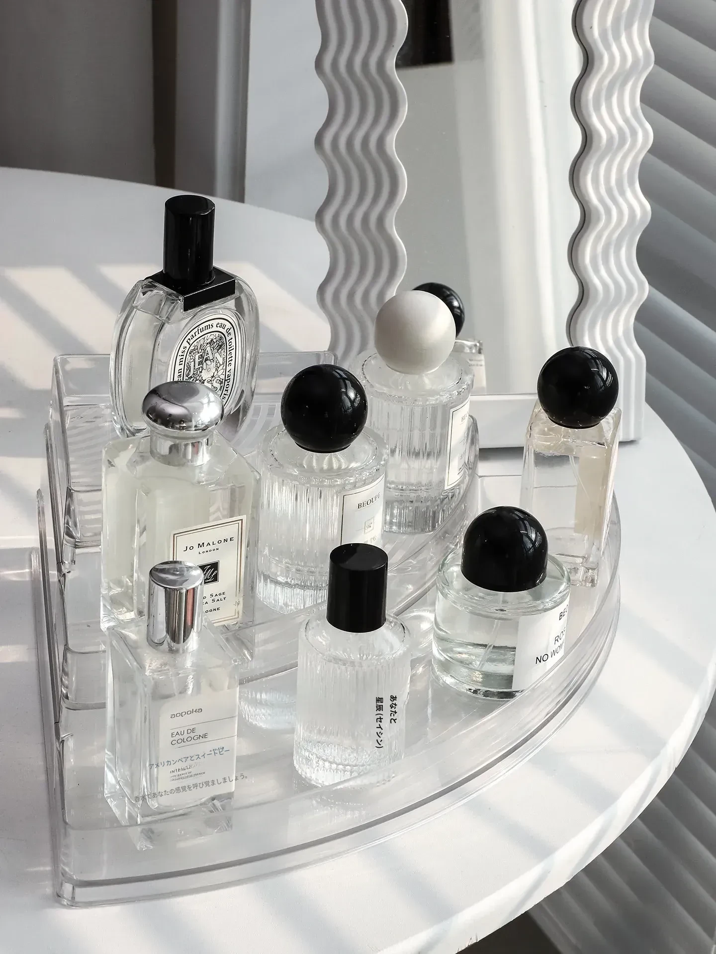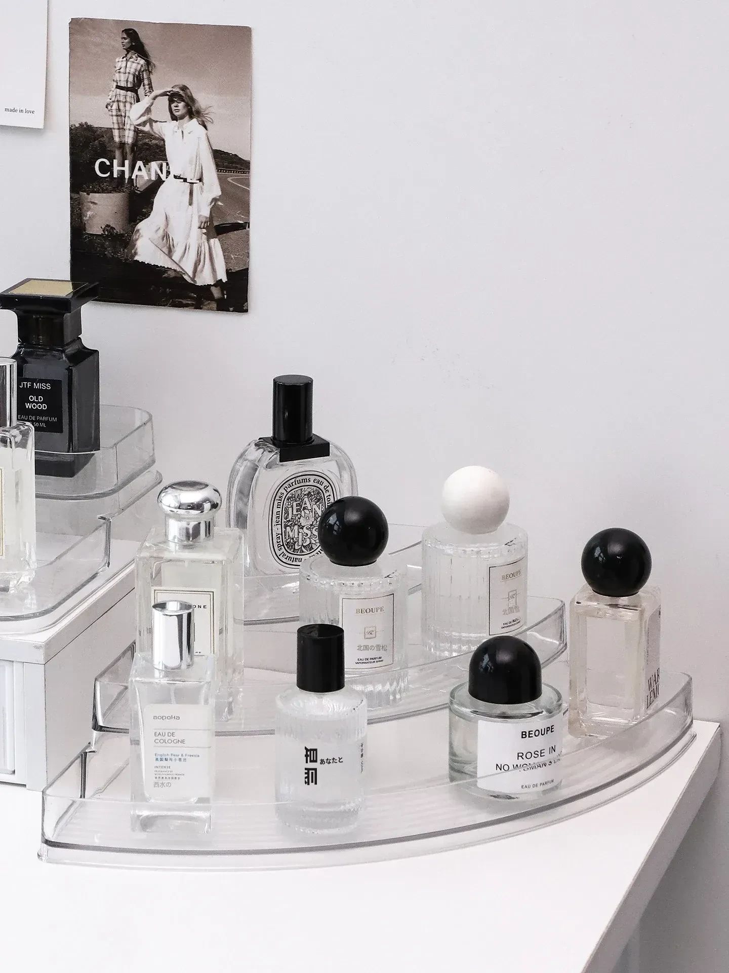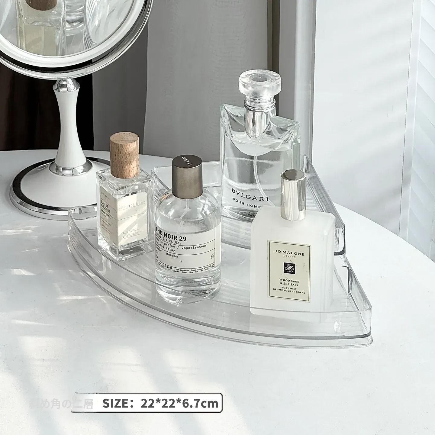 香水収納ラック - おしゃれな角型階段式デザインの化粧品整理ボックス!高級感あふれる玄関ディスプレイに最適な多層展示ラックで、あなたの美しさを引き立てます。