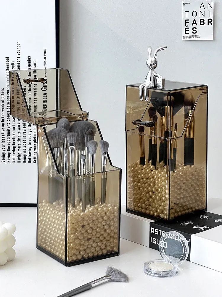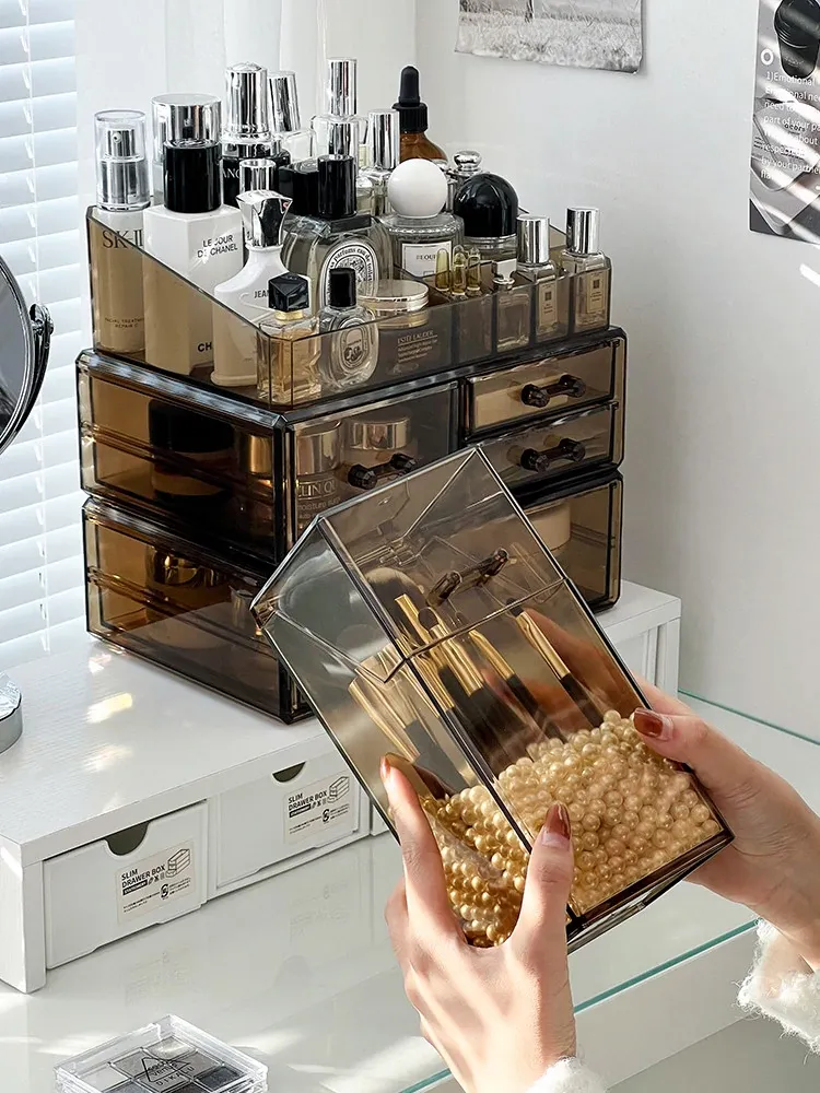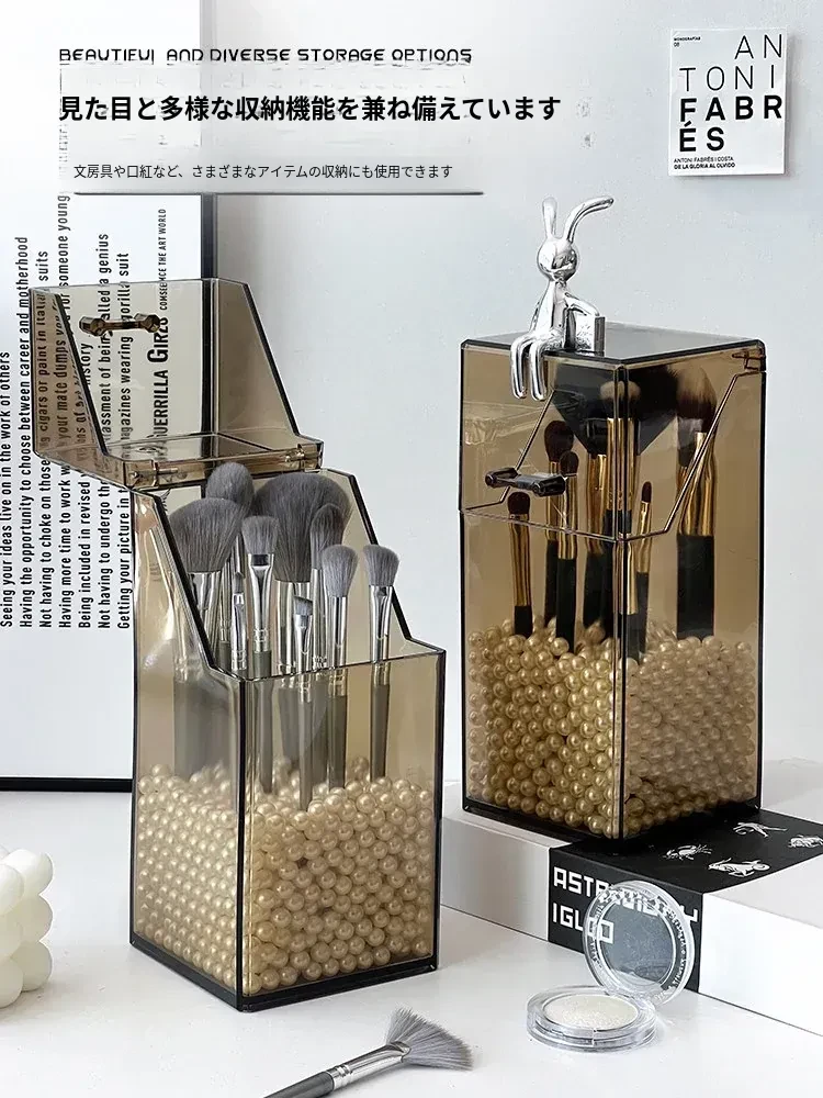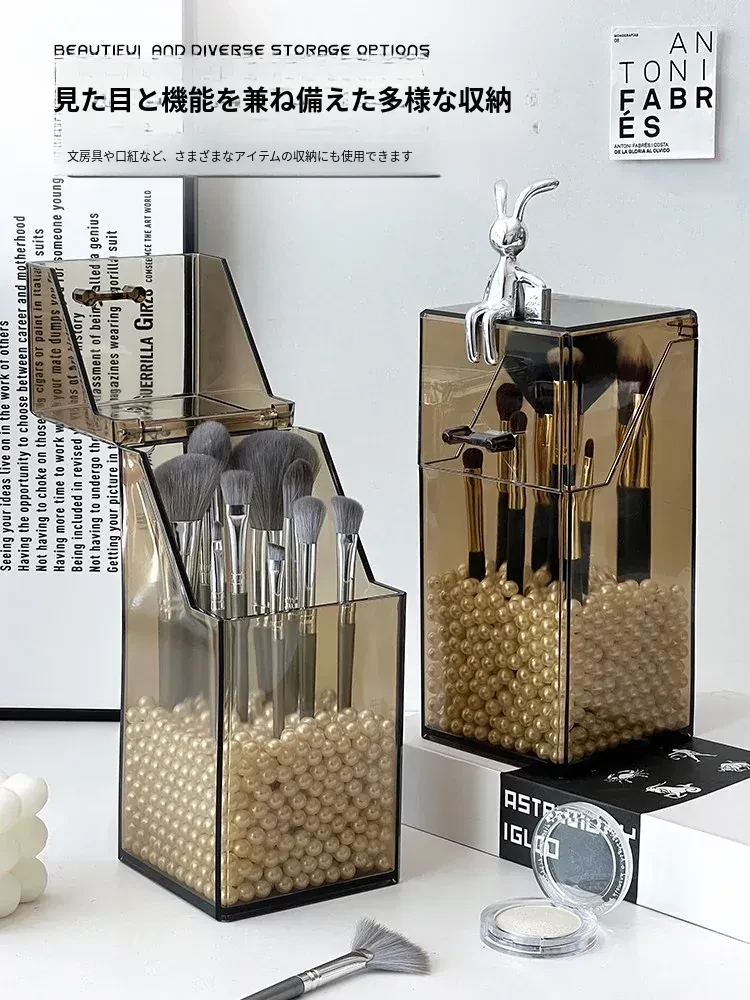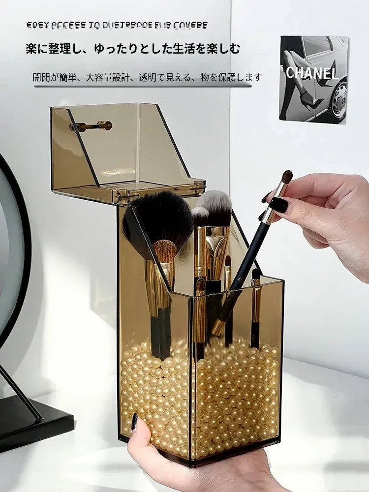 高級感漂うデスク用コスメ収納ボックス|メイク台にぴったりの蓋付き防塵設計|口紅・リップグロス・眉ペンをすっきり整理!あなたの美しさを引き立てるアイテムです。