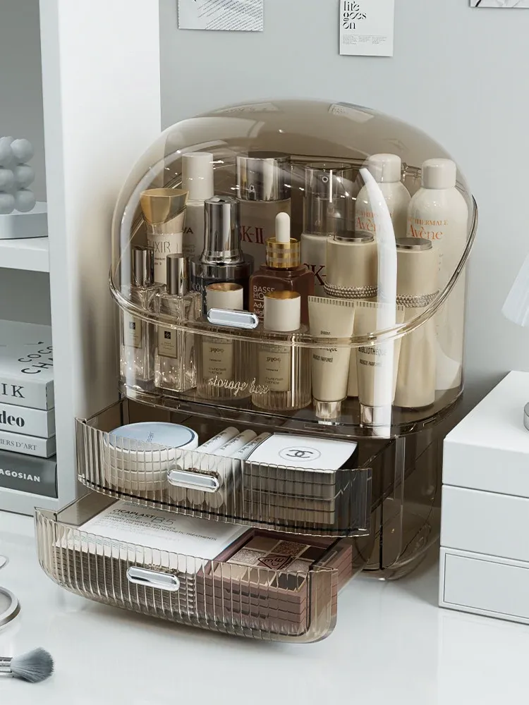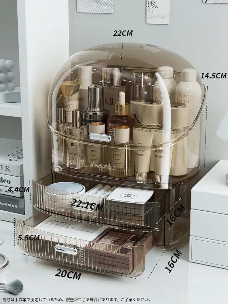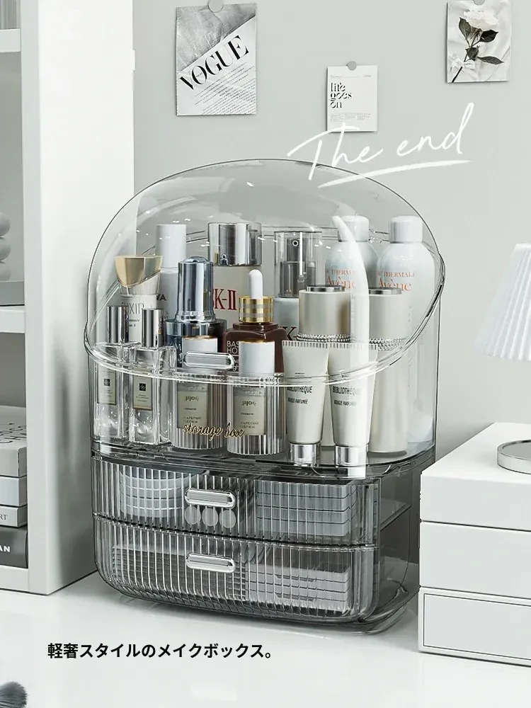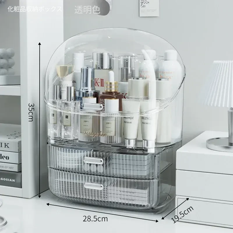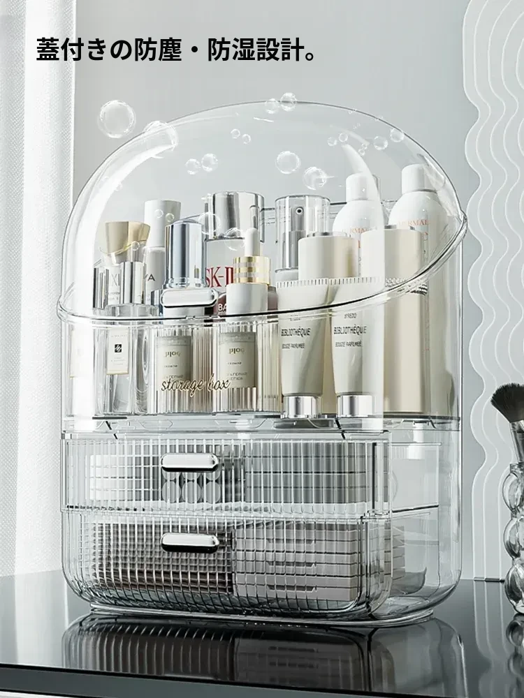 高級感漂うデスクトップメイクボックス!化粧台やスキンケア用品に最適な防塵アクリル収納ケース。口紅やフェイスマスクもすっきり整理できる便利な置物ラックです。あなたの美しさを引き立てるアイテム!