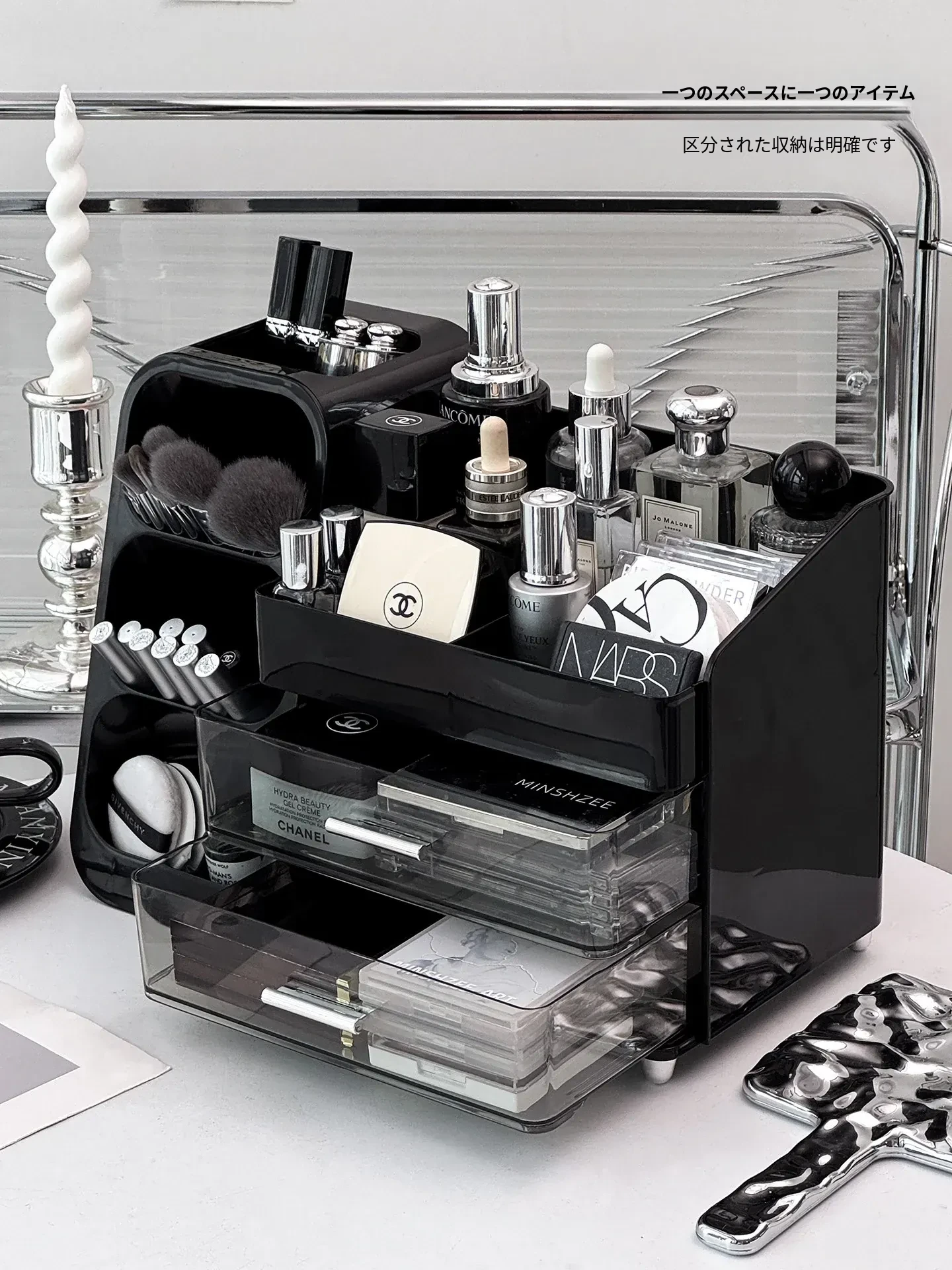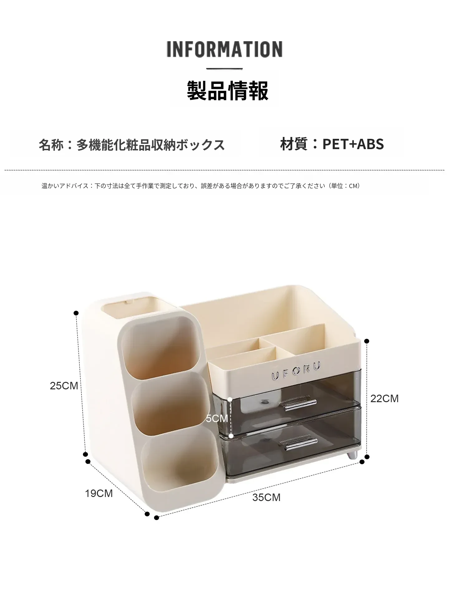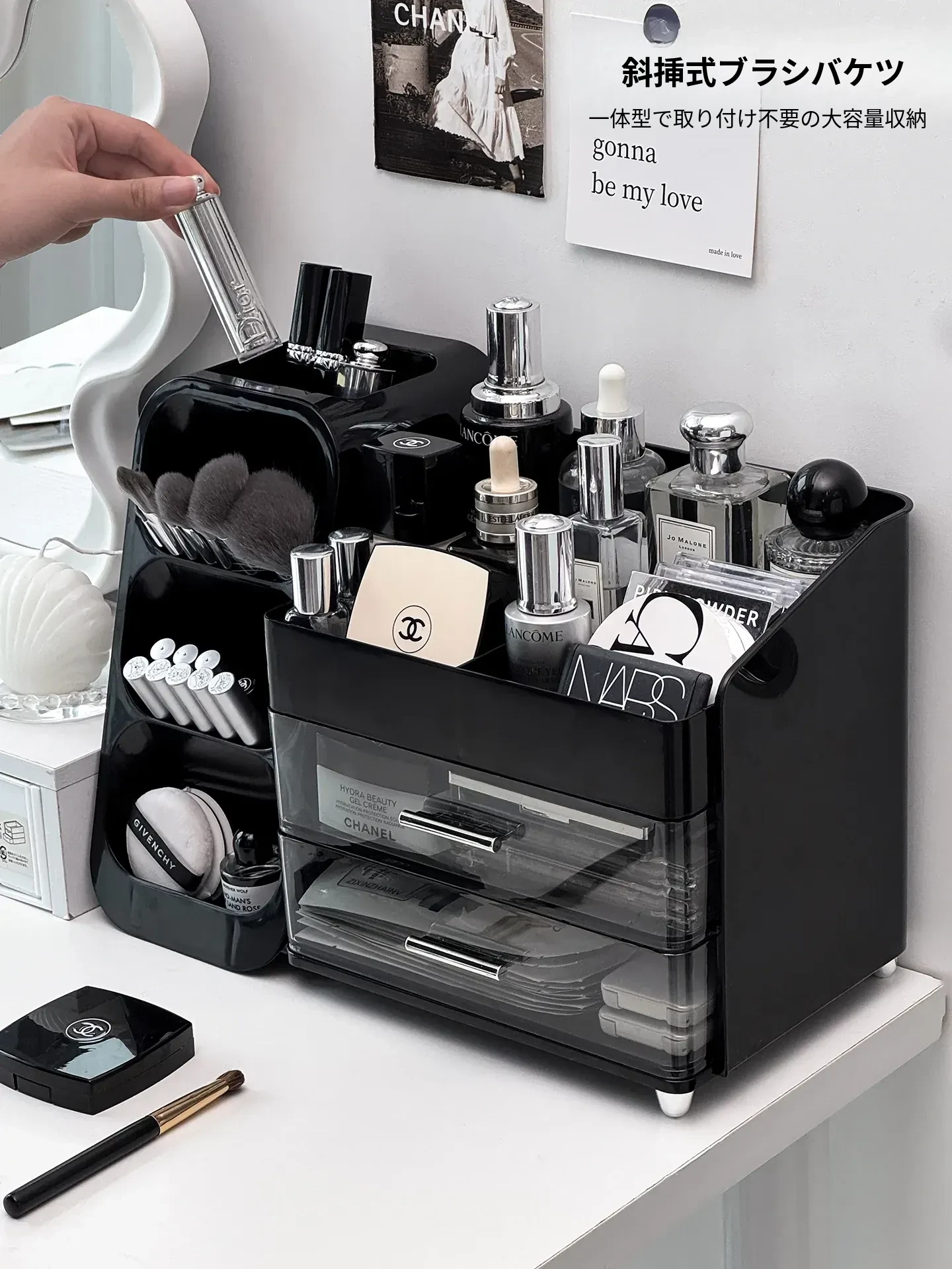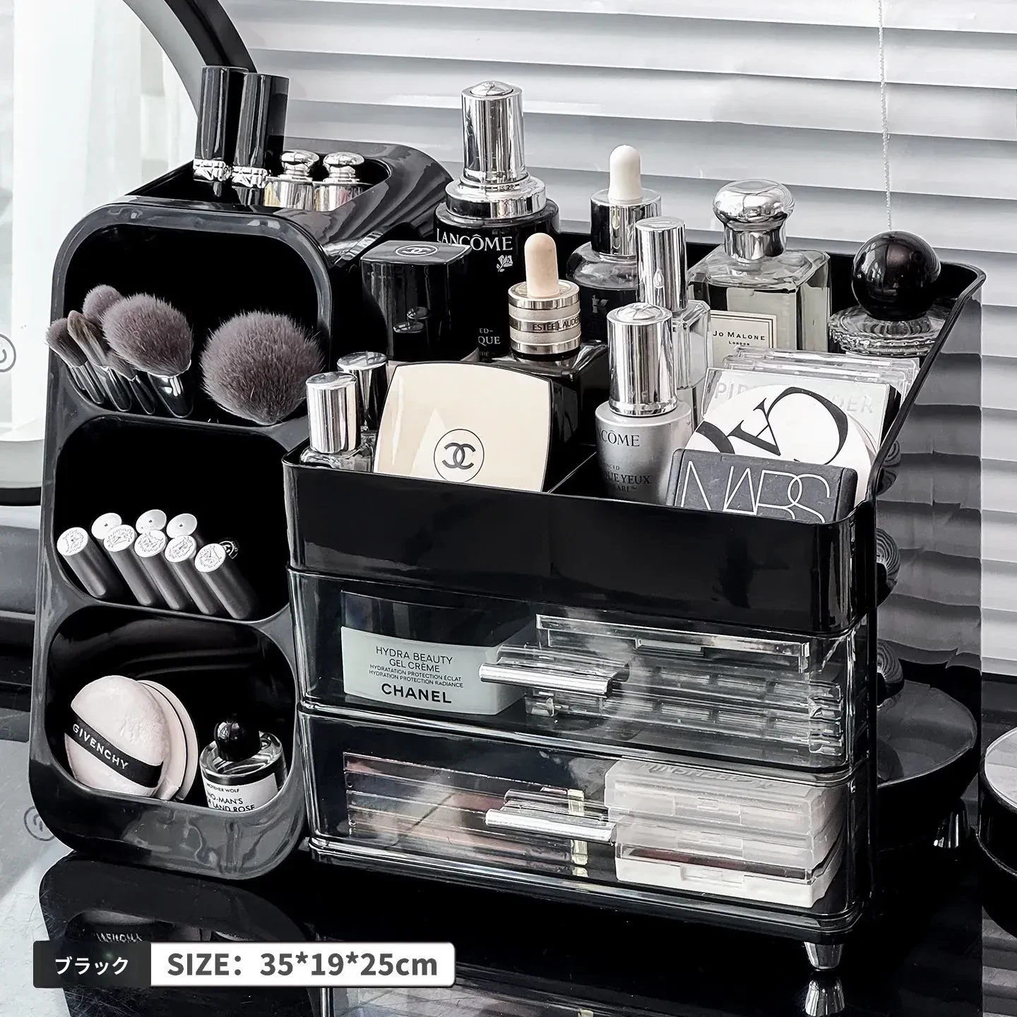 デスク上の高級感あふれる化粧品収納ボックス!大容量のコスメティックオーガナイザーで、メイク台をすっきり整頓。引き出し式で口紅やスキンケア製品を整理整頓。あなたのビューティーライフをもっと快適に!