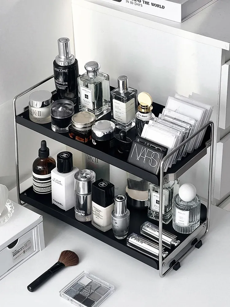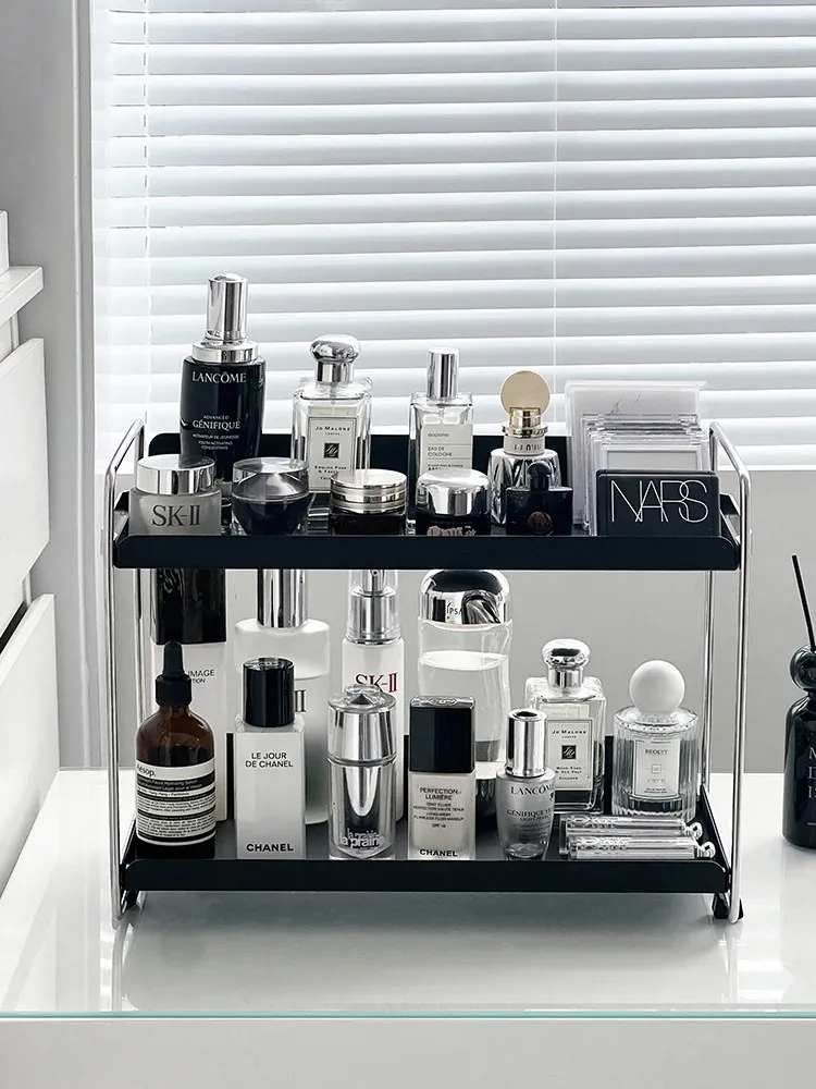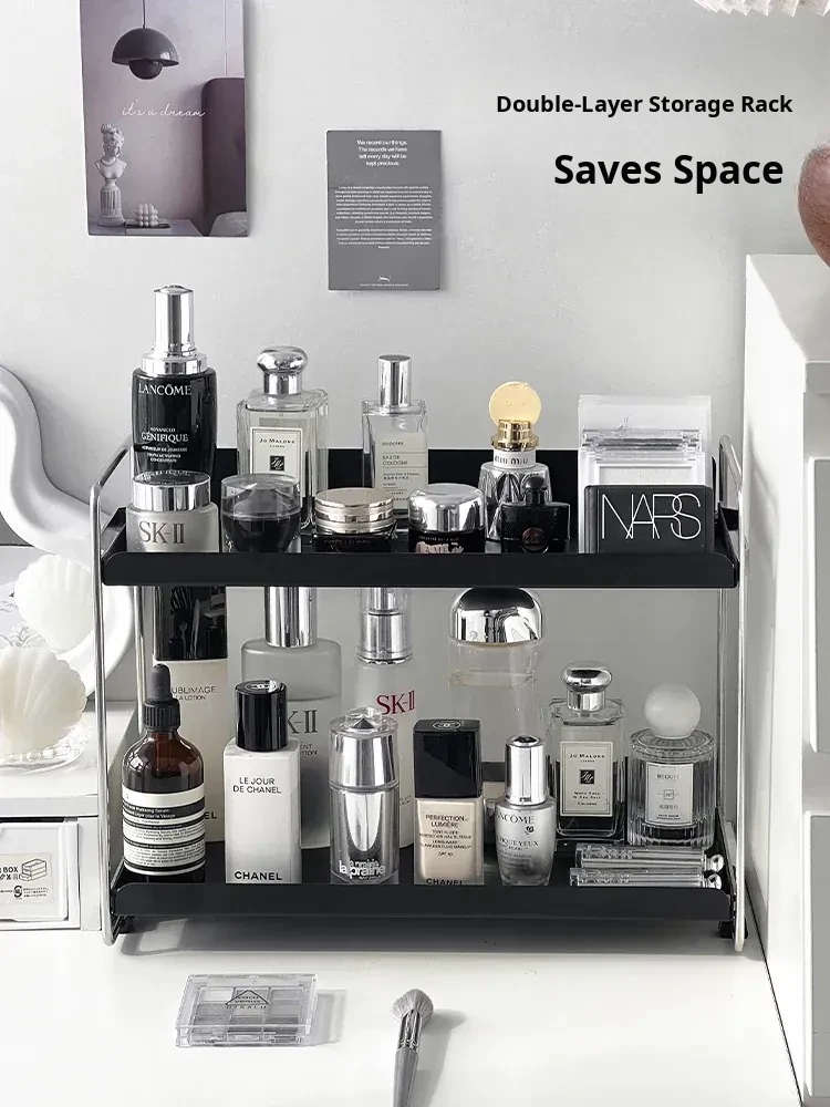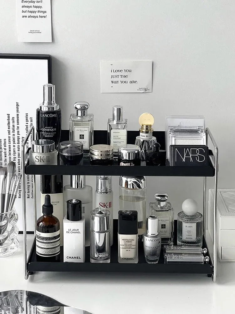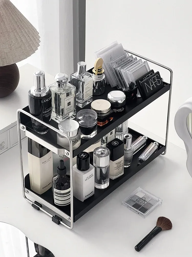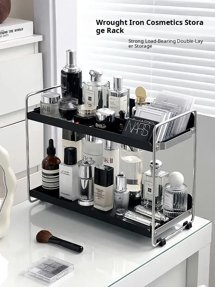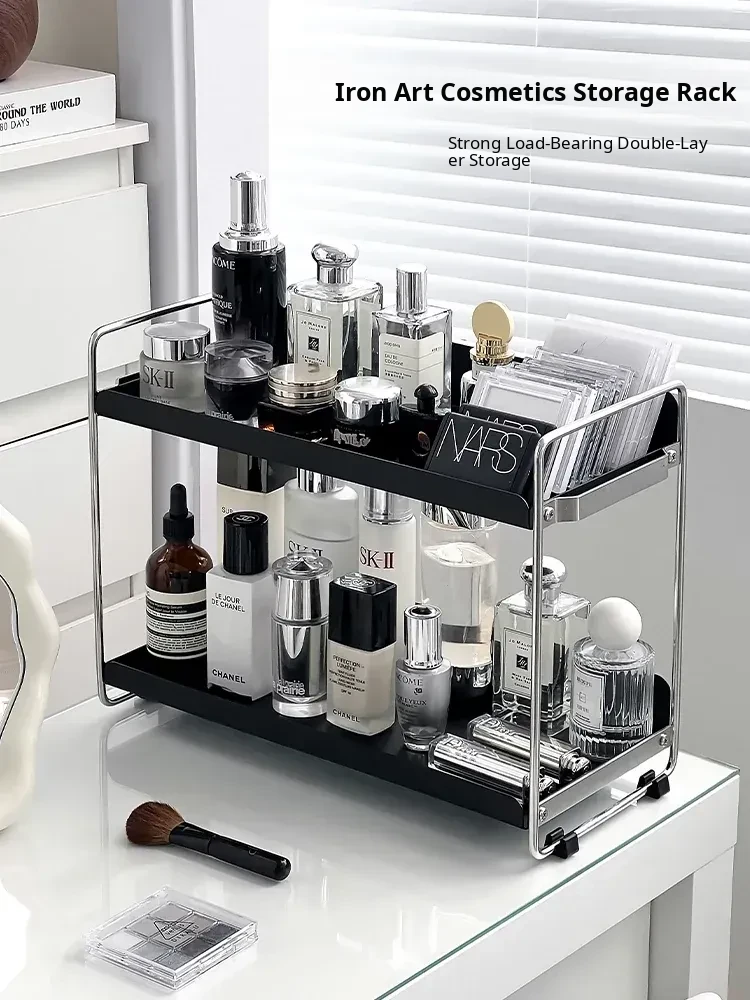 Elegant Iron Makeup Organizer - Luxurious Desktop Skincare Rack for Cosmetics, Entryway Lipstick Display, and Jewelry Holder. Perfect for Stylish Homes!