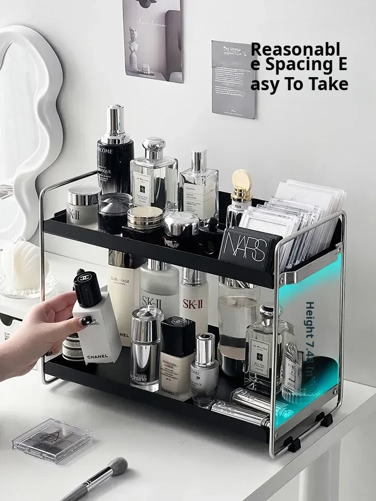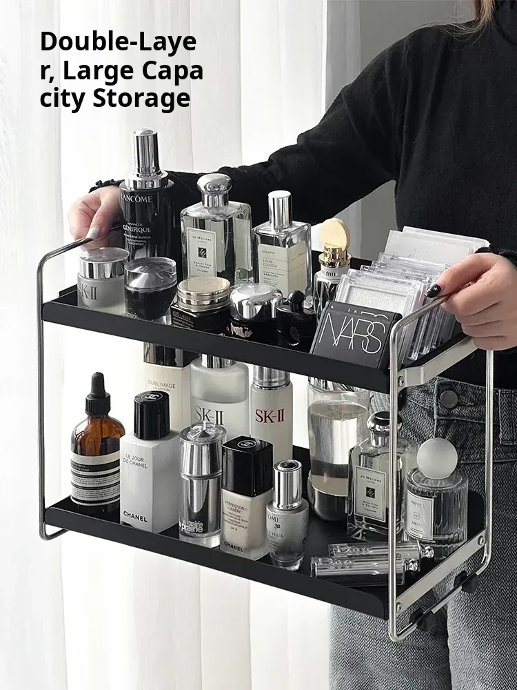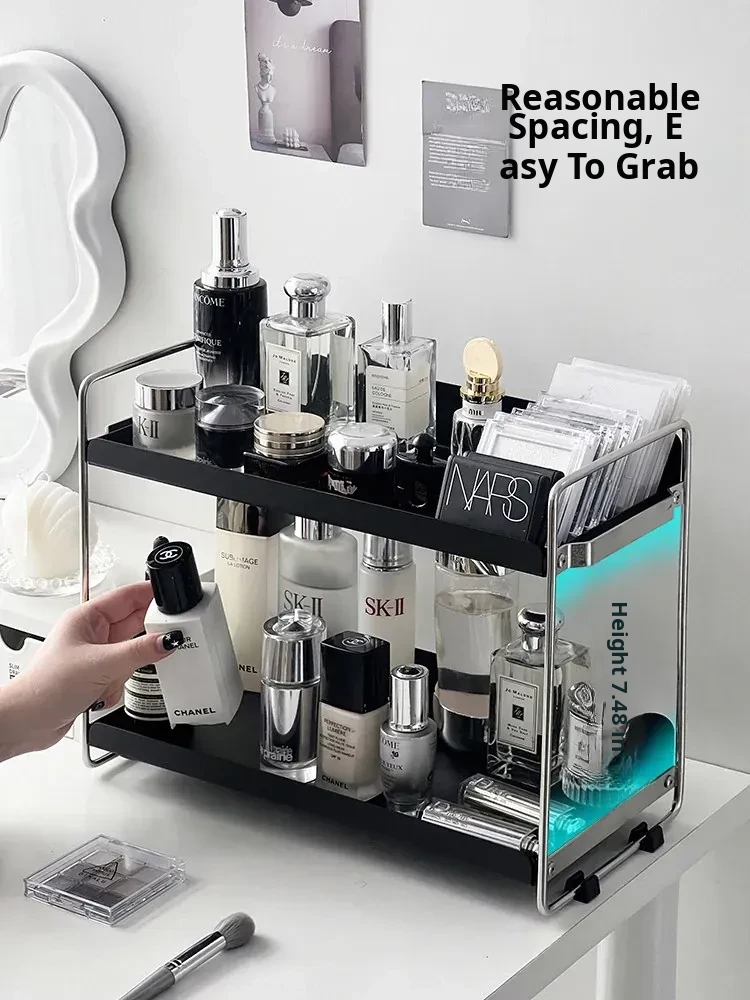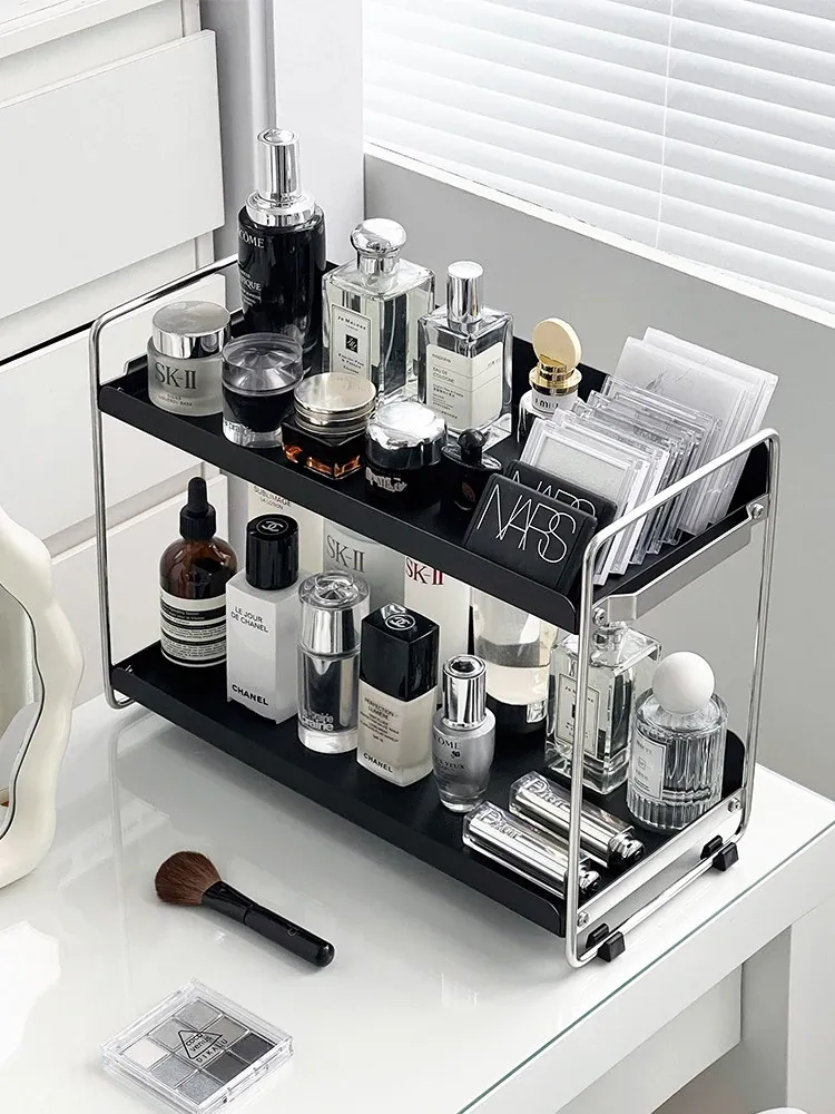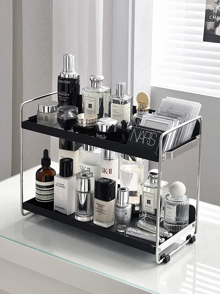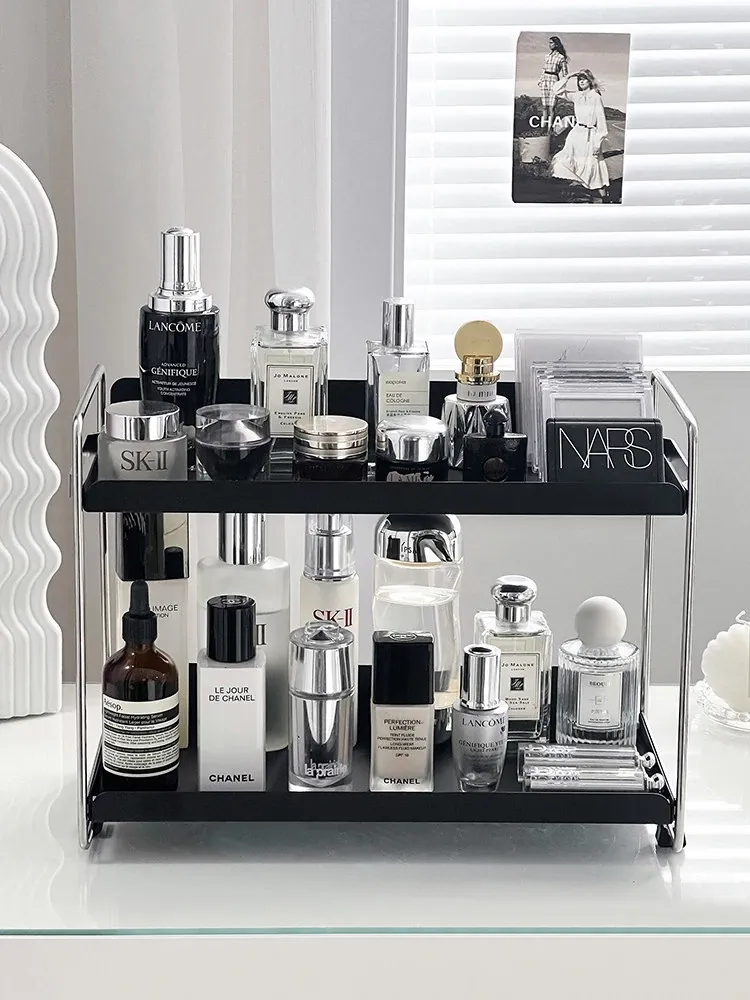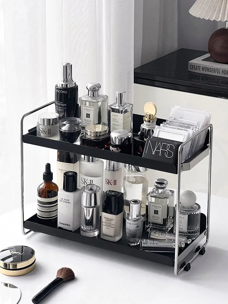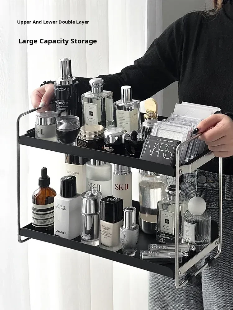 Elegant Iron Makeup Organizer - Luxurious Desktop Skincare Rack for Cosmetics, Entryway Lipstick Display, and Jewelry Holder. Perfect for Stylish Homes!