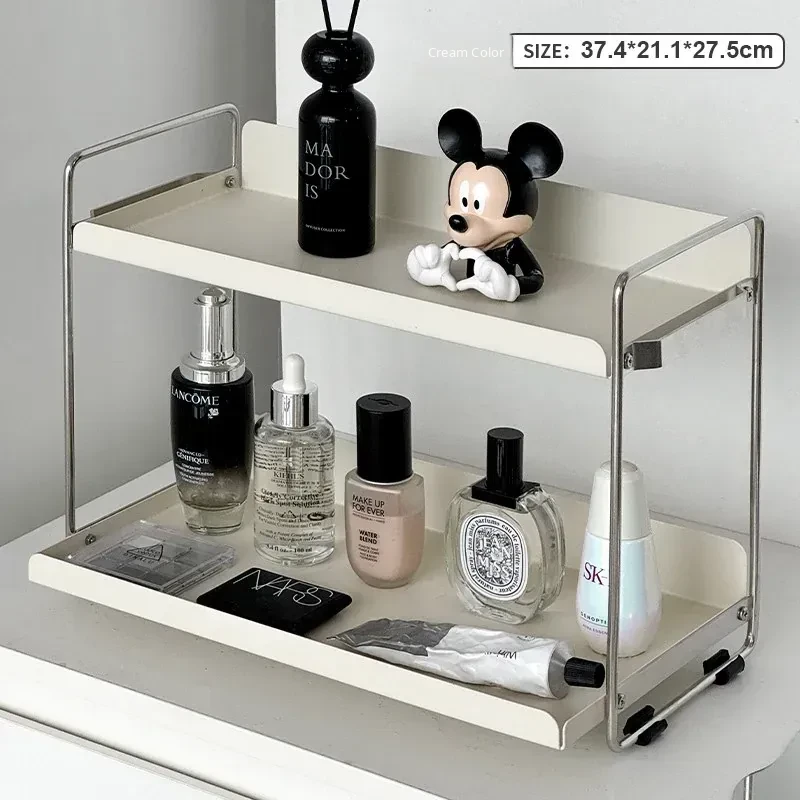 Upgraded and Widened [Handle Style] Wrought Iron Cream Double-Layer Storage Rack(Df–1349)