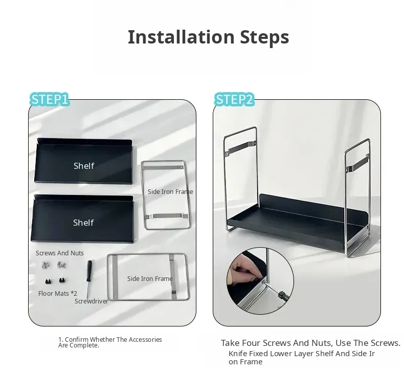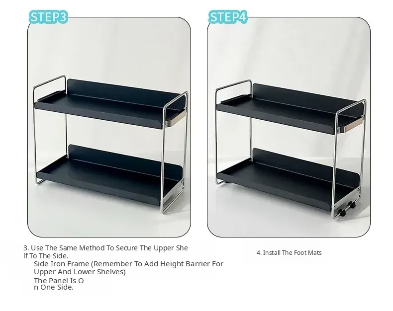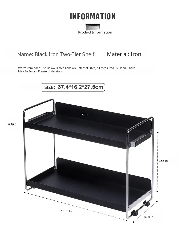 【Handle Style】Black Iron Double-Tier Storage Shelf(Df–1376)