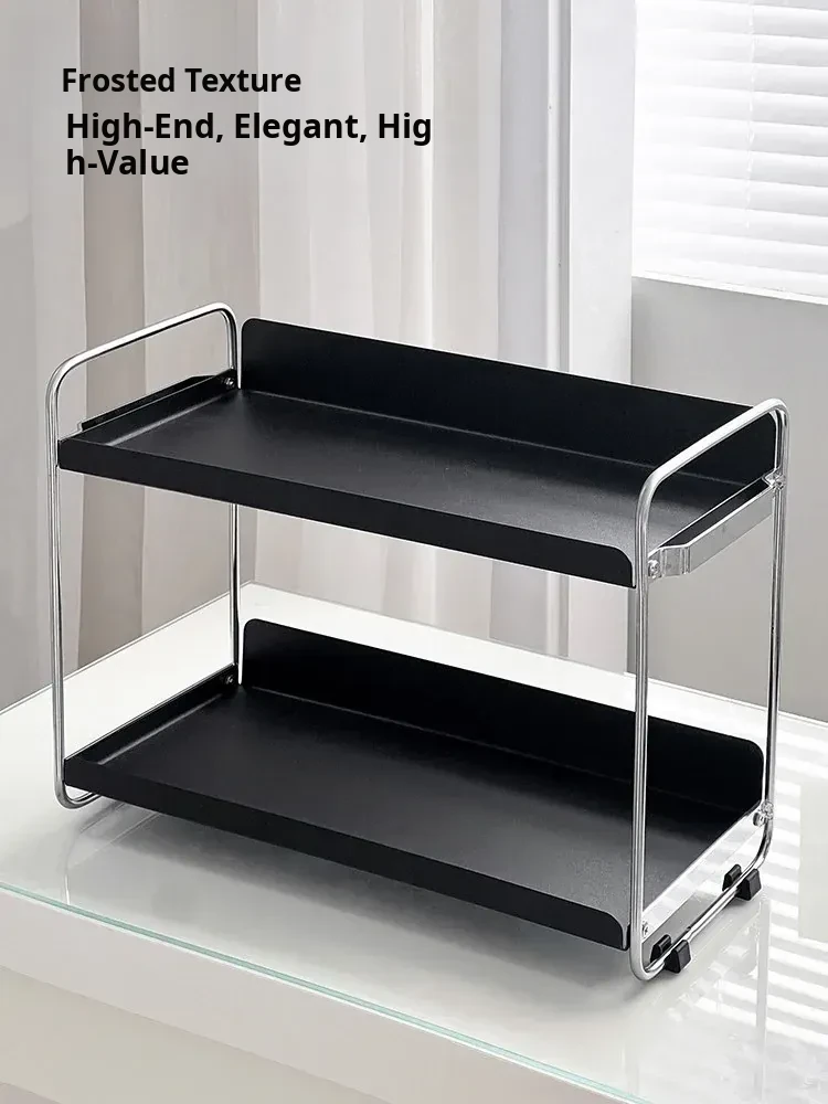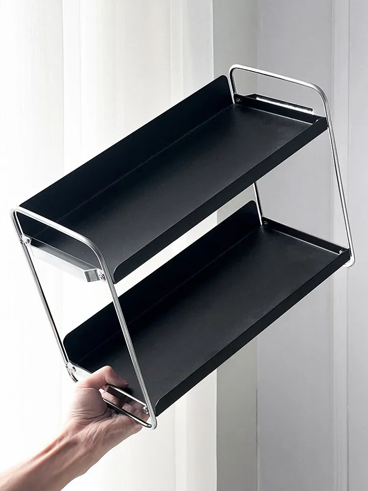 Upgraded and Widened [Handle Style] Iron Black Double-Layer Storage Rack(Df–1348)
