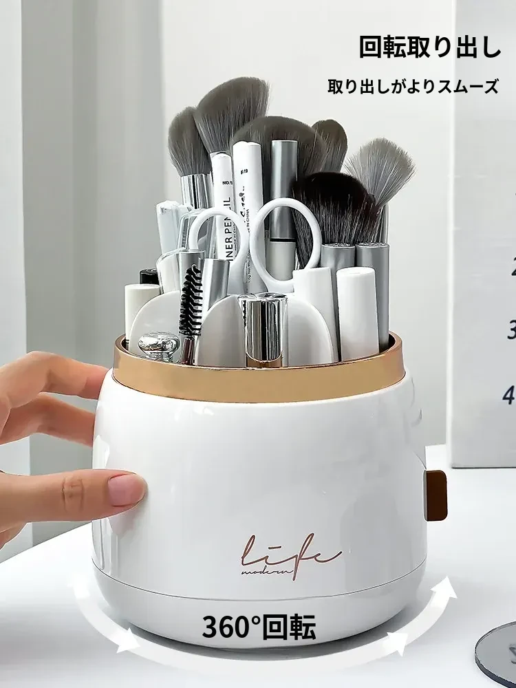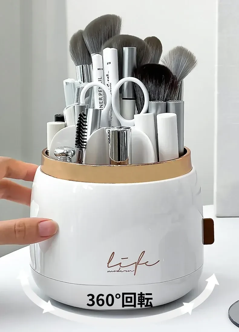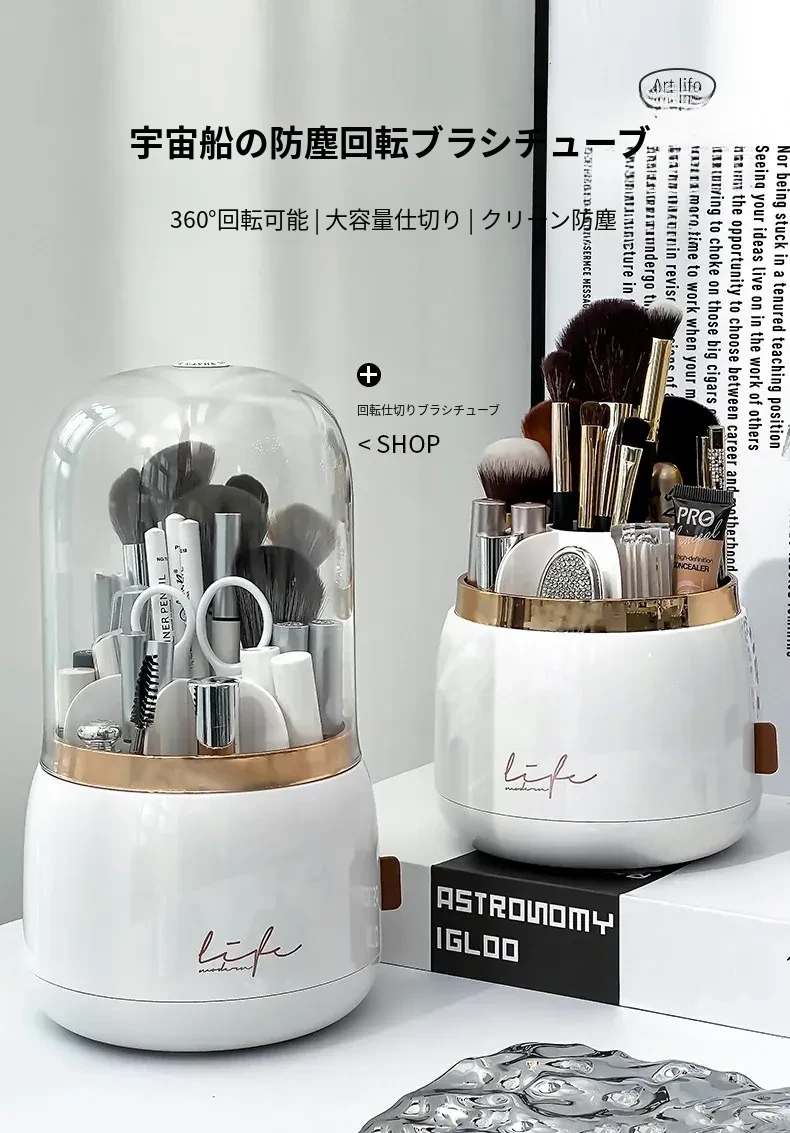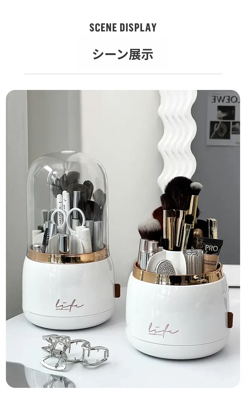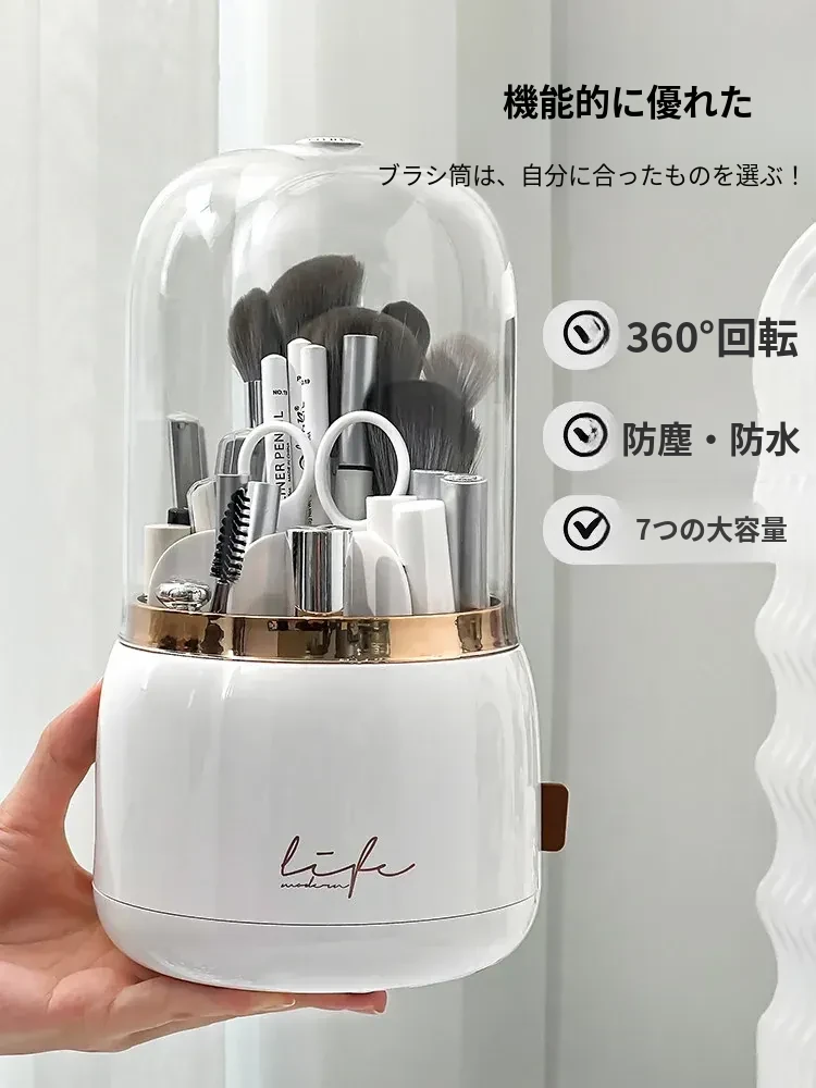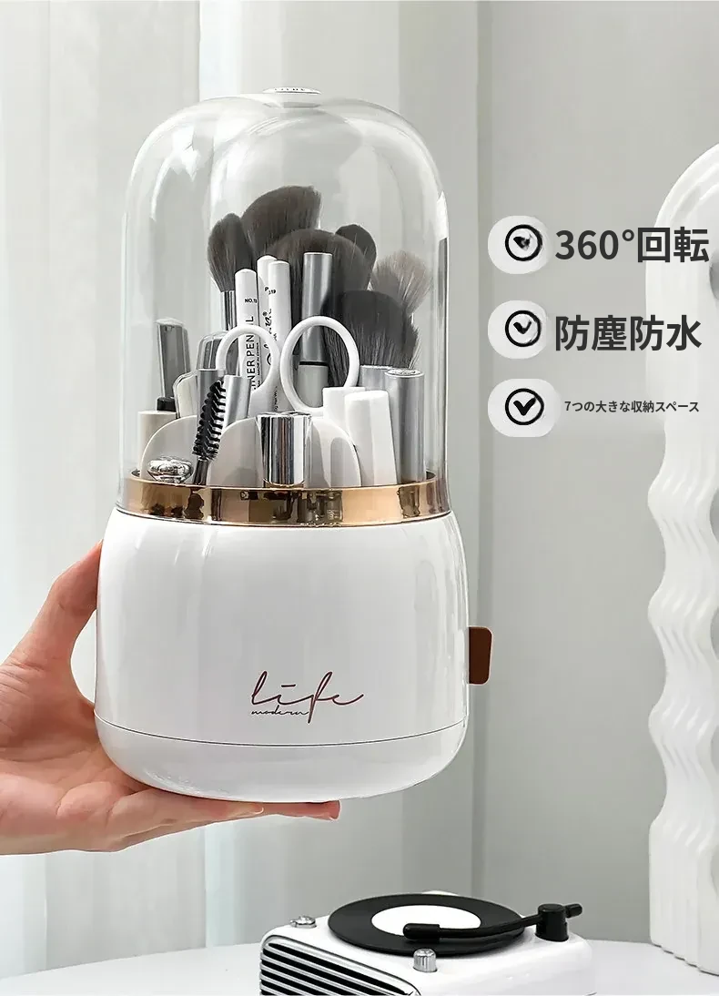 メイクブラシ収納筒 - 蓋付き・仕切り付きでデスク周りをスッキリ整理!回転式で便利な防塵アイシャドウブラシボックス&アイブロウペン立て。あなたの化粧台をスタイリッシュに演出!