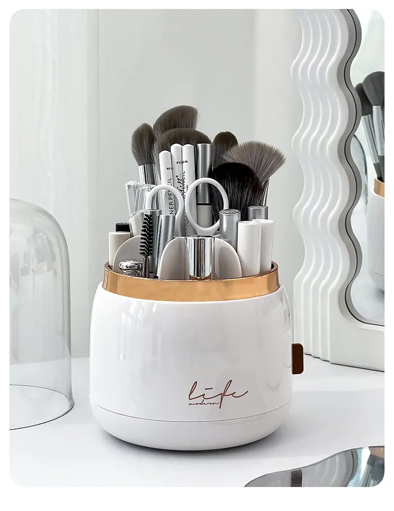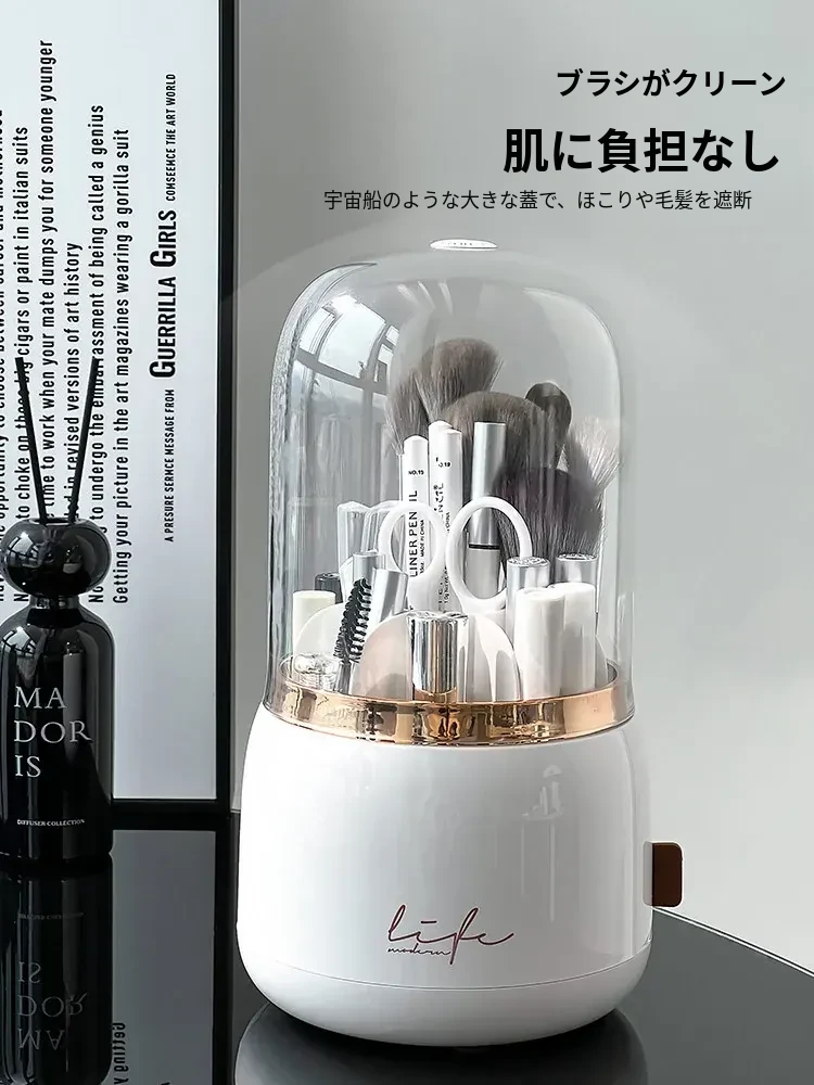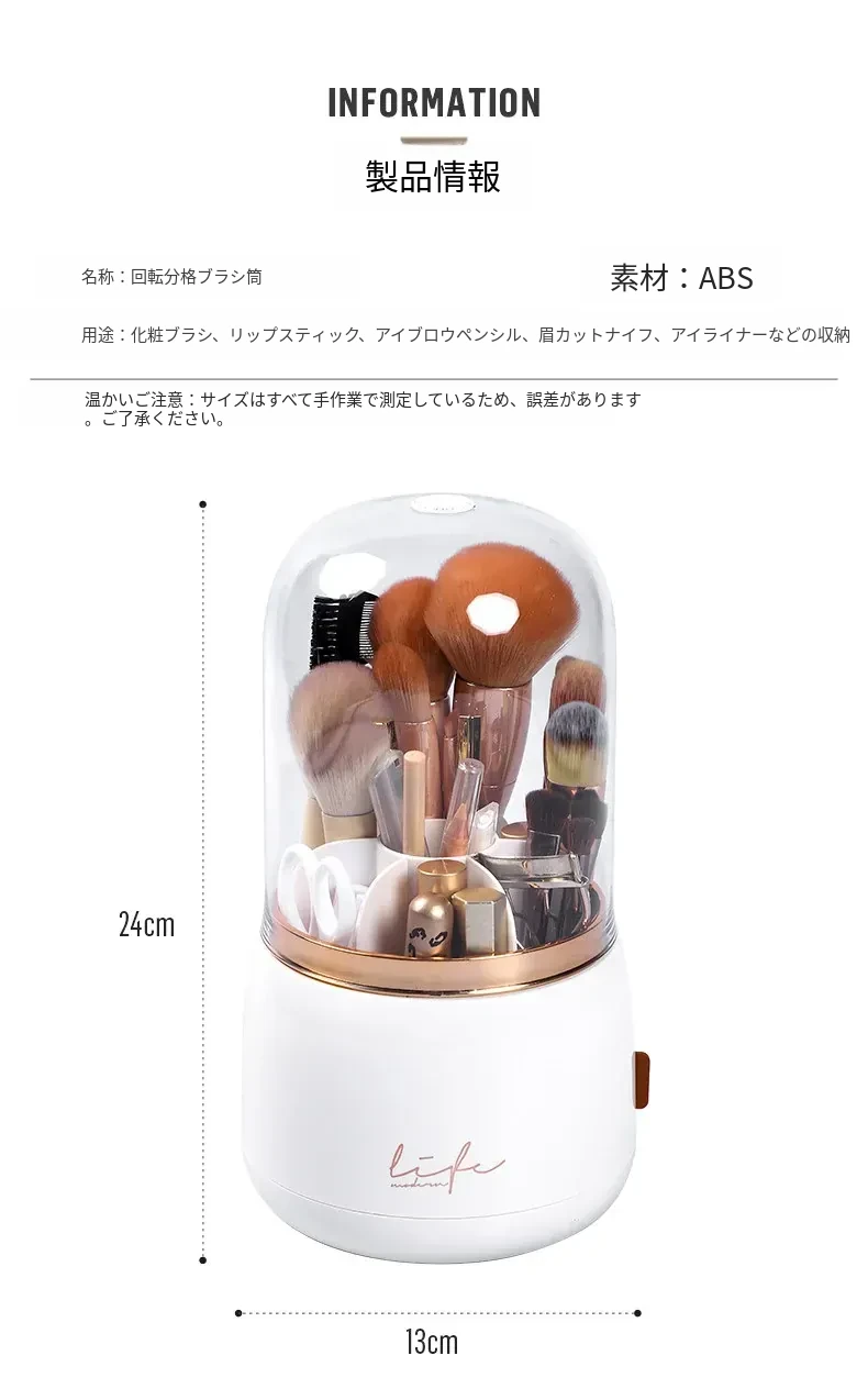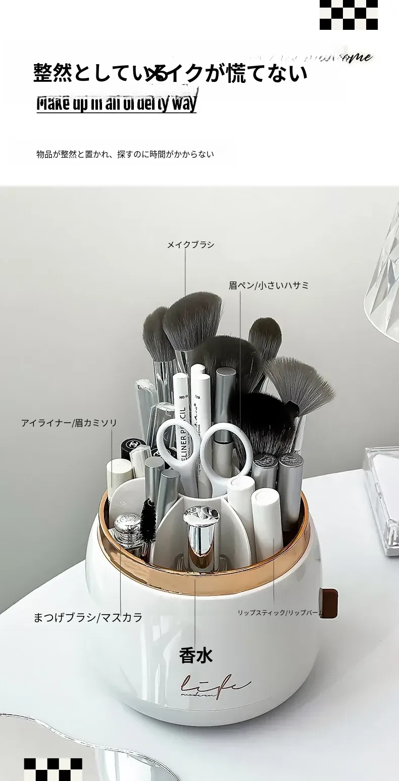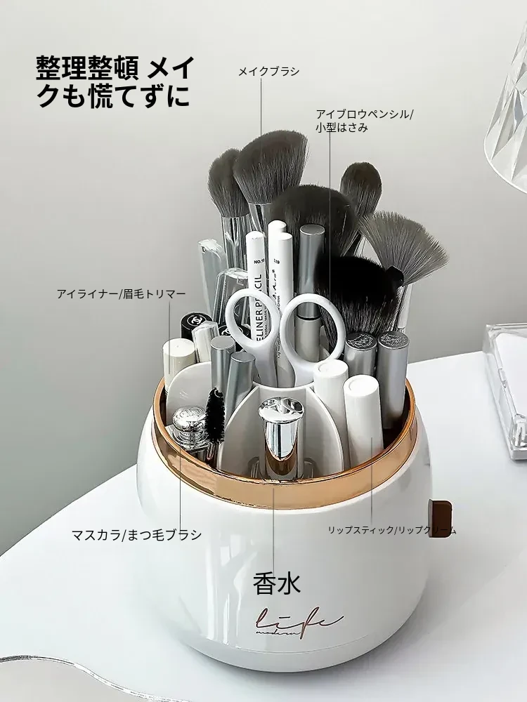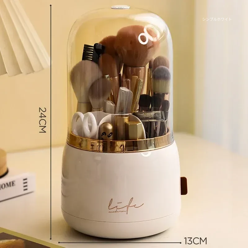 メイクブラシ収納筒 - 蓋付き・仕切り付きでデスク周りをスッキリ整理!回転式で便利な防塵アイシャドウブラシボックス&アイブロウペン立て。あなたの化粧台をスタイリッシュに演出!