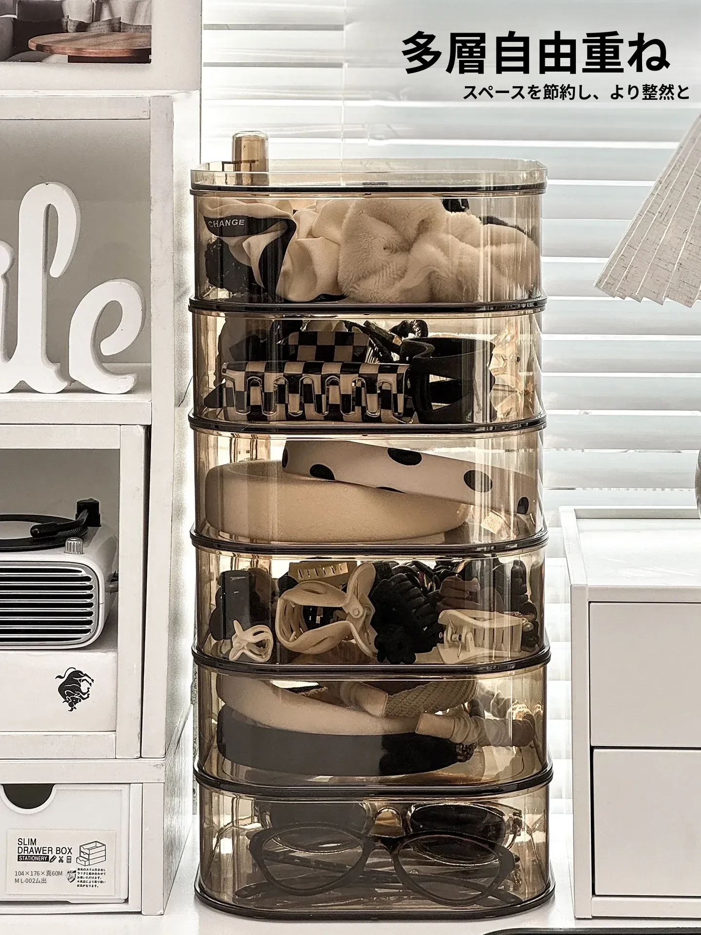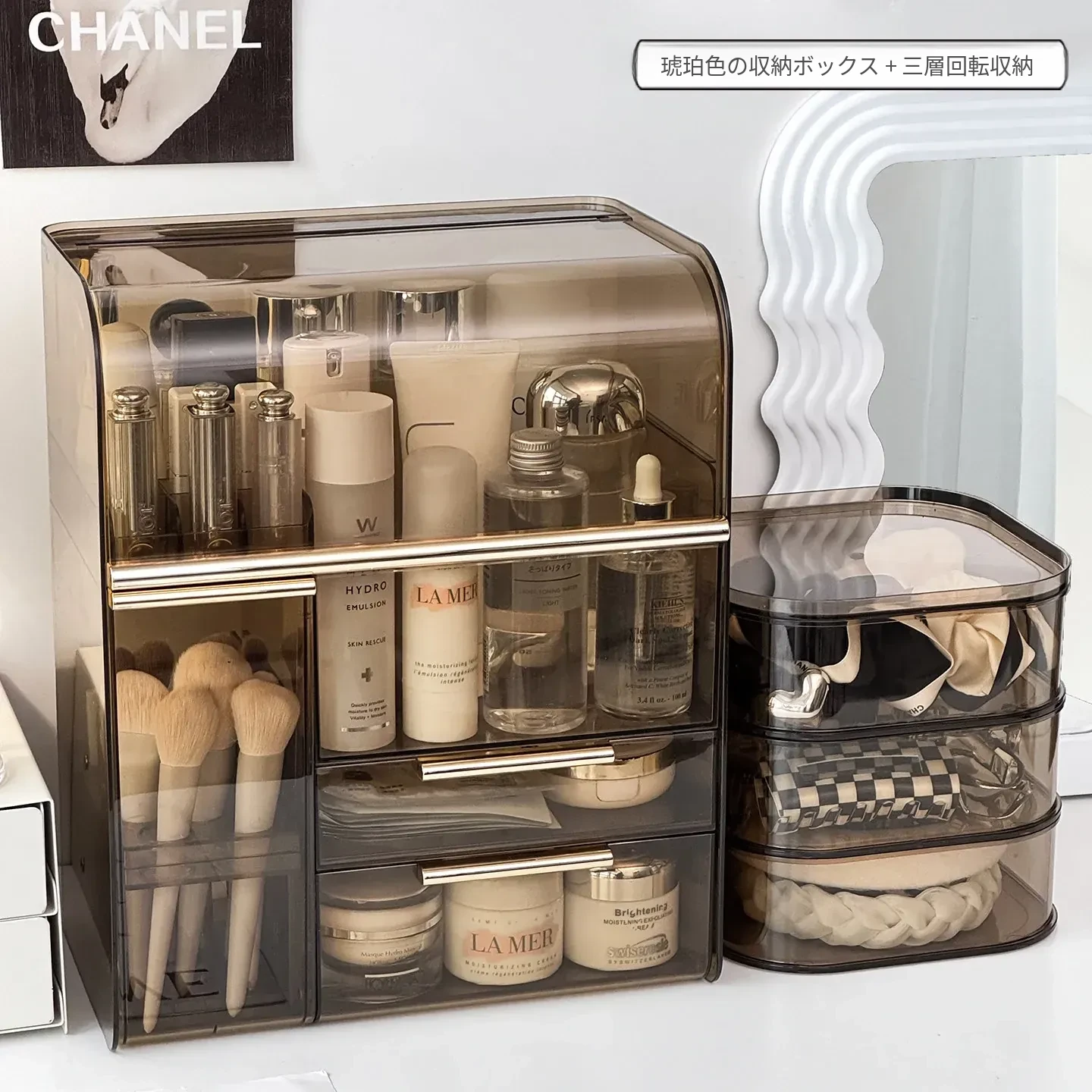 【セット商品】アンバーゴールド多機能メイクボックス+三層大回転ヘアアクセサリーボックス