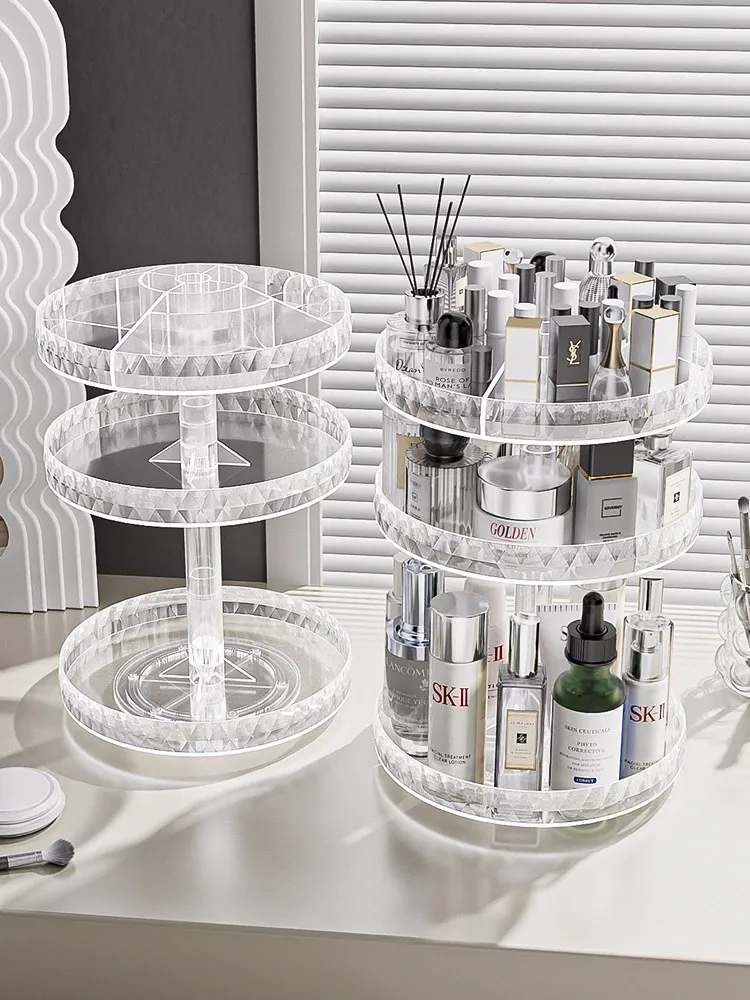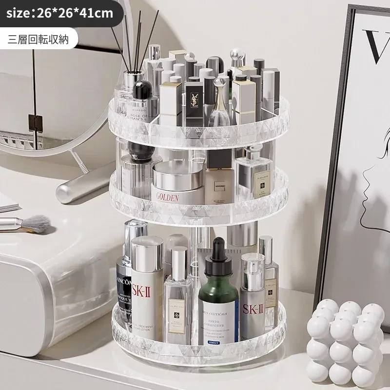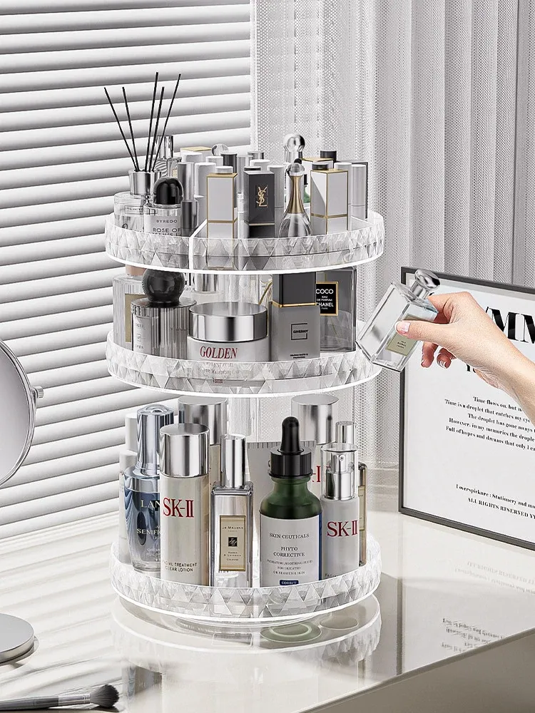高級感あふれる回転式化粧品収納ラック!アクリル製のコスメティックテーブル用多層スキンケア・香水・リップスティック収納ボックスで、美しさを引き立てるスマートな整理整頓を実現!