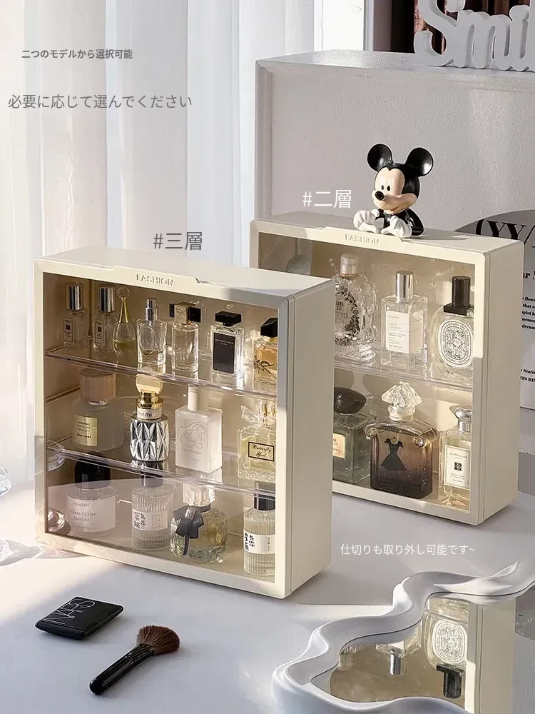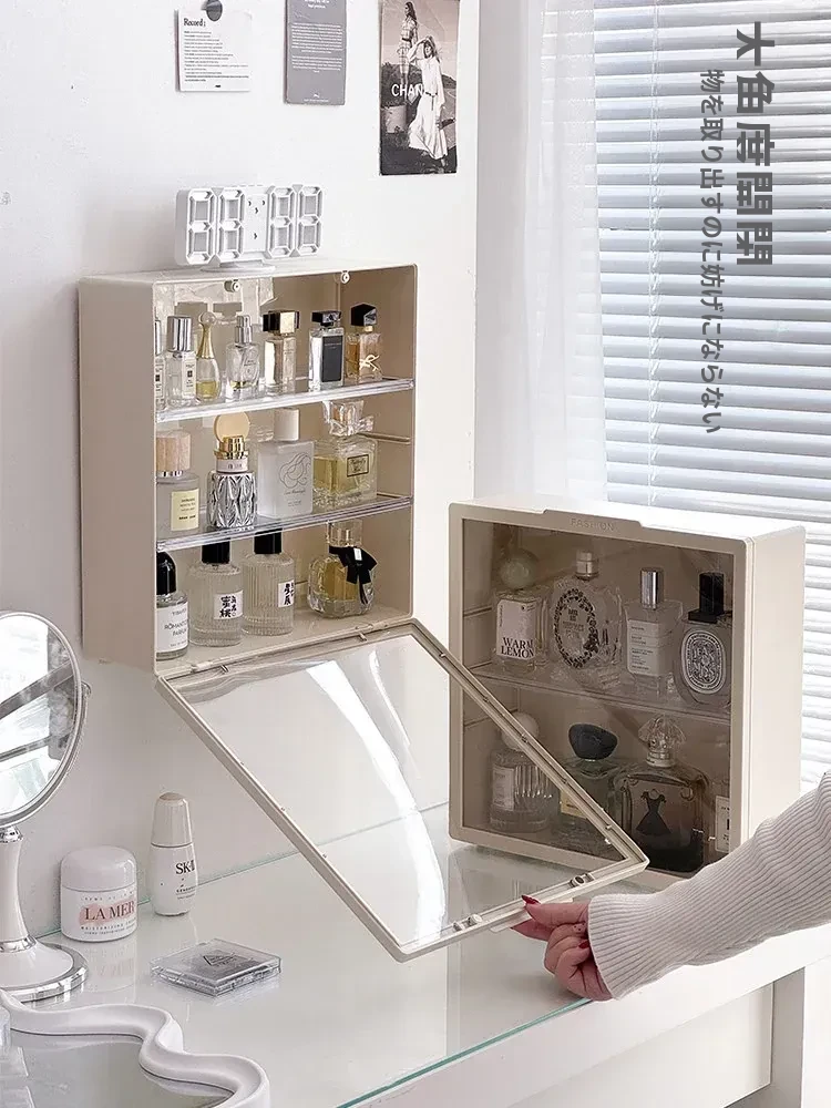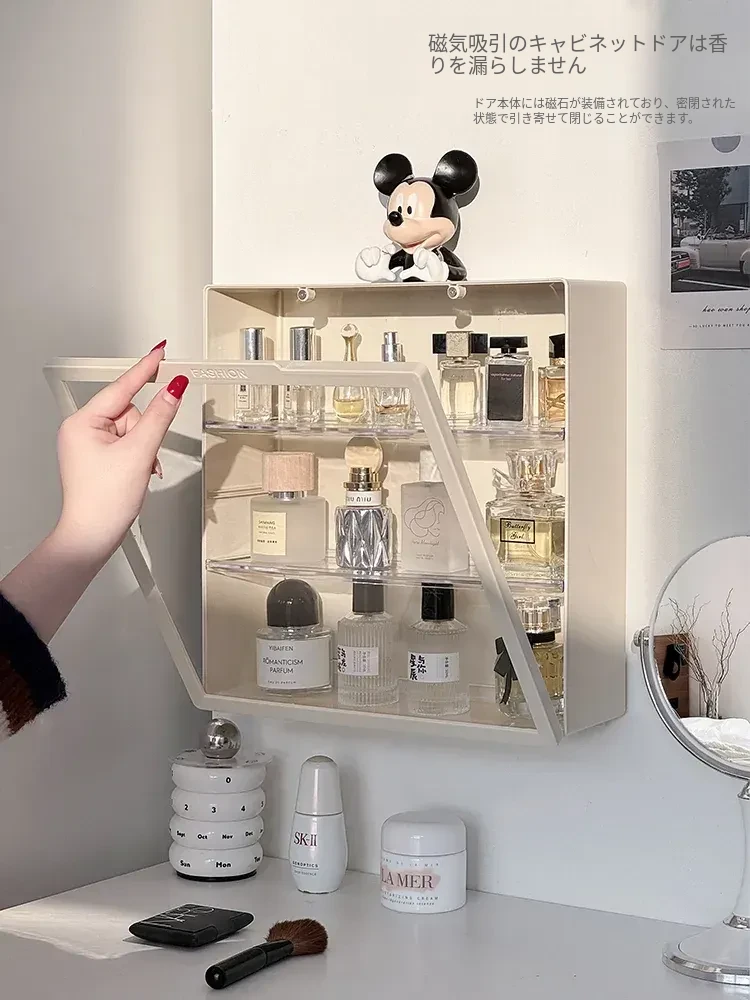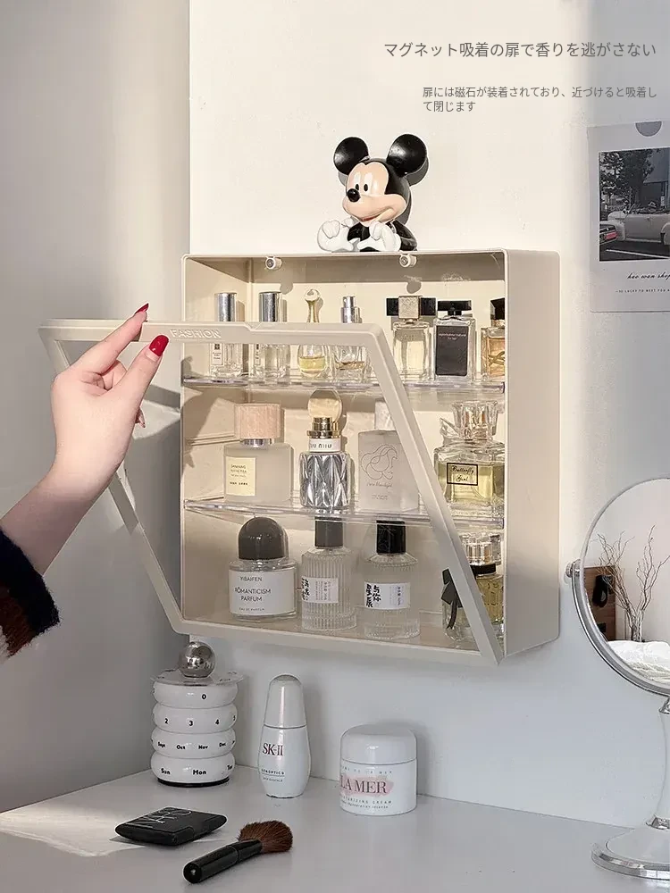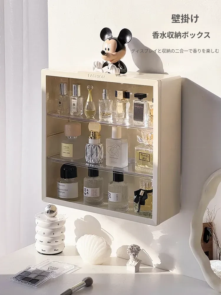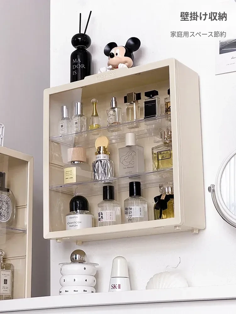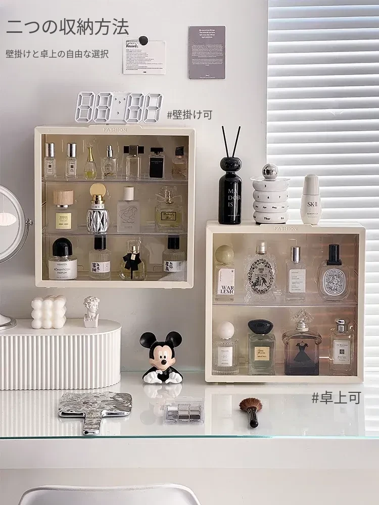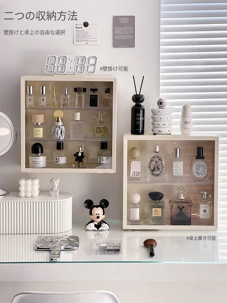 壁掛け香水ディスプレイケース 防塵デスクトップ化粧品収納ボックス 高級感あふれるドレッサー用層別避光収納ラック