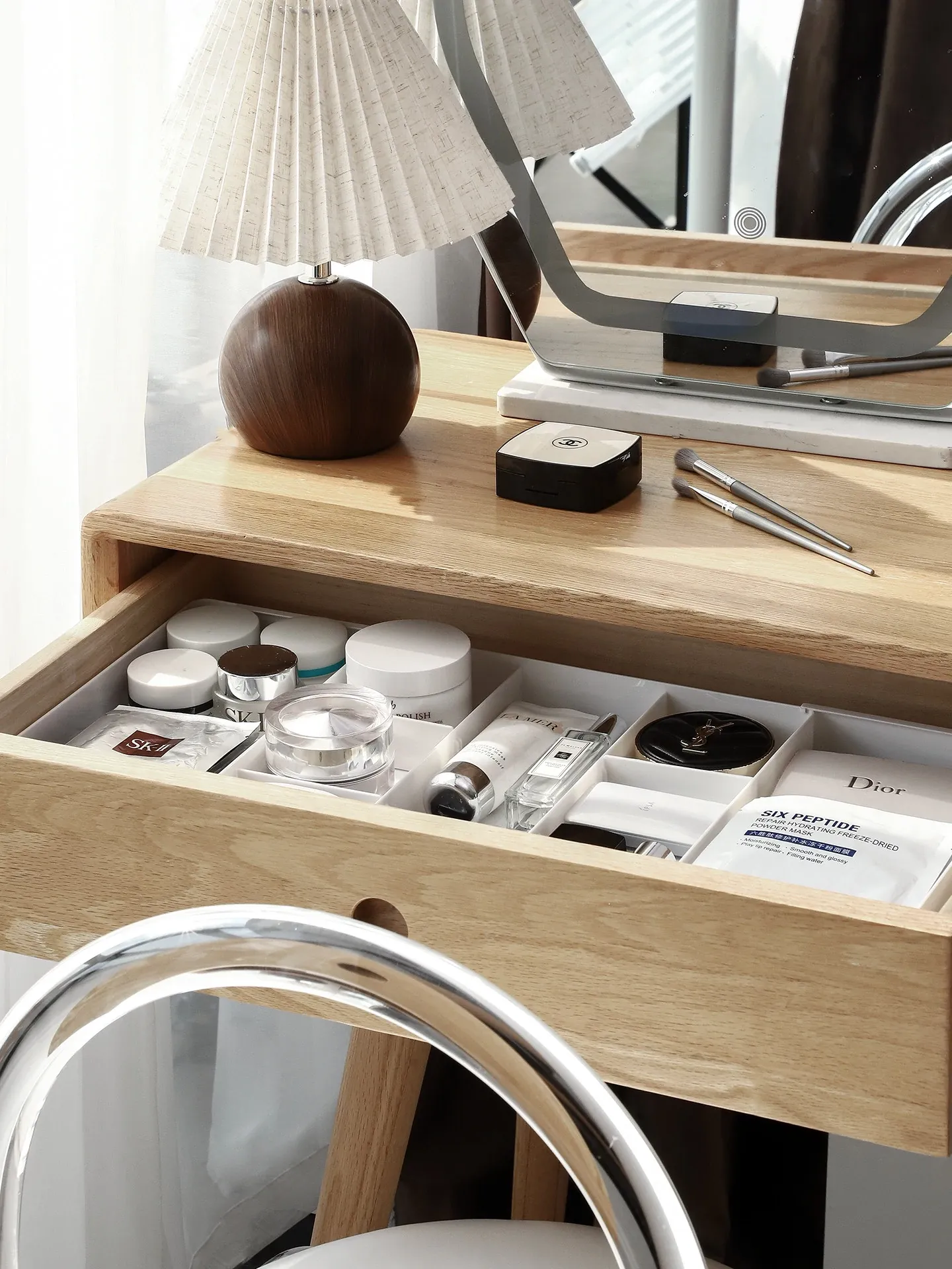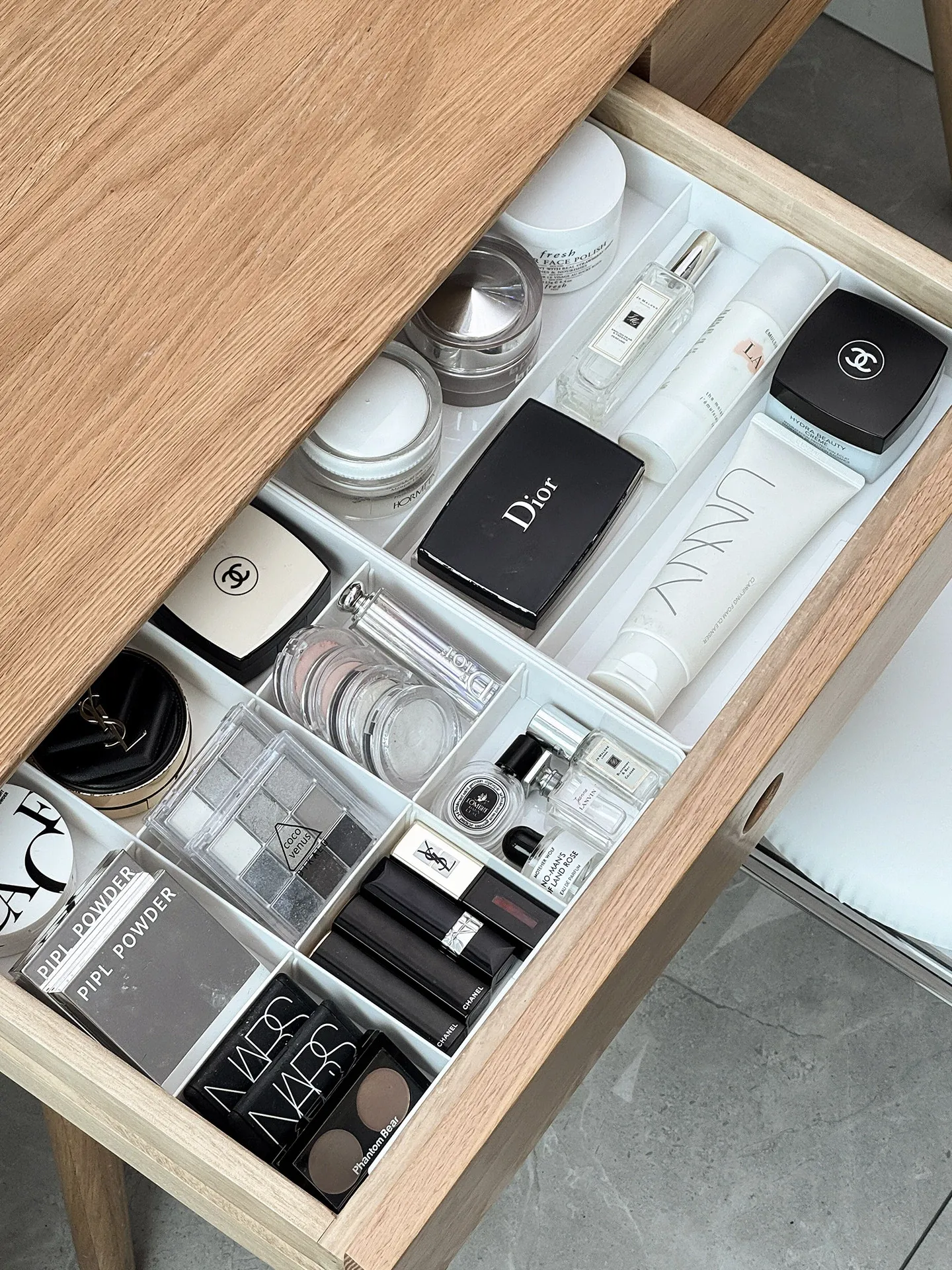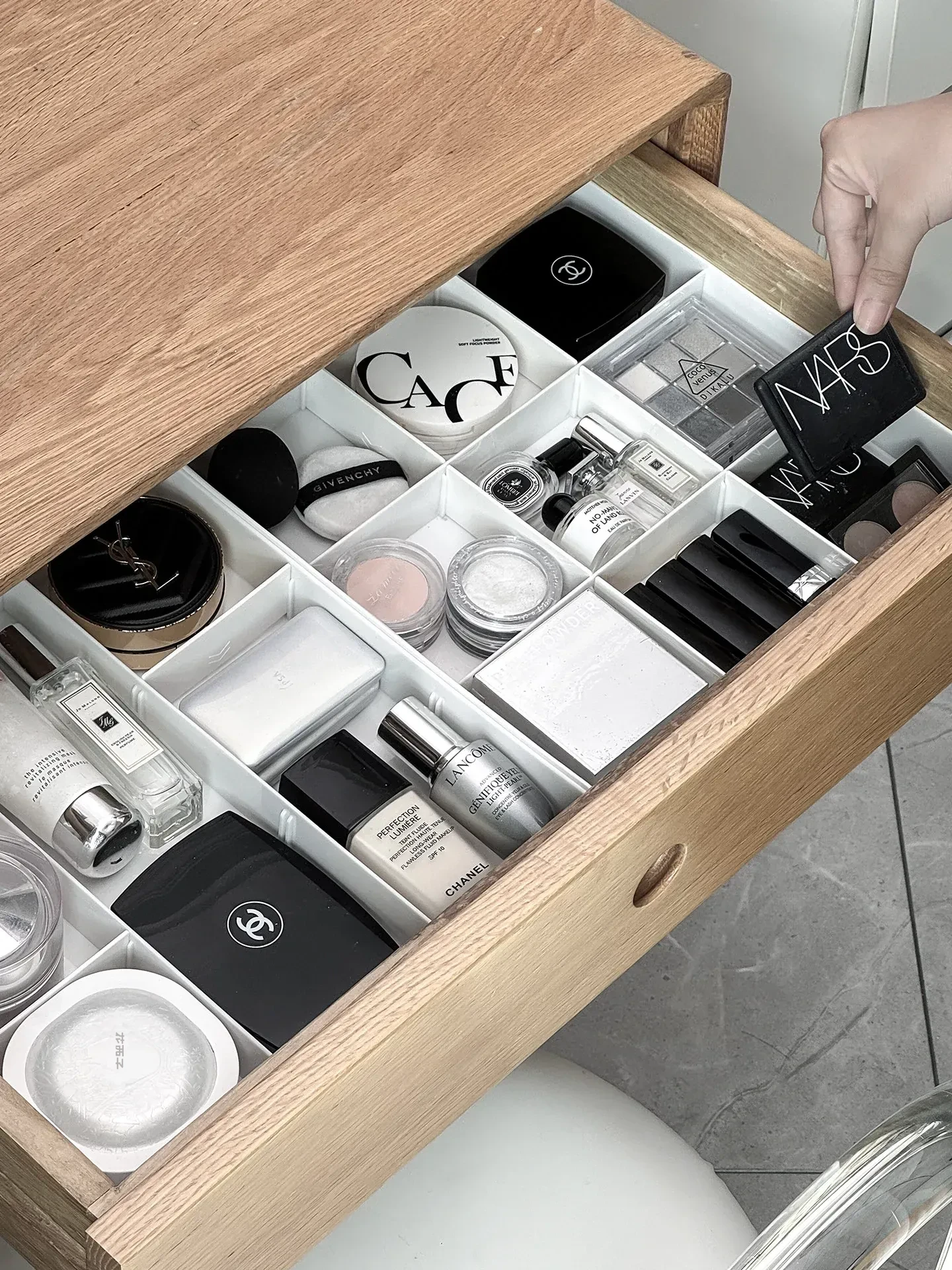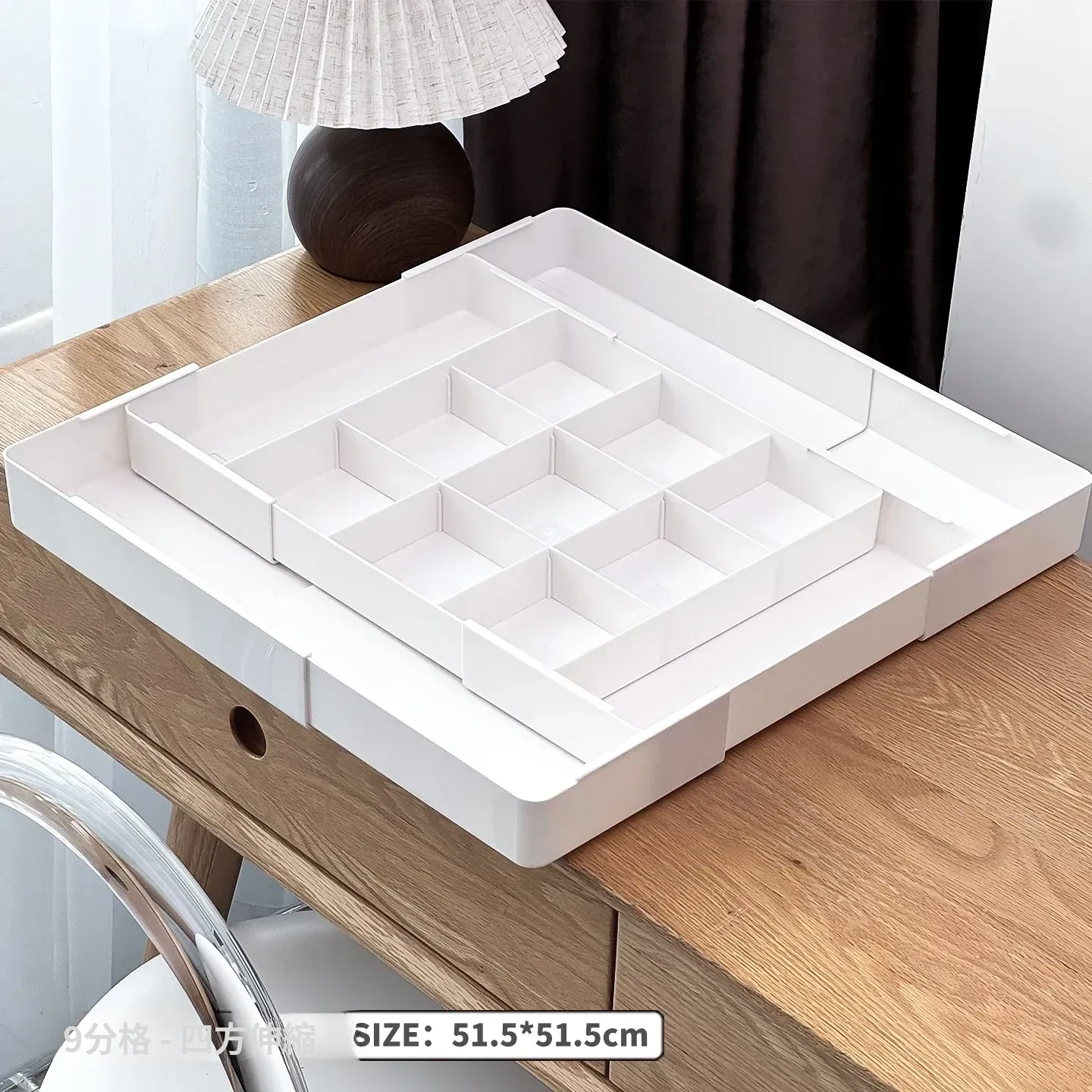 伸縮可能な引き出し収納ボックス - ドレッサー用化粧品整理トレー、リップスティックやメイクブラシをスッキリ整理できる便利な仕切り付き!あなたのビューティーアイテムを美しく整頓!