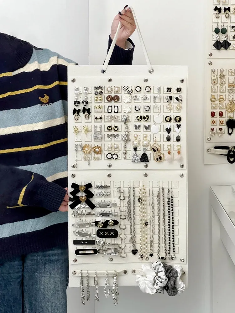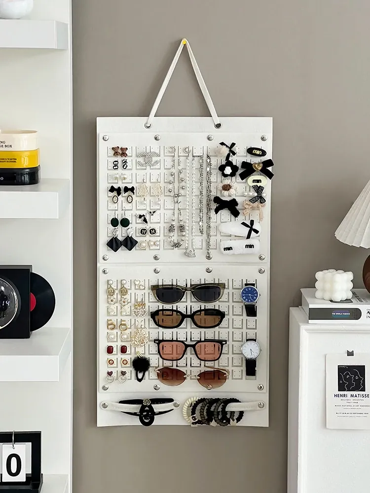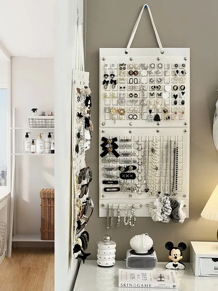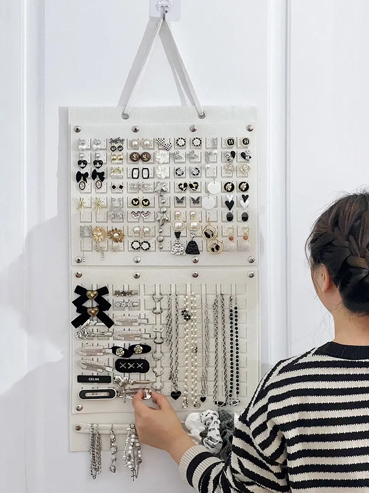フェルト製ジュエリー収納ハンギングポケット - 壁掛け式のイヤリング&ヘアアクセサリー展示ラック!子供のヘアピン整理もお任せ、オシャレで実用的な整理術!