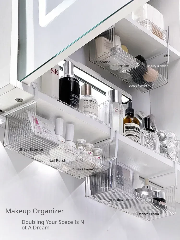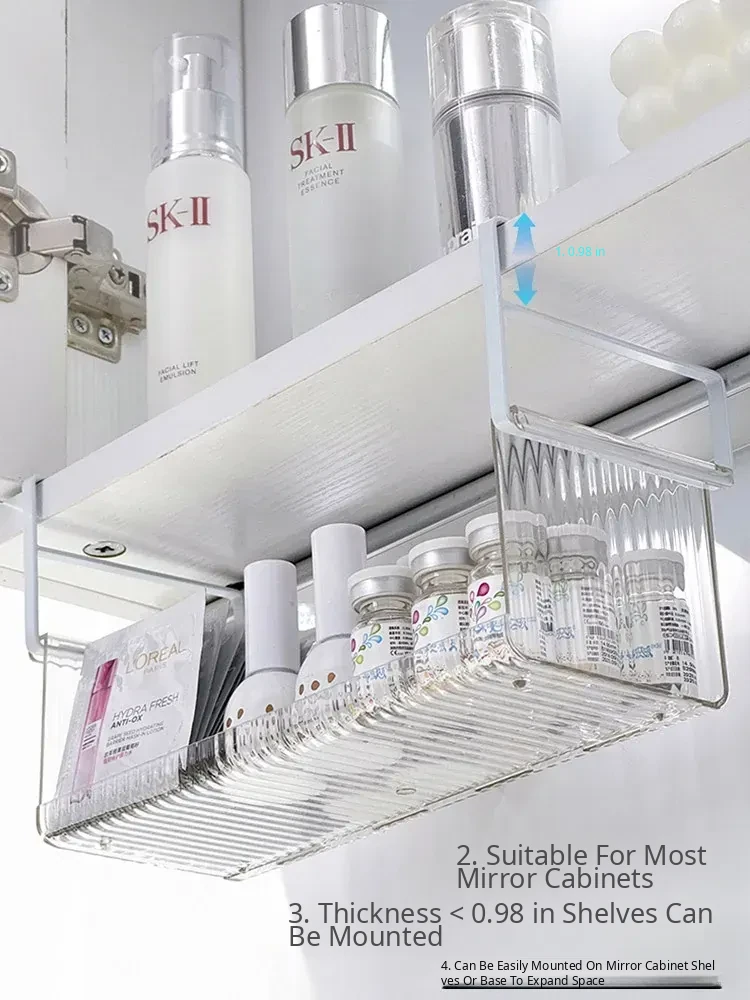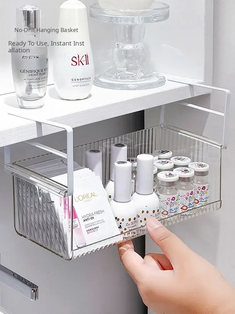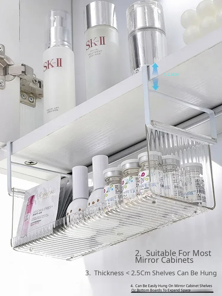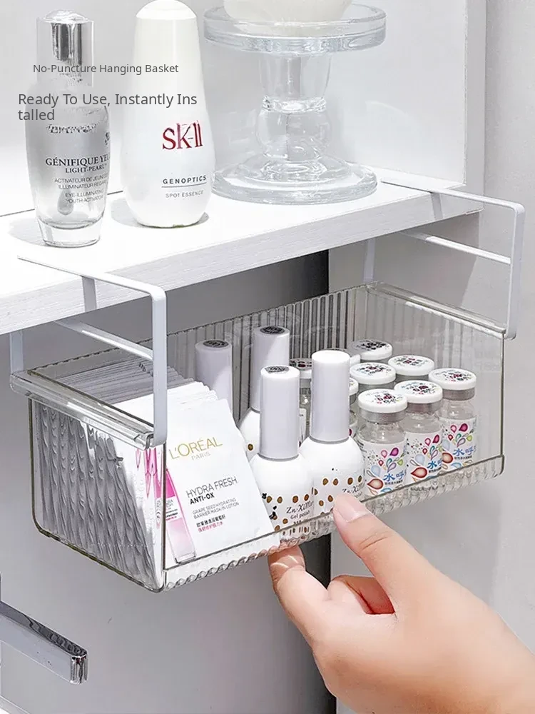 Hanging Storage Basket for Bathroom - Under-Mirror Cosmetic Organizer, Ideal for Makeup Sponges, Used Face Towels, and More, Space-Saving Shelf for a Tidy Vanity