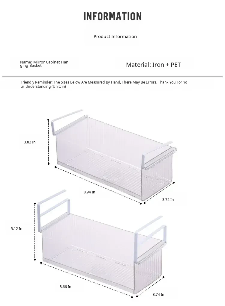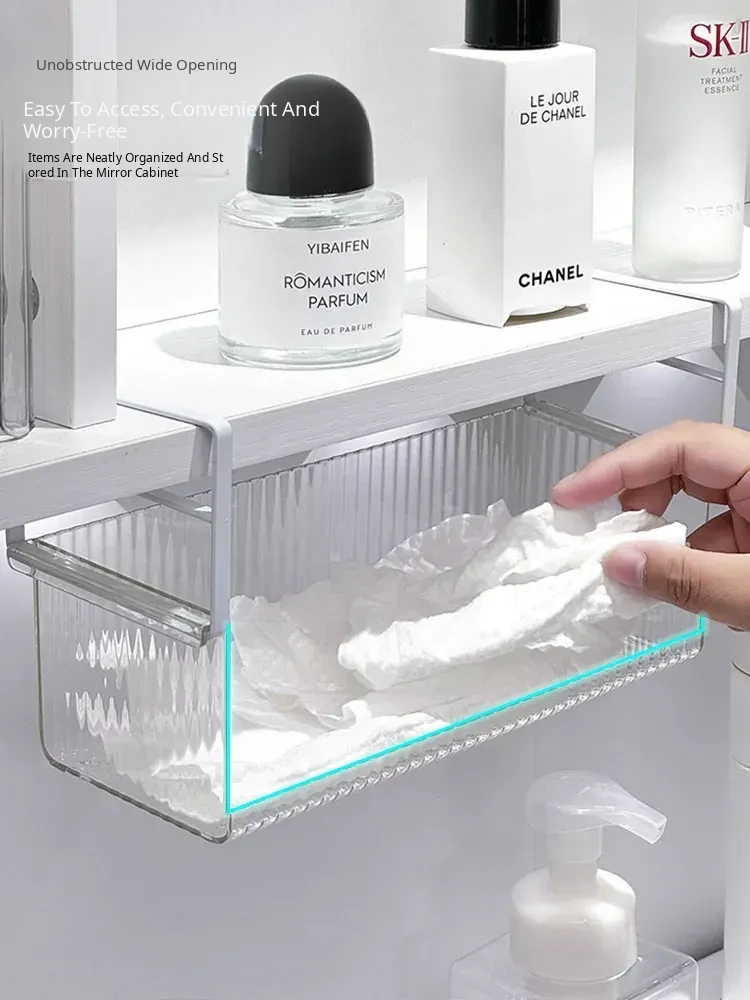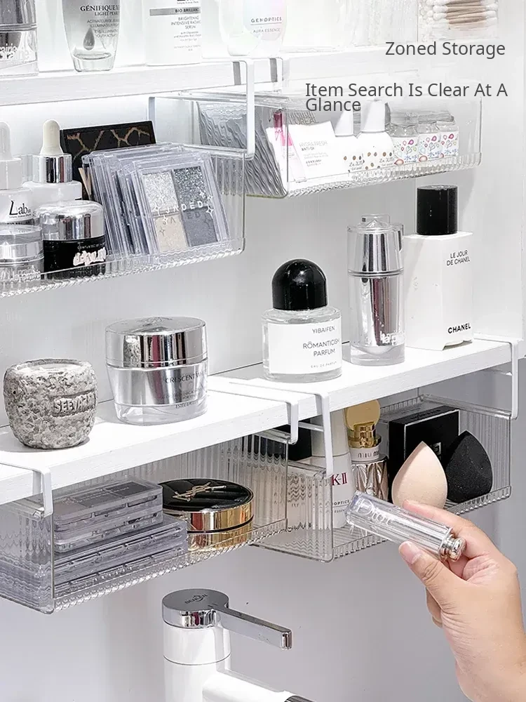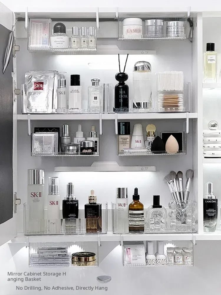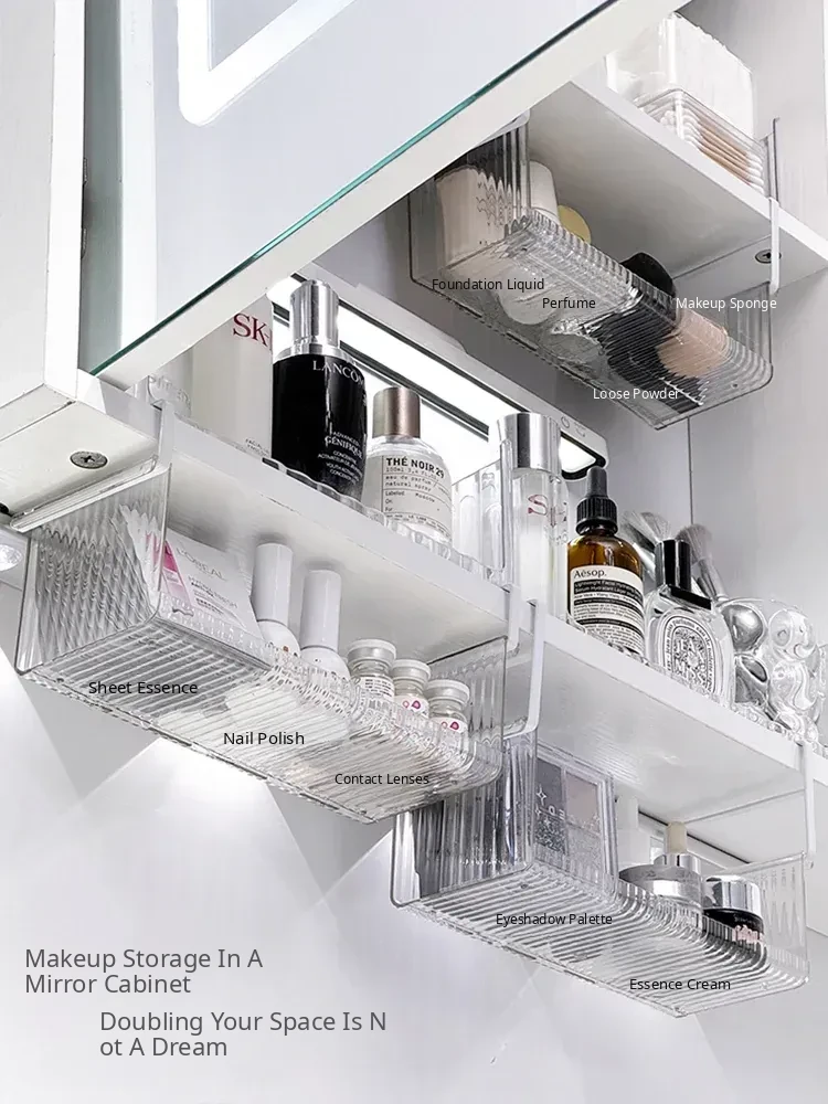 Hanging Storage Basket for Bathroom - Under-Mirror Cosmetic Organizer, Ideal for Makeup Sponges, Used Face Towels, and More, Space-Saving Shelf for a Tidy Vanity