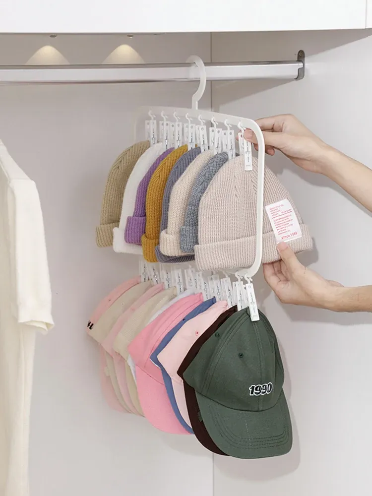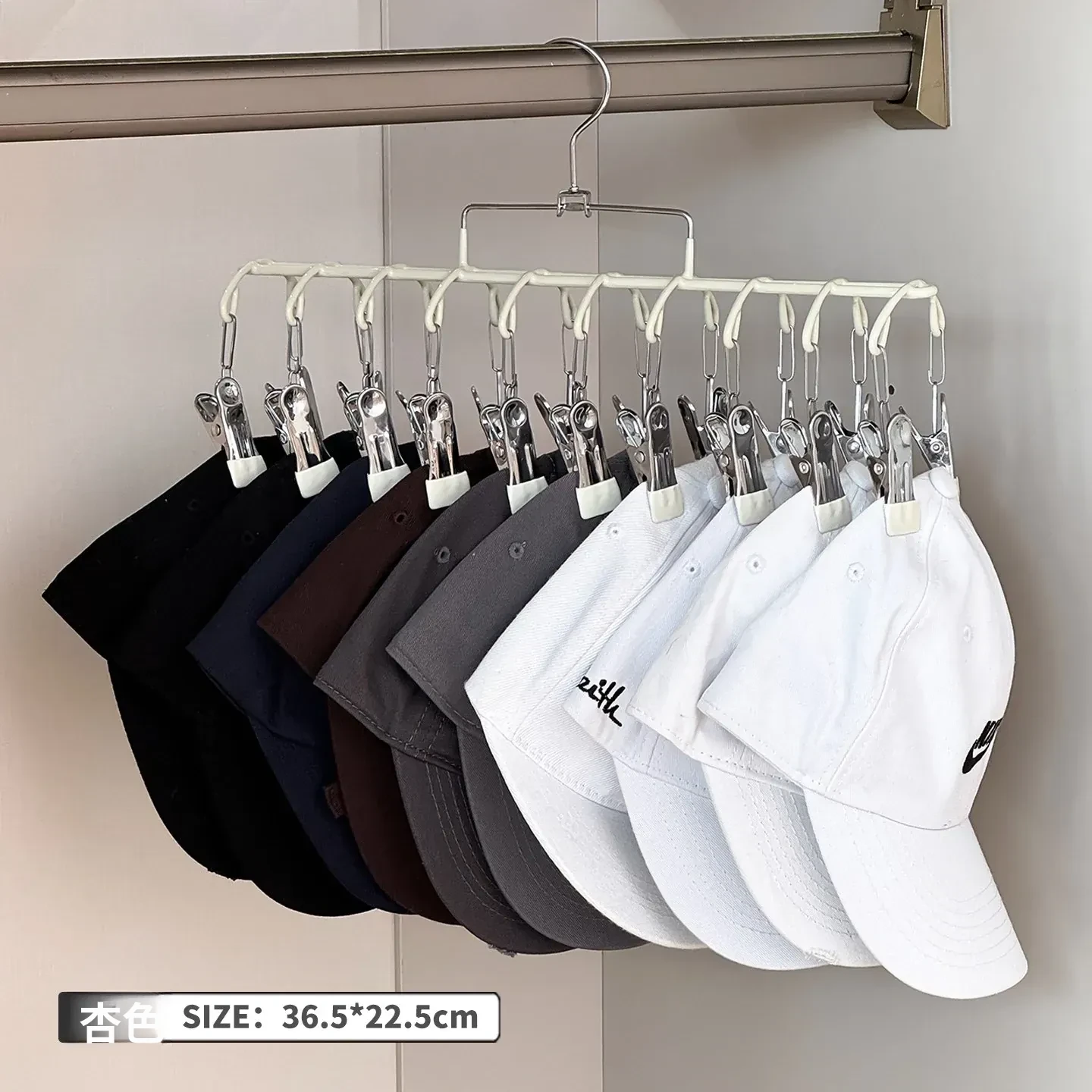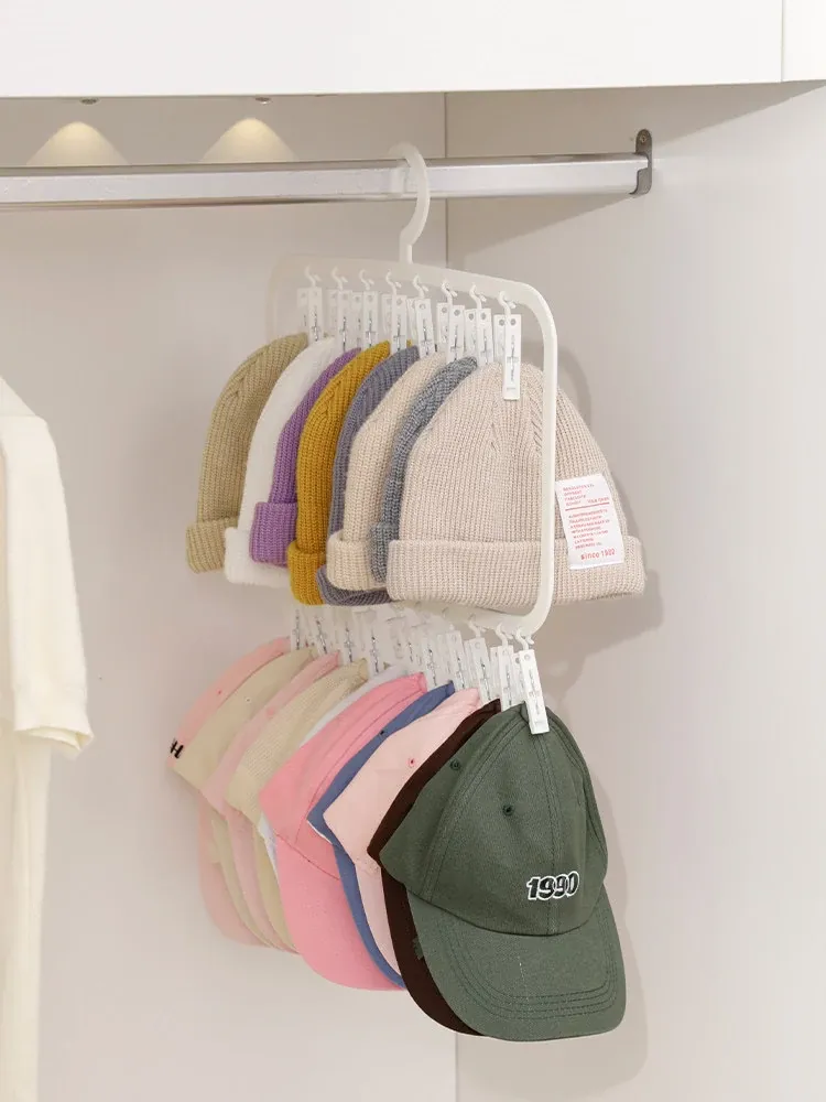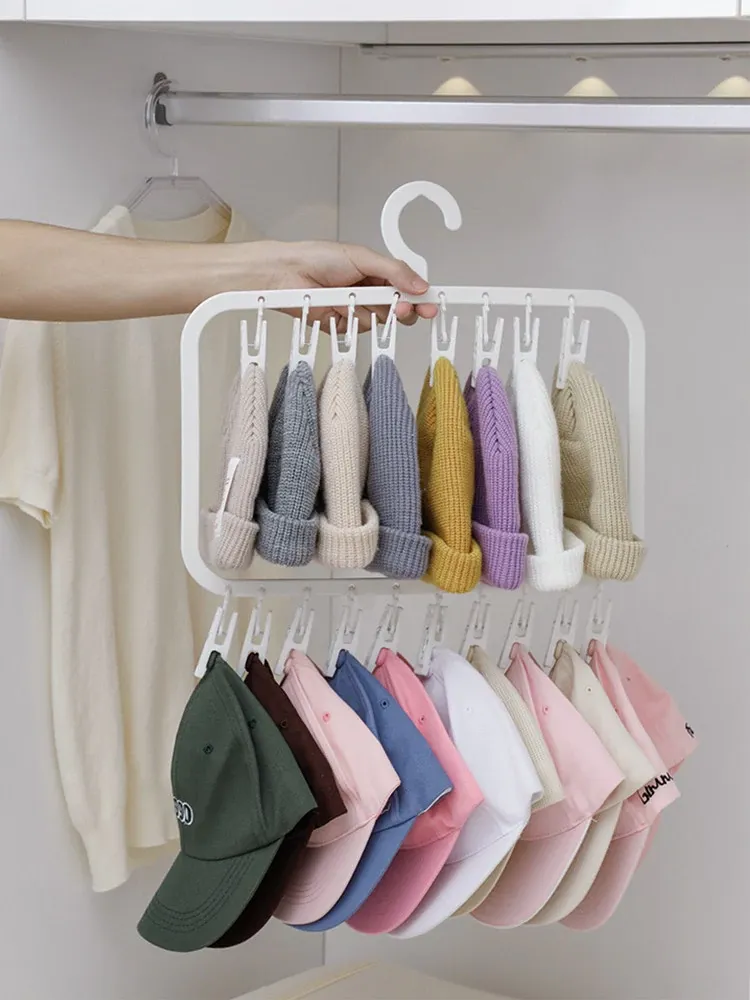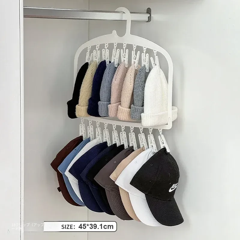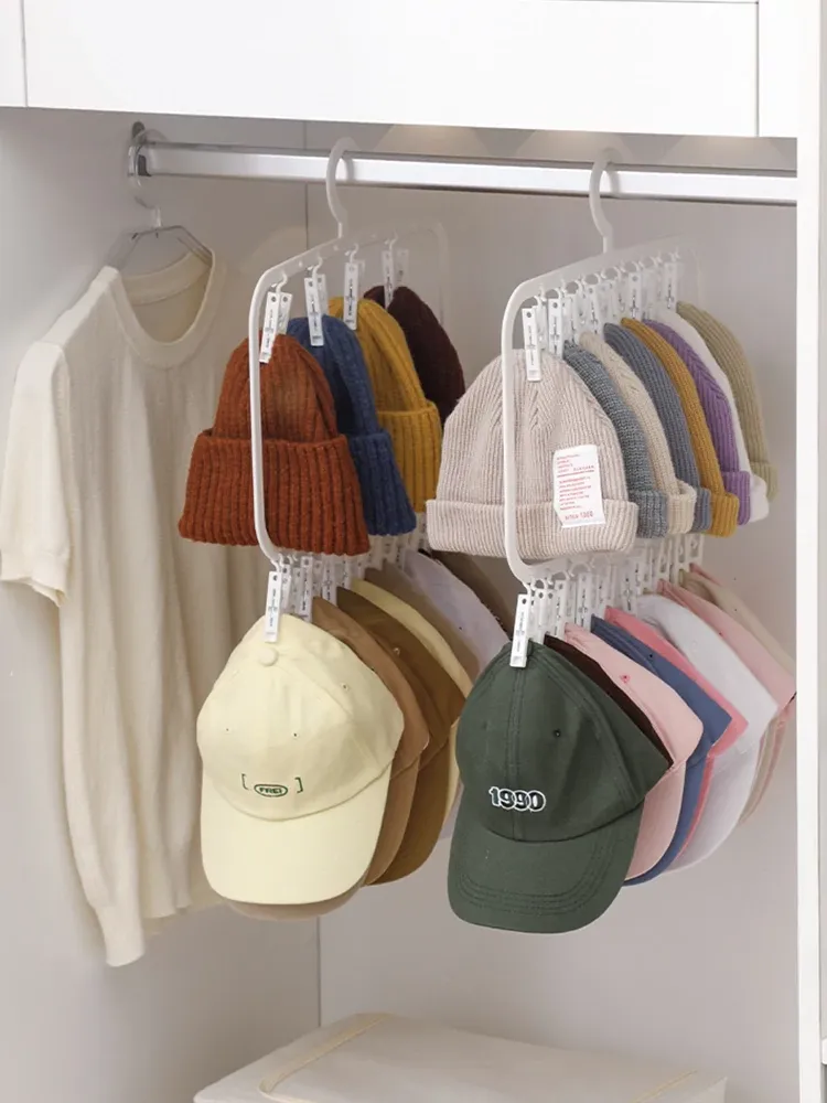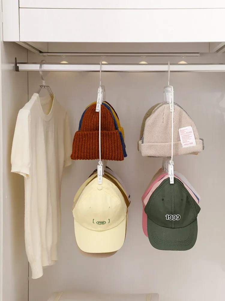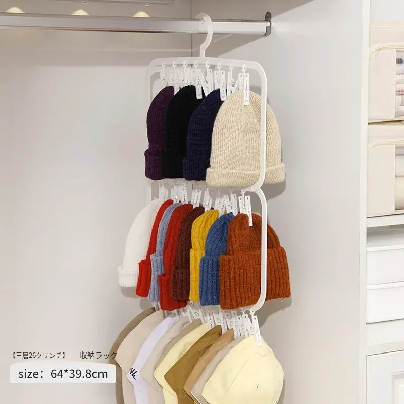 帽子収納の神アイテム!家庭用クローゼットに最適な多機能クリップフック。スカーフやバッグを美しくディスプレイし、整理整頓も簡単。おしゃれで便利な収納ラックで、あなたのスペースをスッキリ!