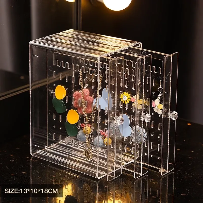 家庭用アクリル製ジュエリーディスプレイスタンド - ネックレス、イヤリング、ピアスを美しく整理・展示!おしゃれな収納ボックスで、あなたのアクセサリーを一目で見つけやすく!