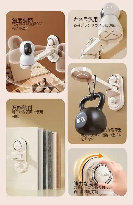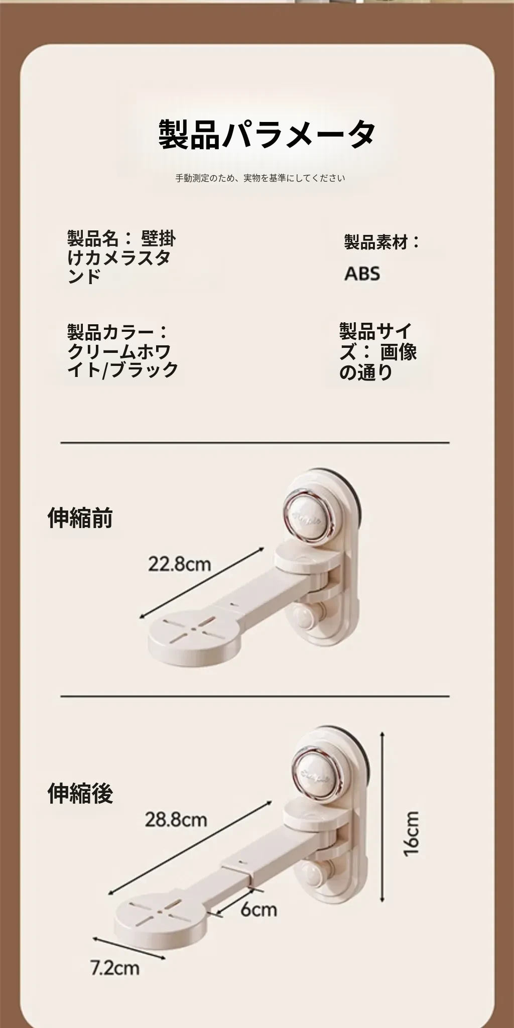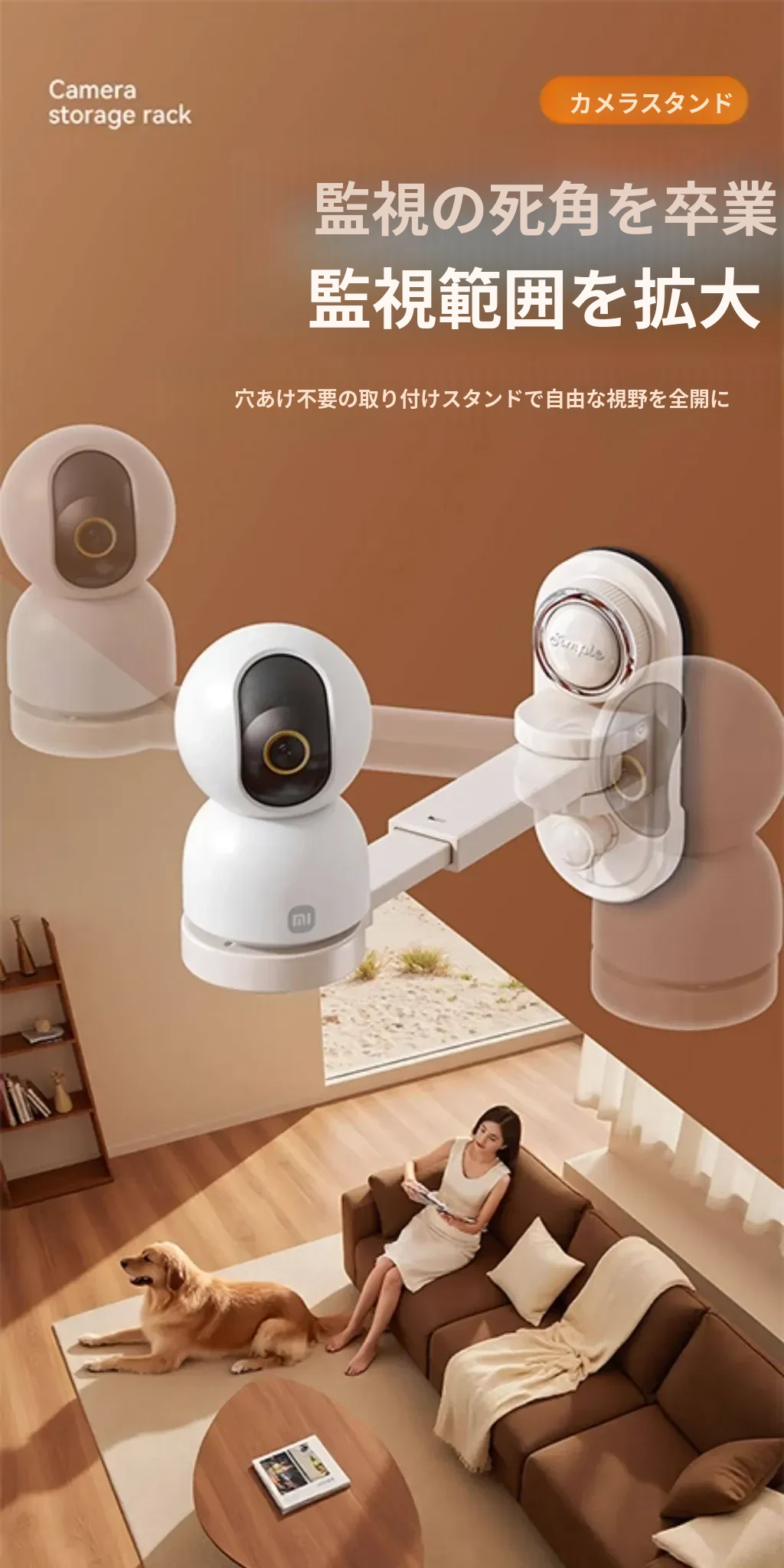 カメラ用室内壁掛けスタンド|穴あけ不要の家庭用モニタリングラック|回転式・伸縮可能で便利な置き台|安全で簡単に設置できる!