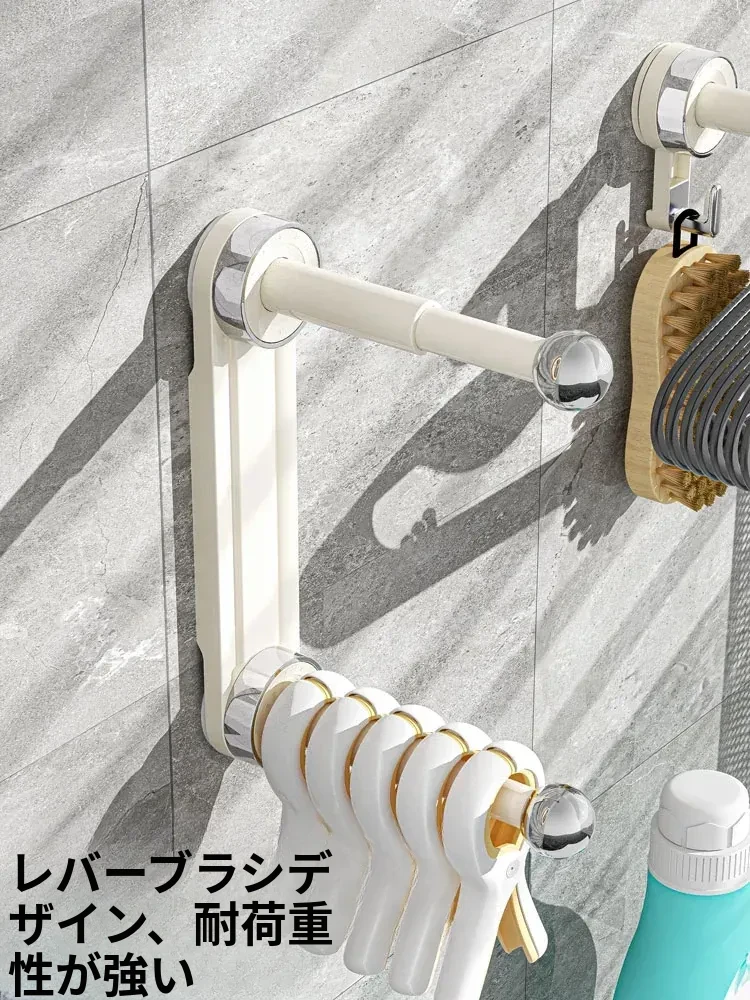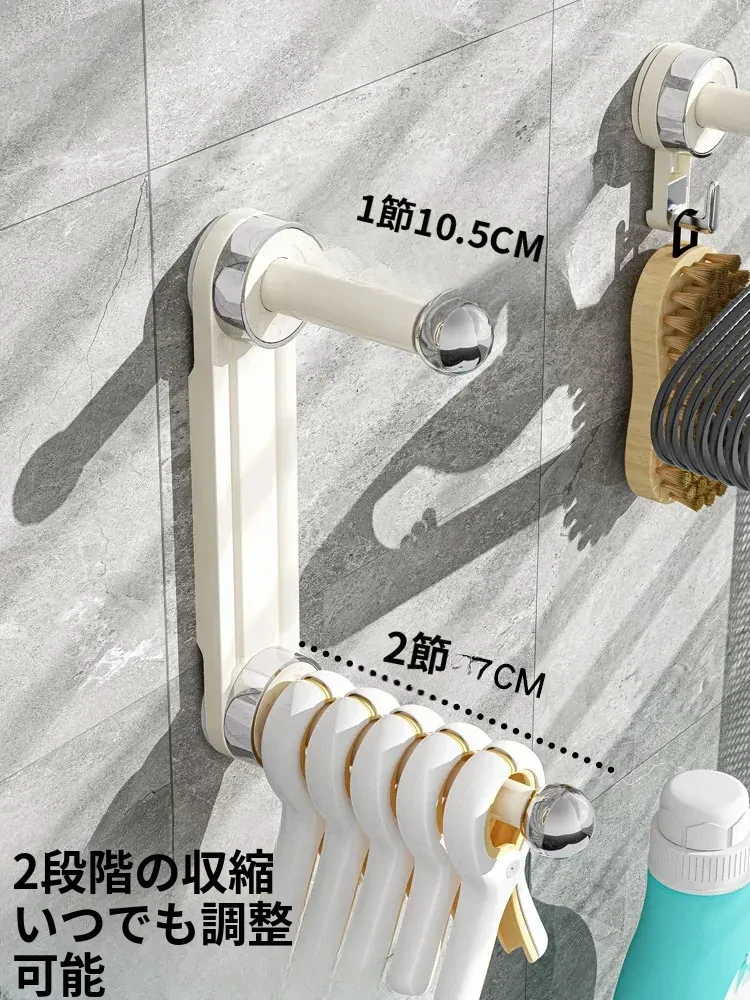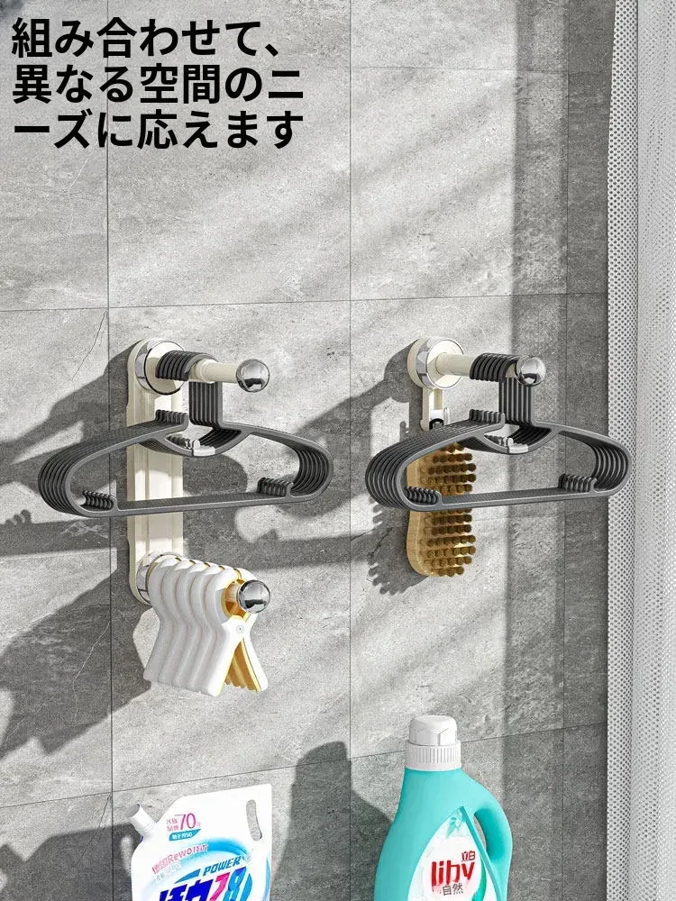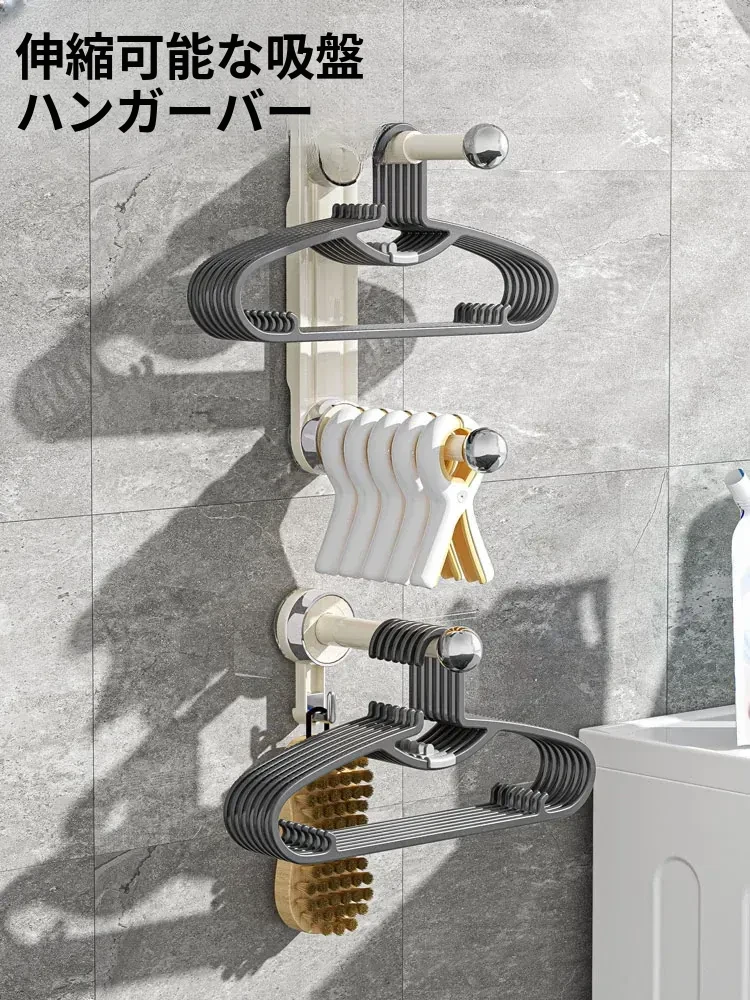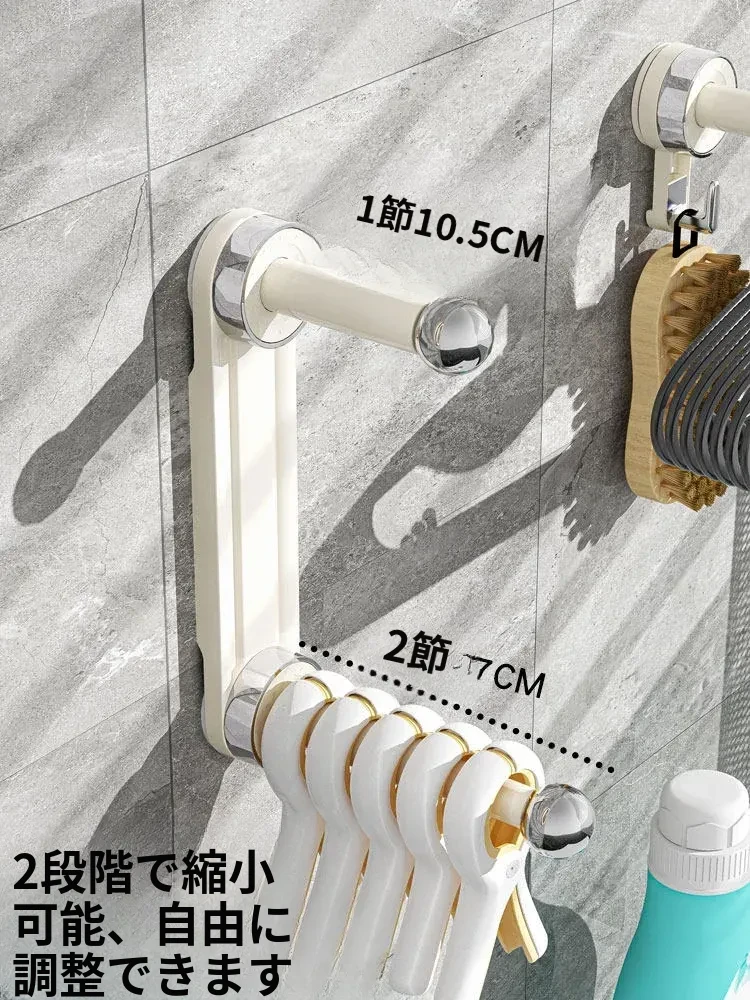 おしゃれで便利!吸盤式で取り付け簡単、穴あけ不要の多機能衣類整理ハンガー。伸縮可能なバルコニー壁掛け物干しで、スッキリお部屋を実現!