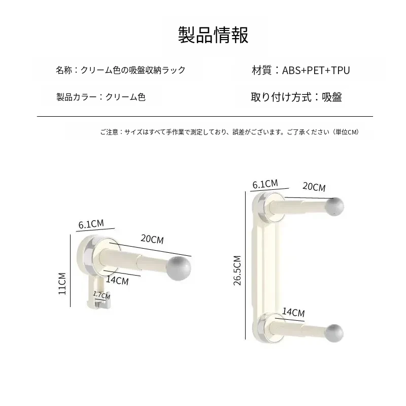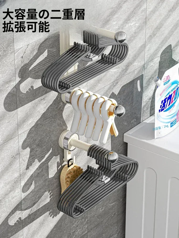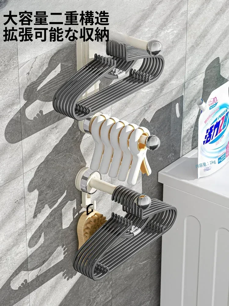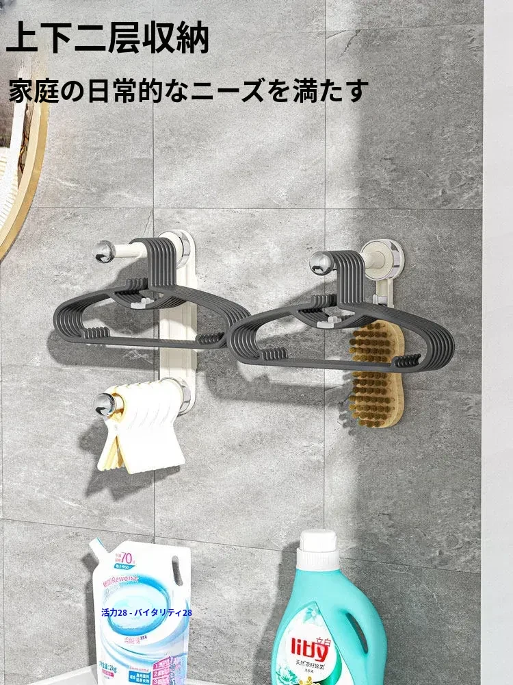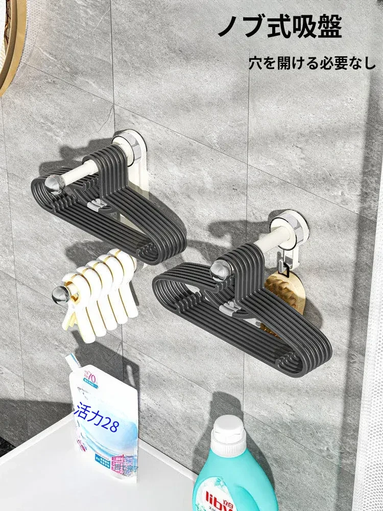 おしゃれで便利!吸盤式で取り付け簡単、穴あけ不要の多機能衣類整理ハンガー。伸縮可能なバルコニー壁掛け物干しで、スッキリお部屋を実現!