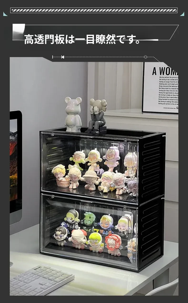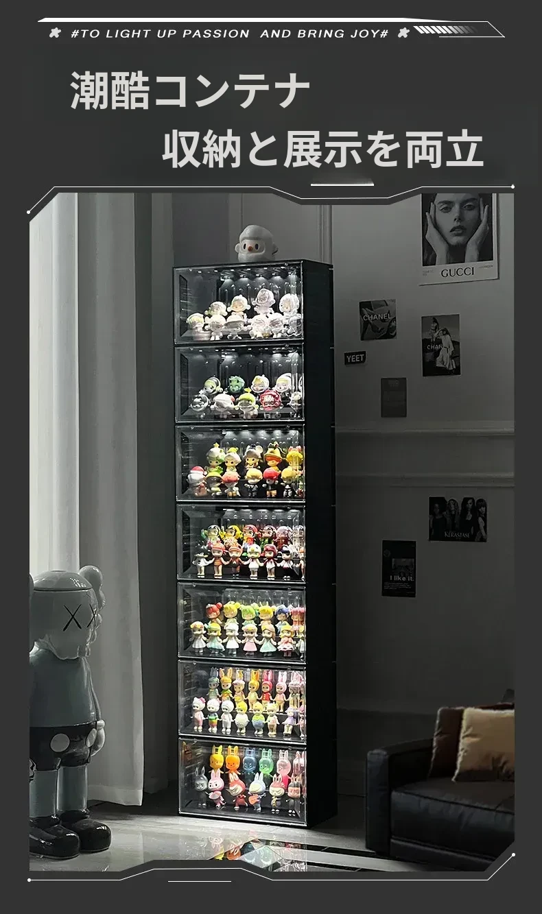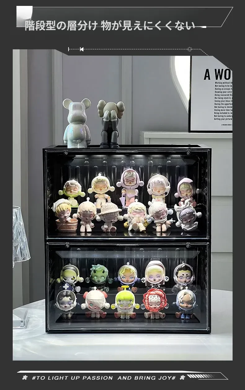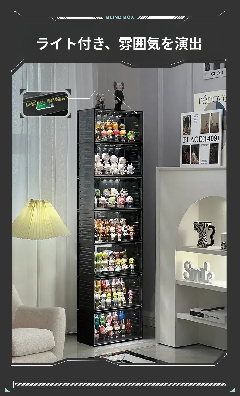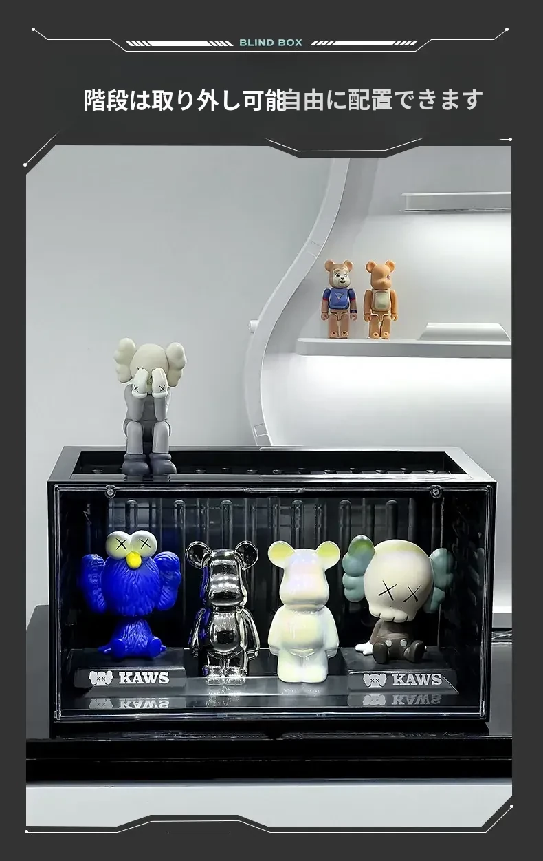 感応発光ブラインドボックスディスプレイスタンド アクリルポップマートコンテナ収納ボックス おしゃれなフィギュアキャビネットで、あなたのコレクションを引き立てます!