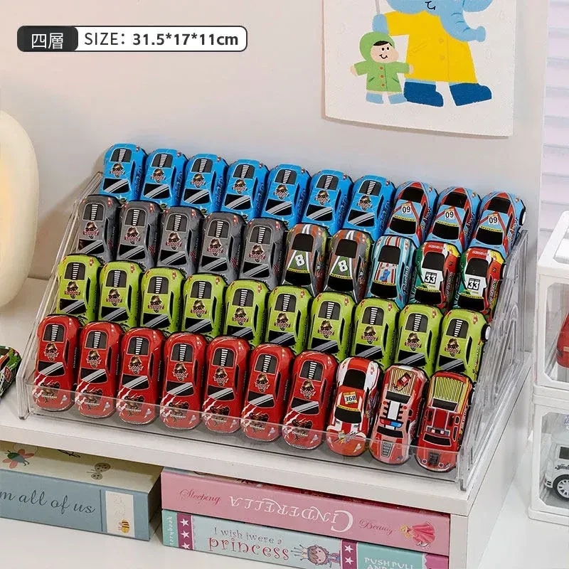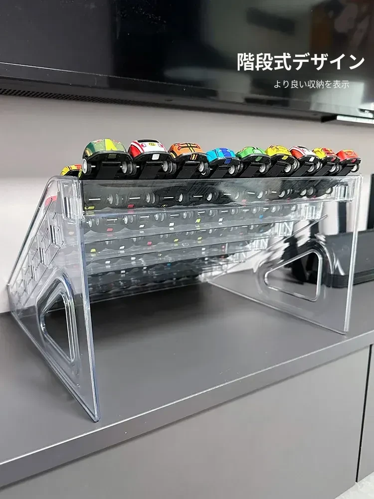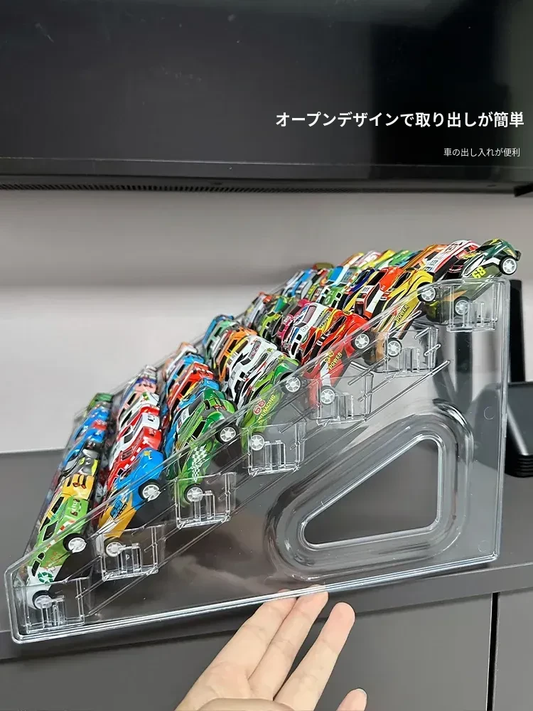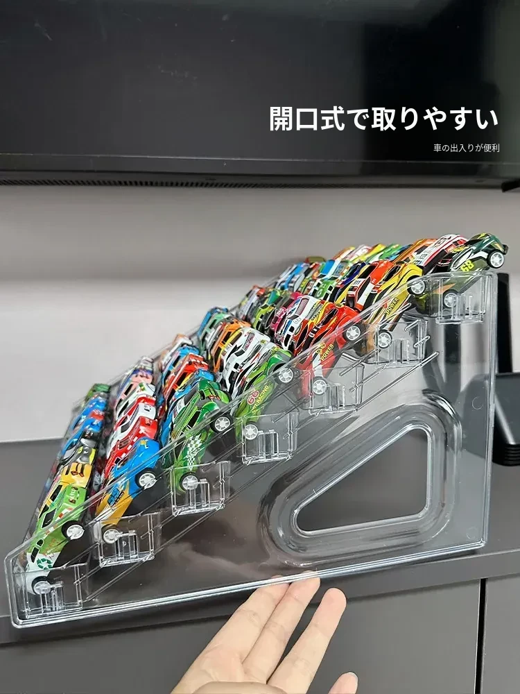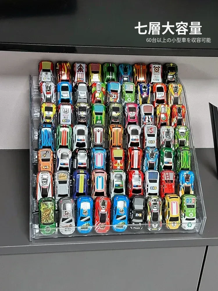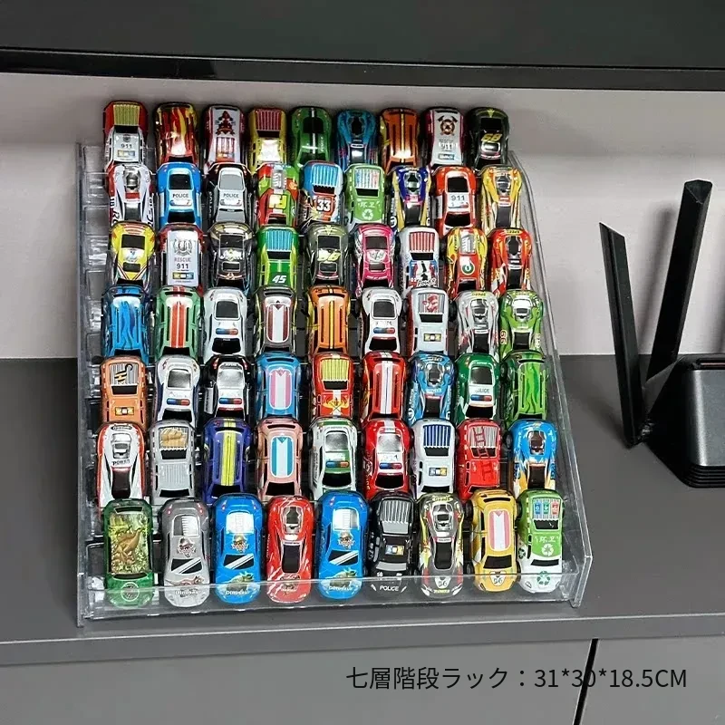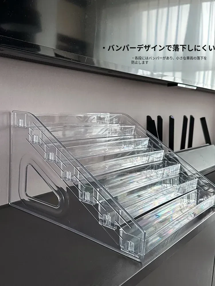 子供向けおもちゃ車ディスプレイラック 1:64 ホットウィール 合金モデルカー収納ボックス アクリル製多層階段式収納で、お部屋をおしゃれに演出!