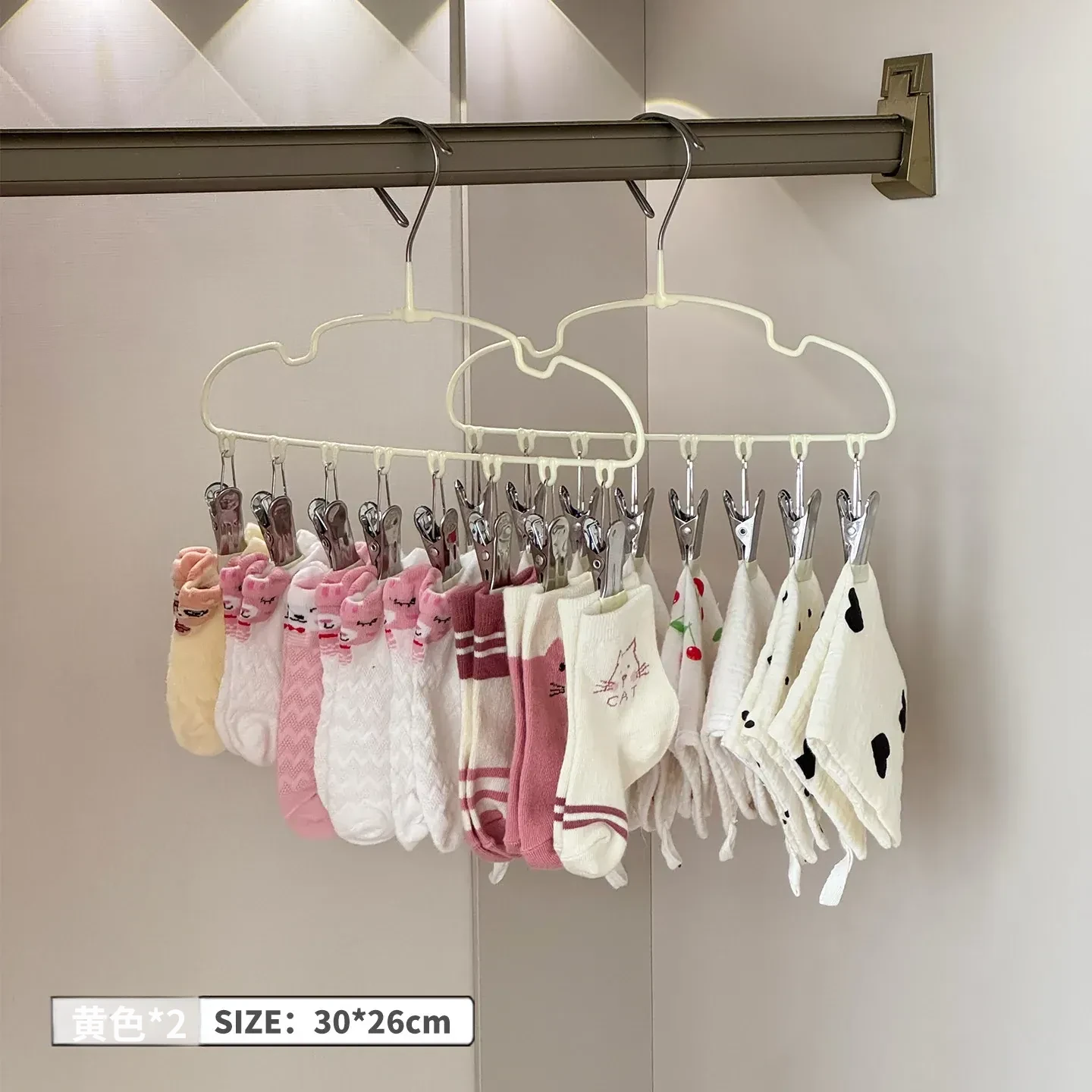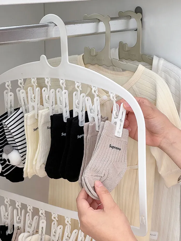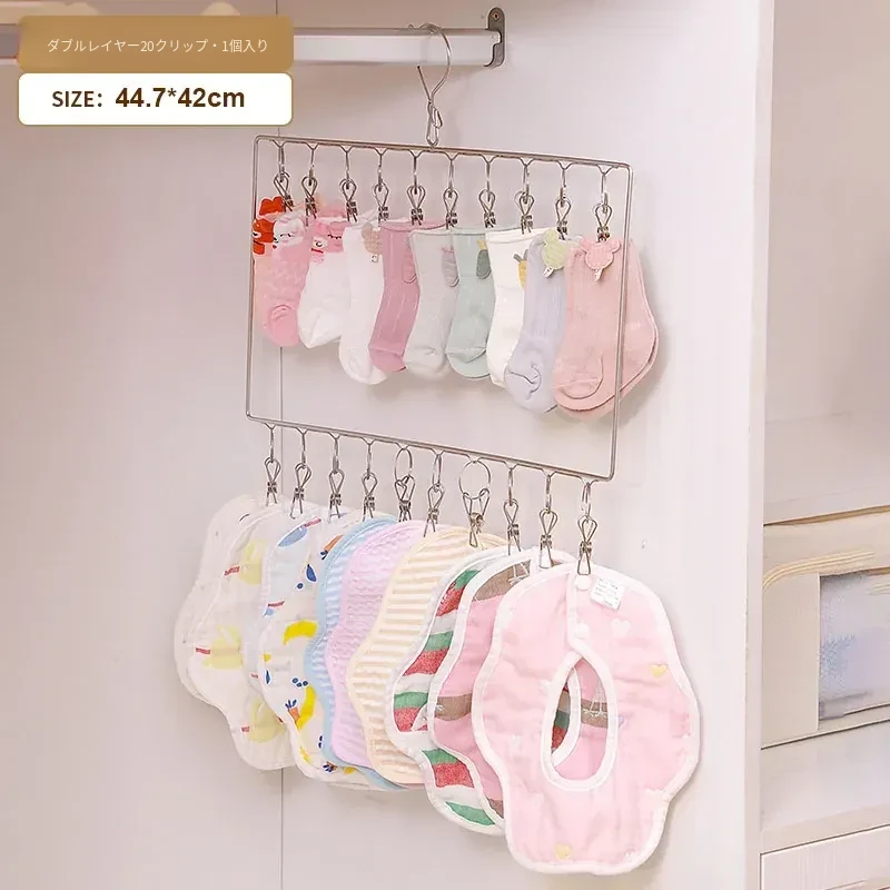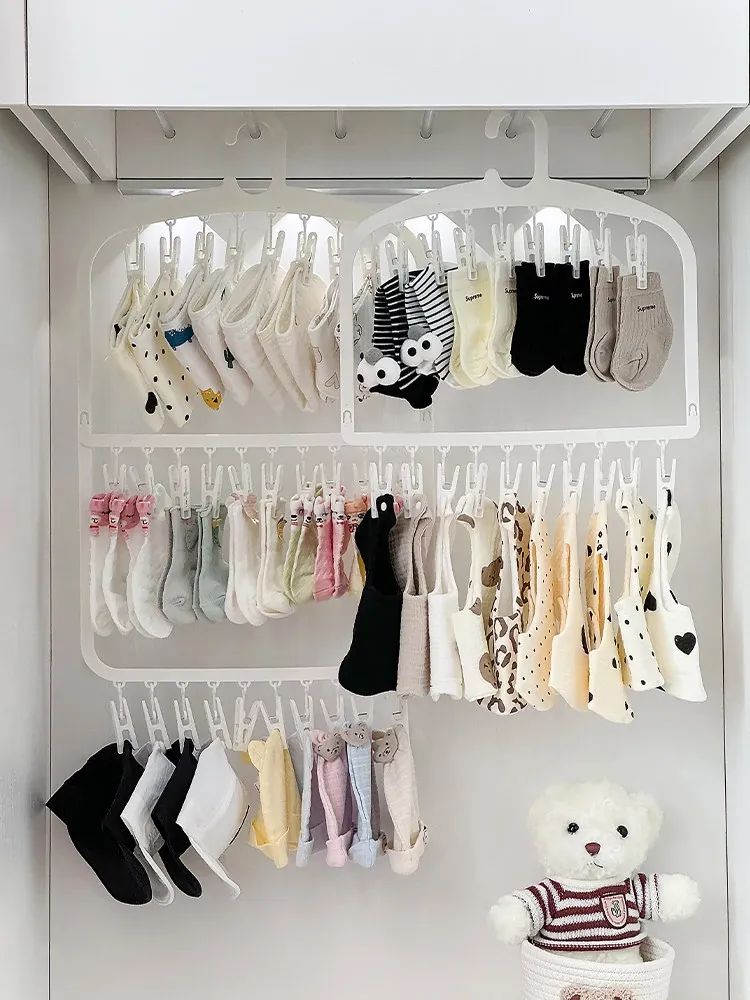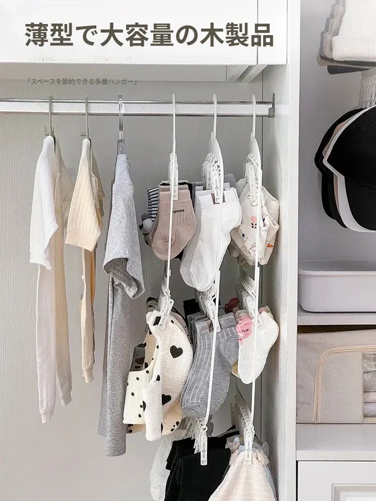 子供服収納の必需品!多機能クリップ付きベビー衣類ハンガー - おむつ、靴下、スタイ、帽子を一括収納!お部屋をスッキリ整理整頓し、育児をもっと楽に!