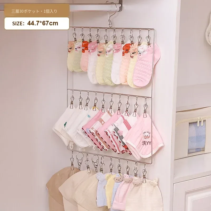 【アップグレード版-三層28クリップ】収納干し一体型ラック·WG-2633