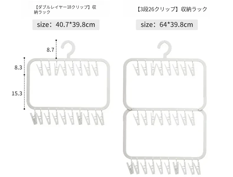 【二層18クリップ】収納干し一体型ラック·WG-2842
