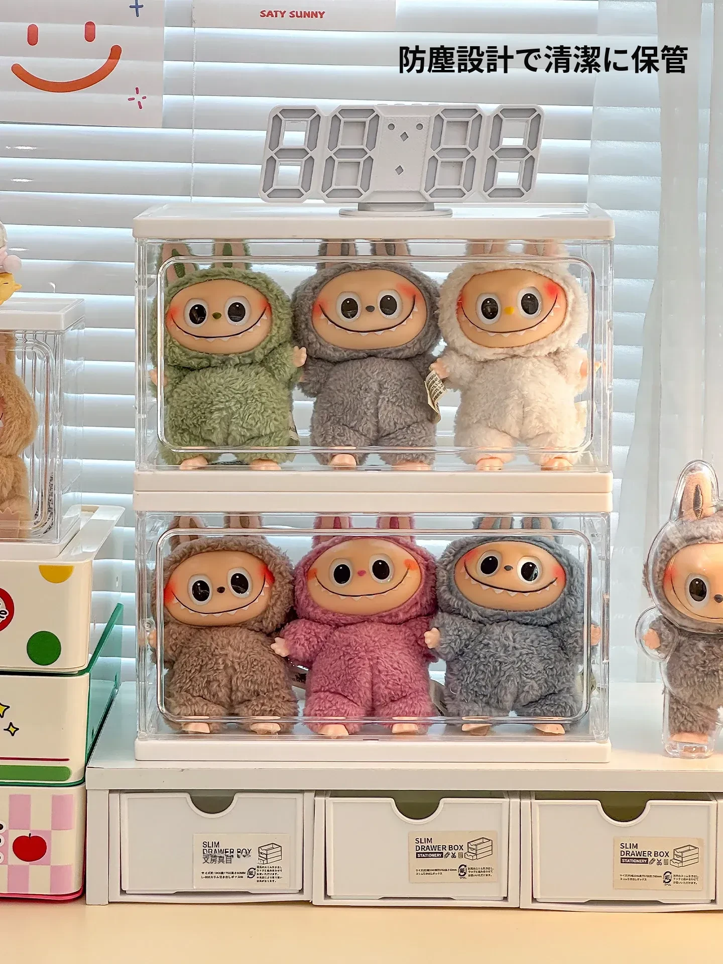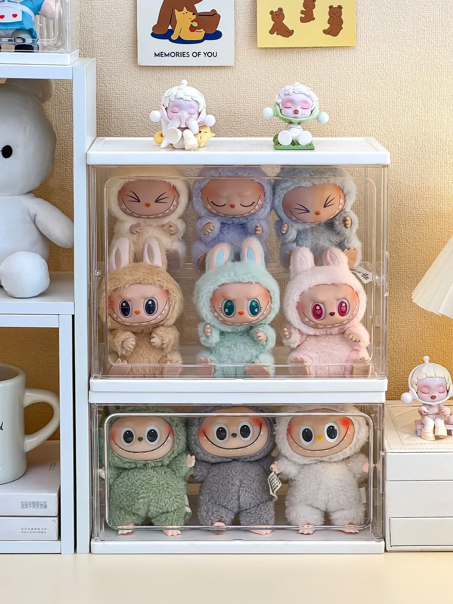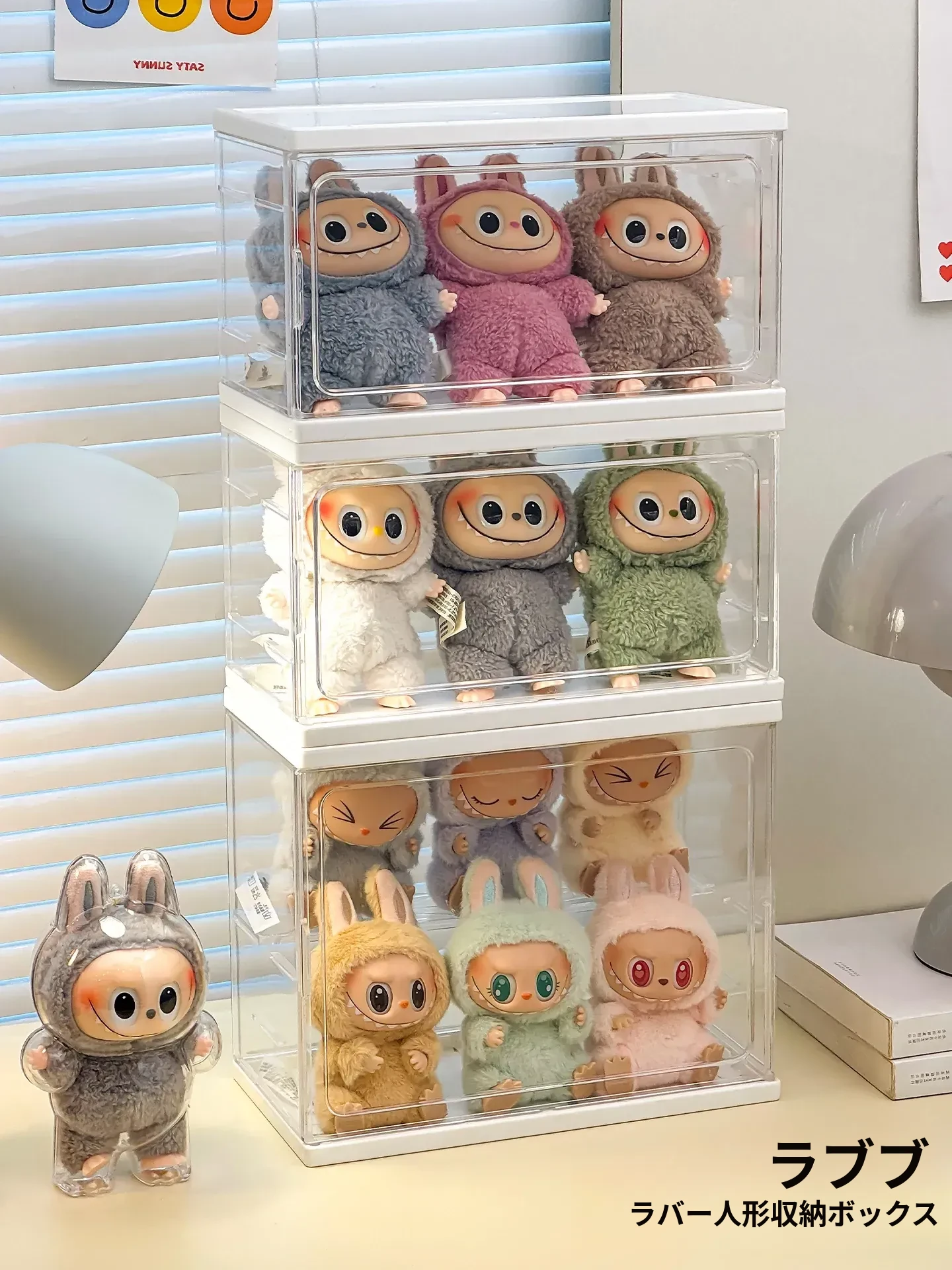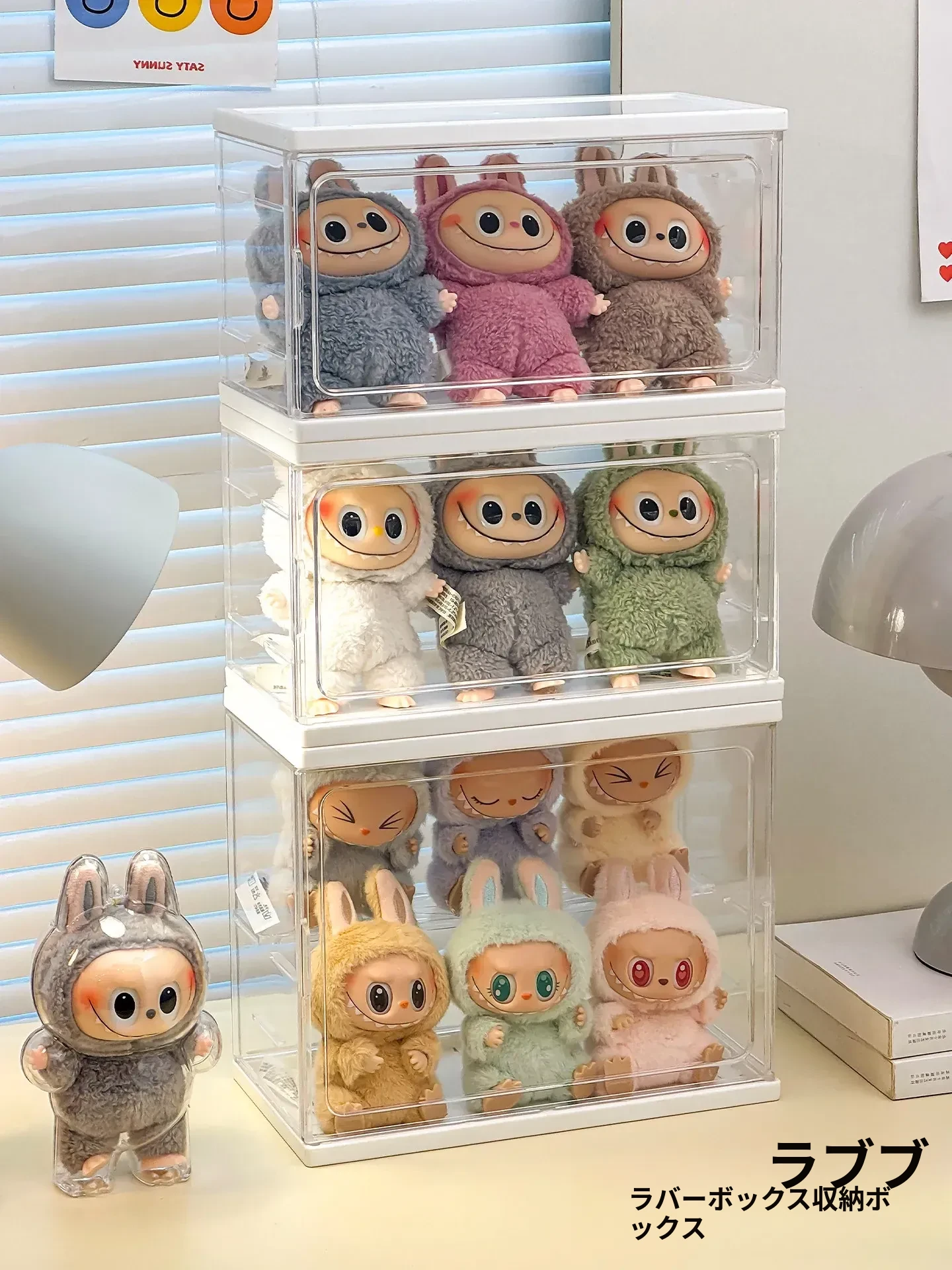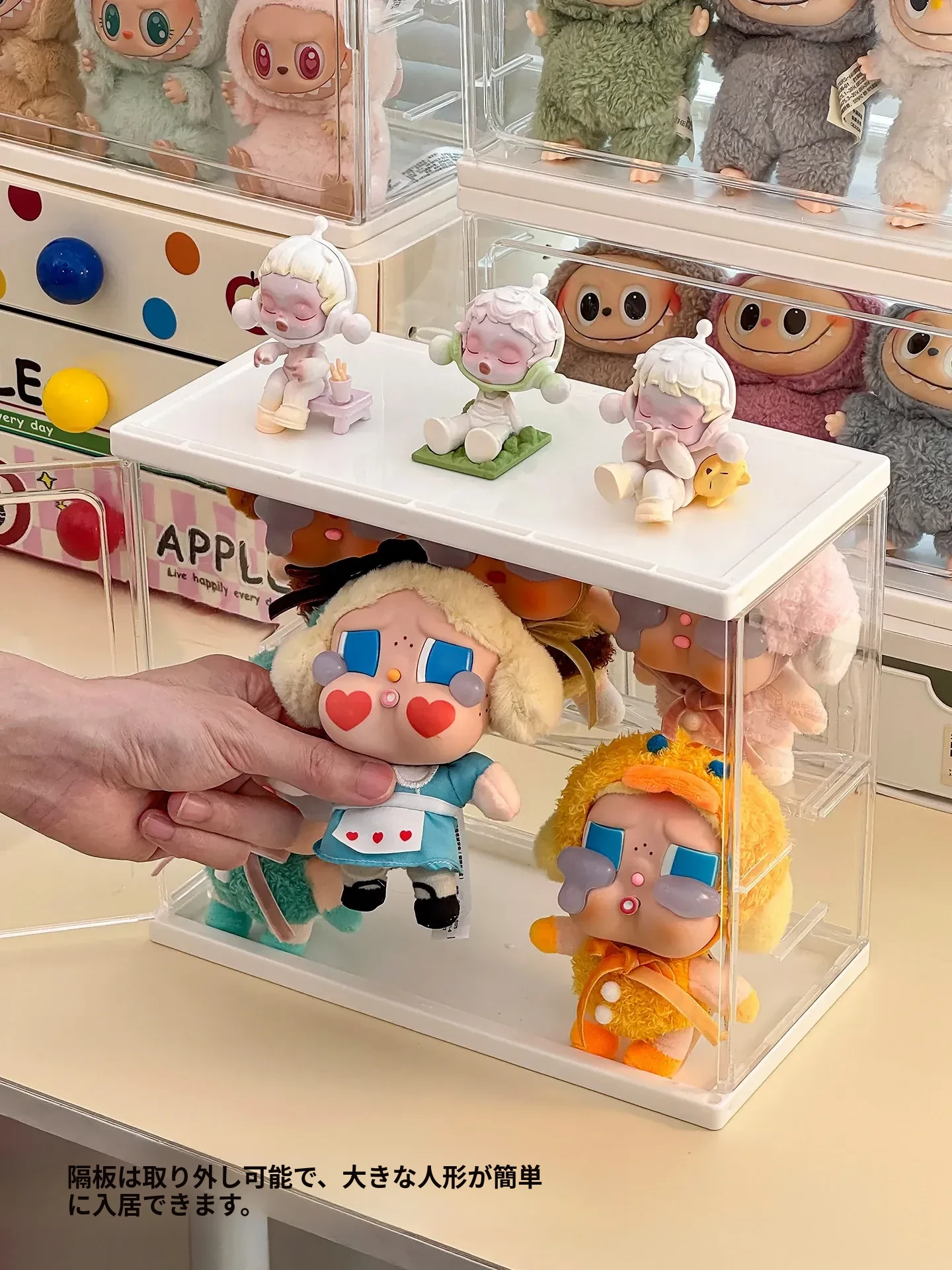 ラブブ展示ボックス 泡泡マット Crybaby泣き顔人形収納ボックス 涙工場ラバードールディスプレイラック!可愛いアイテムをスッキリ整理して、お部屋をおしゃれに演出!
