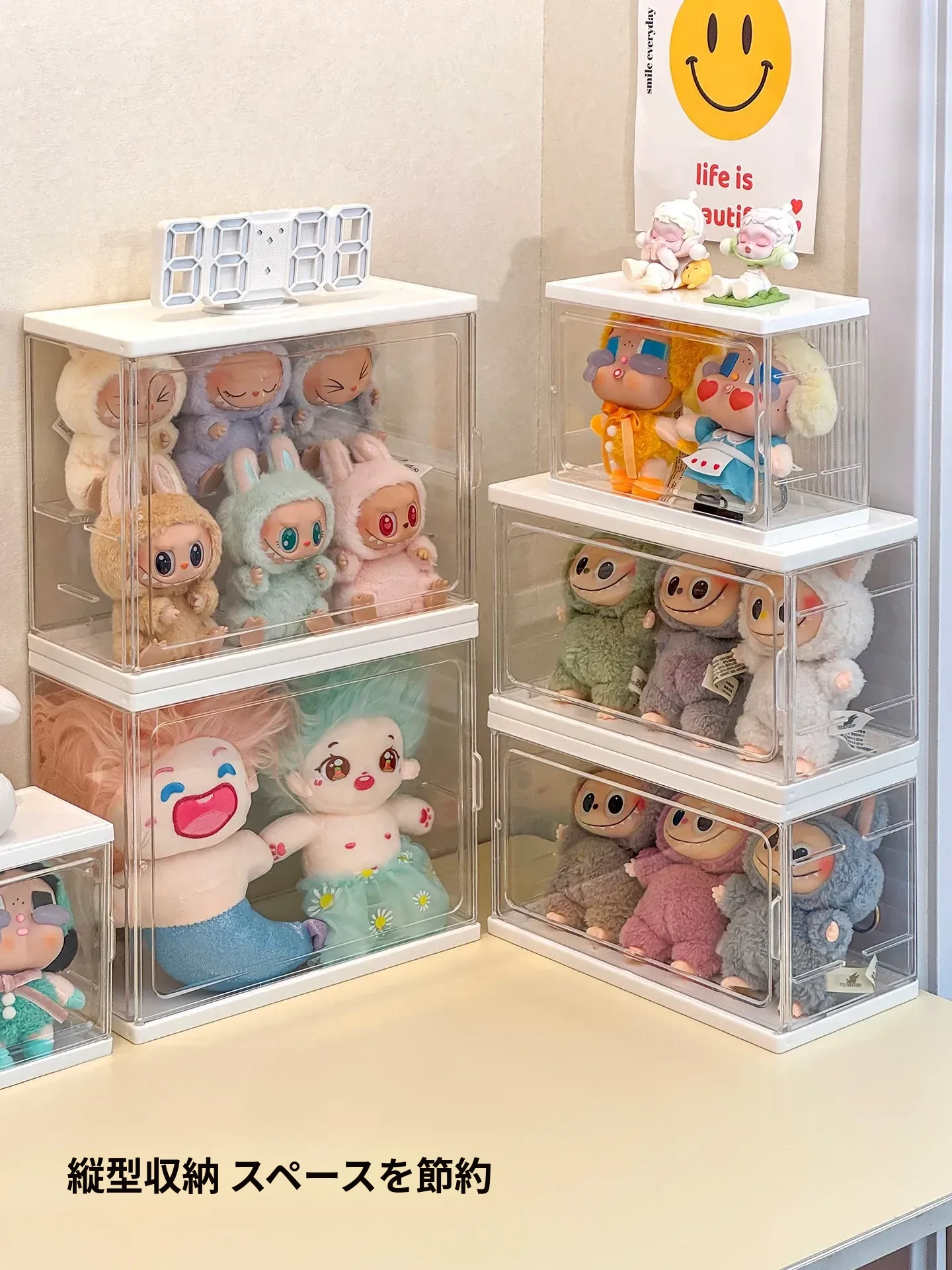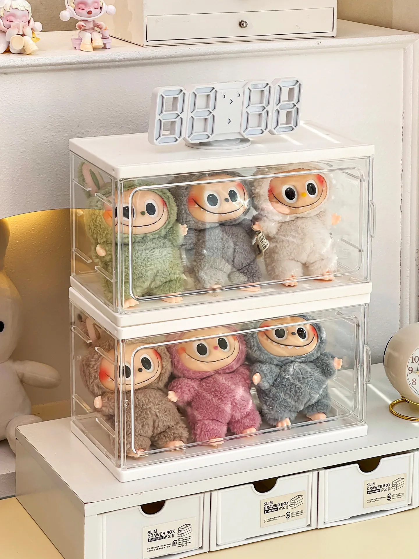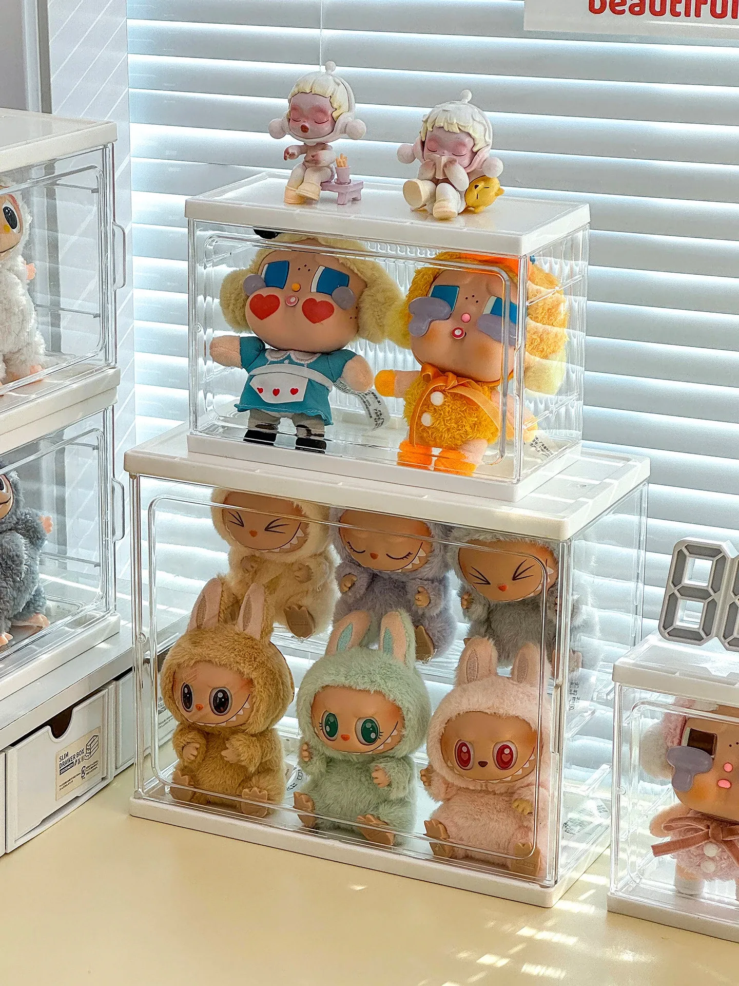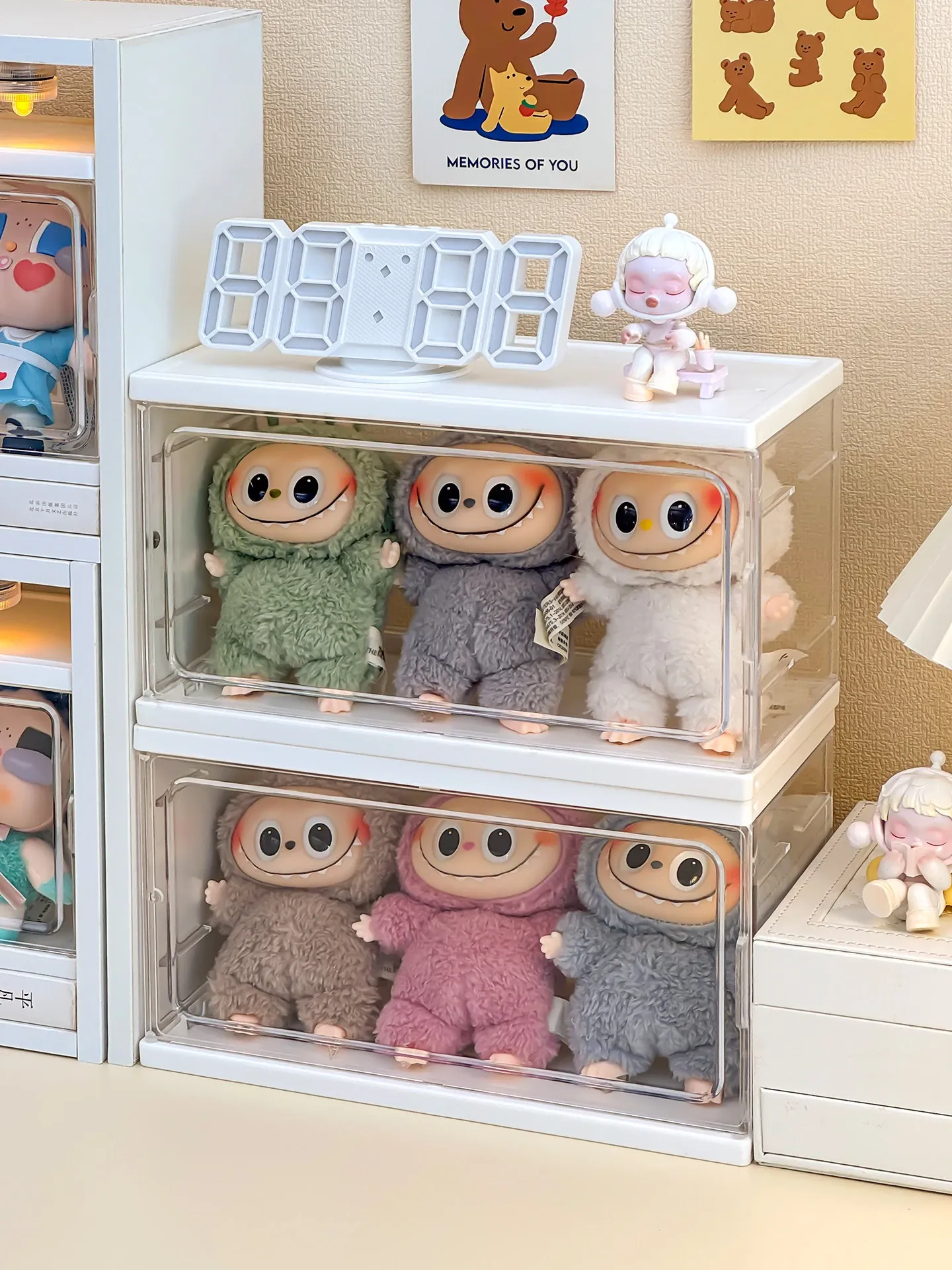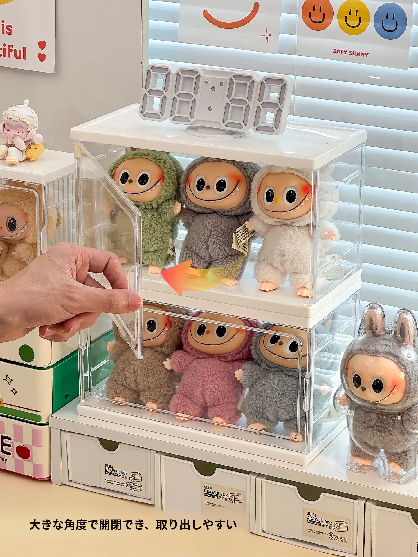 ラブブ展示ボックス 泡泡マット Crybaby泣き顔人形収納ボックス 涙工場ラバードールディスプレイラック!可愛いアイテムをスッキリ整理して、お部屋をおしゃれに演出!
