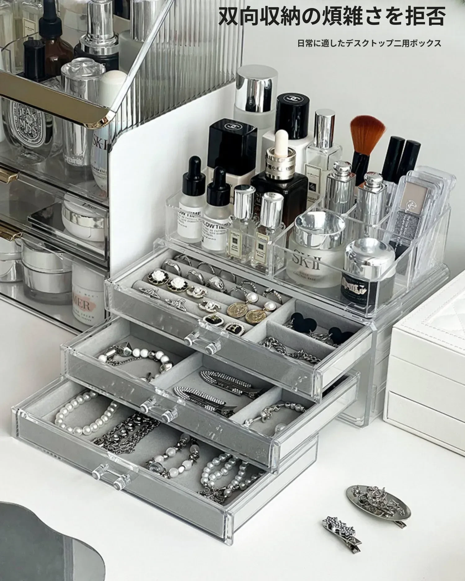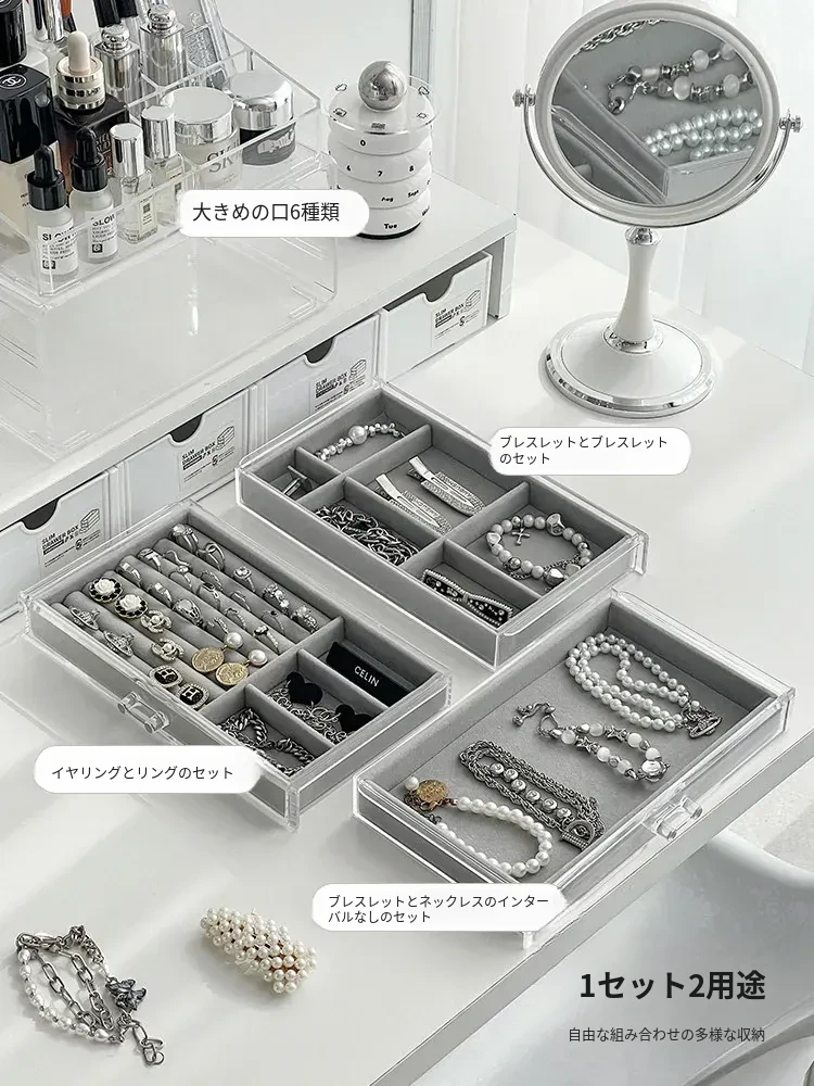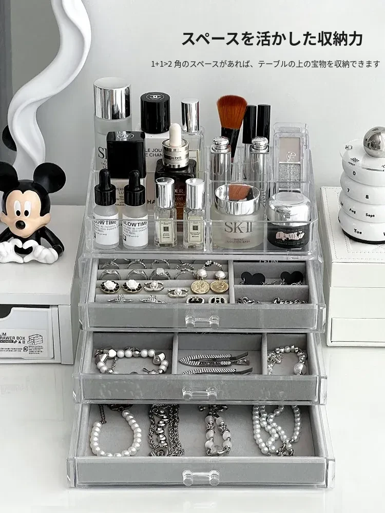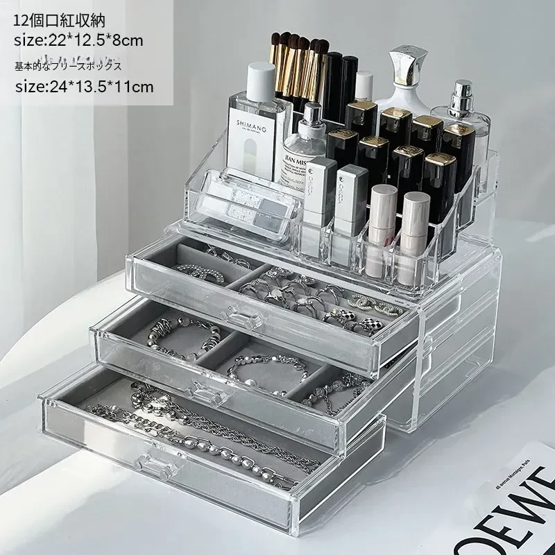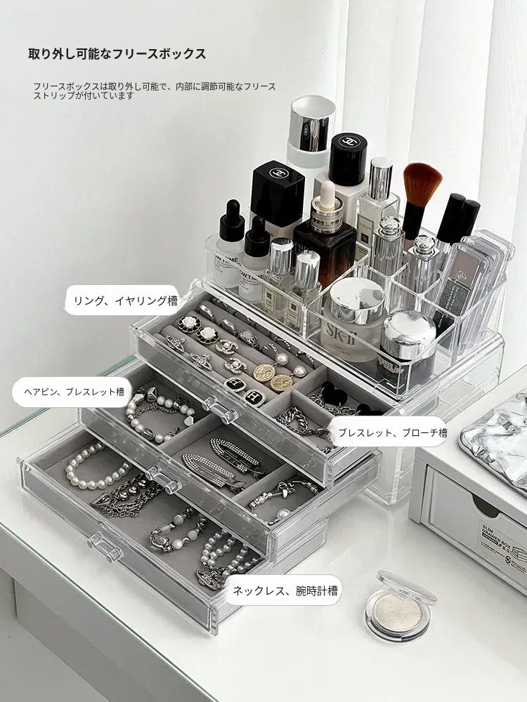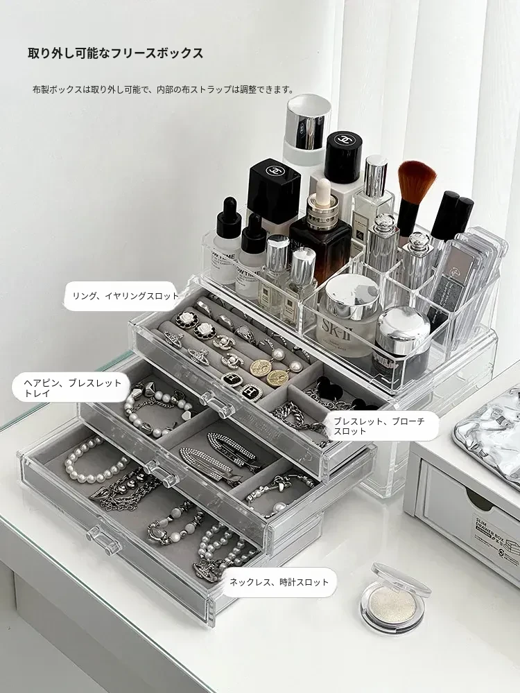 アクリルジュエリーボックス - 耳飾りや口紅、化粧品を美しく整理!大容量で時計やピアスもすっきり収納。インスタ映えするおしゃれなディスプレイラック!あなたのアクセサリーを華やかに演出します。