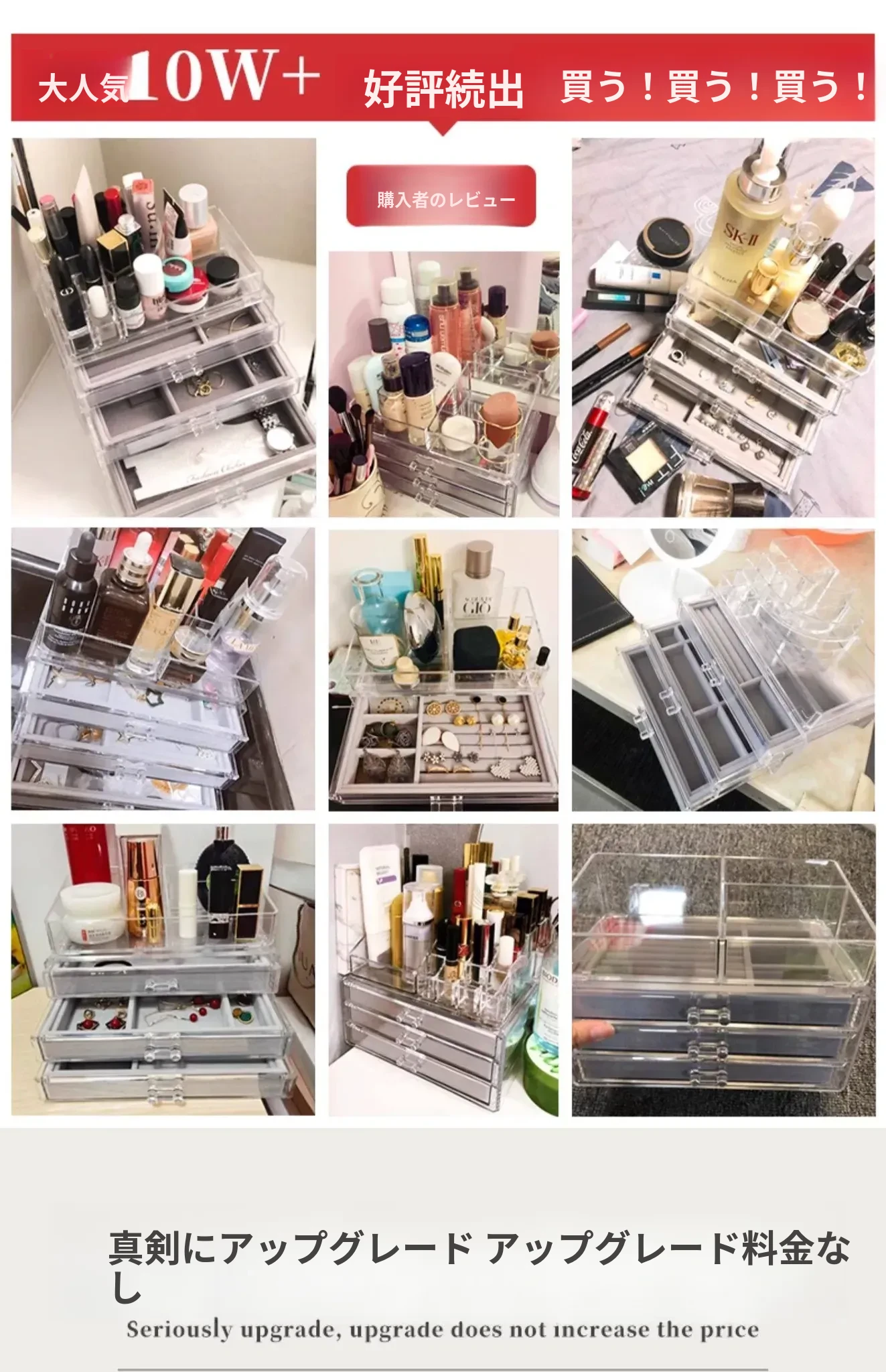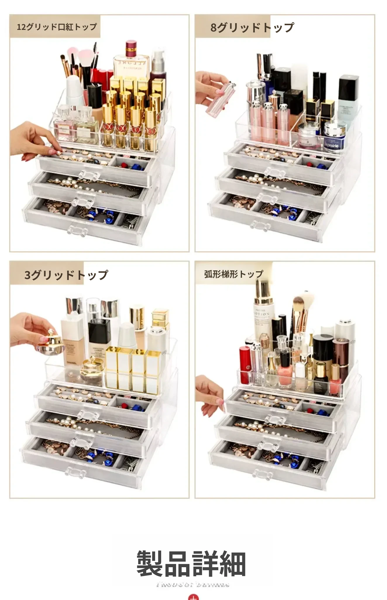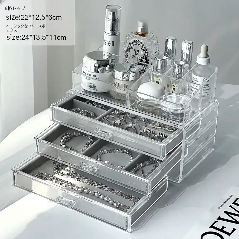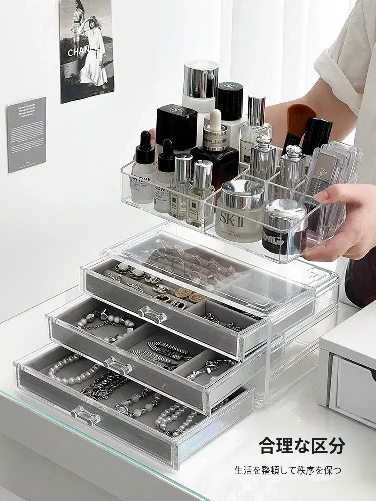 アクリルジュエリーボックス - 耳飾りや口紅、化粧品を美しく整理!大容量で時計やピアスもすっきり収納。インスタ映えするおしゃれなディスプレイラック!あなたのアクセサリーを華やかに演出します。