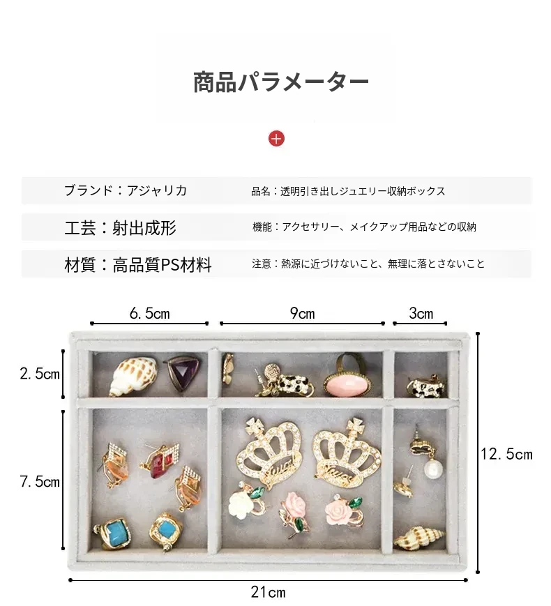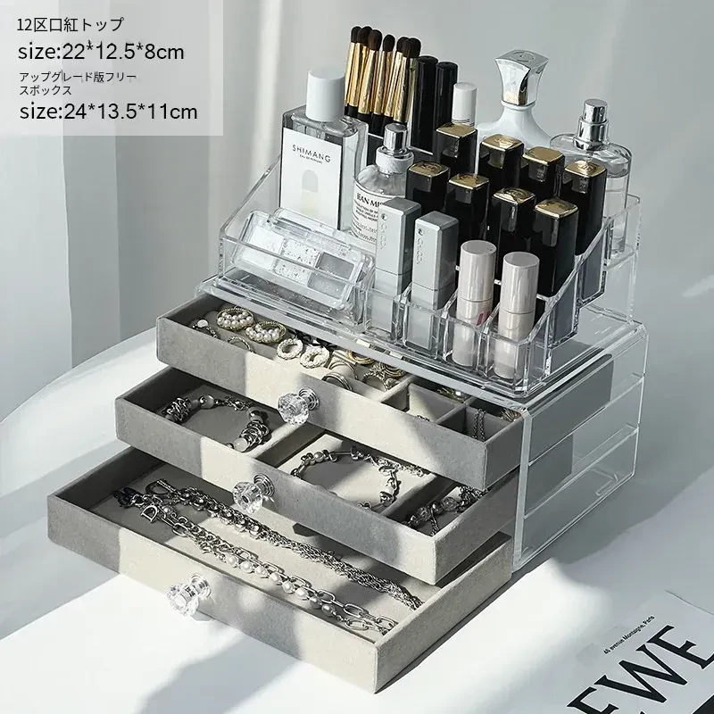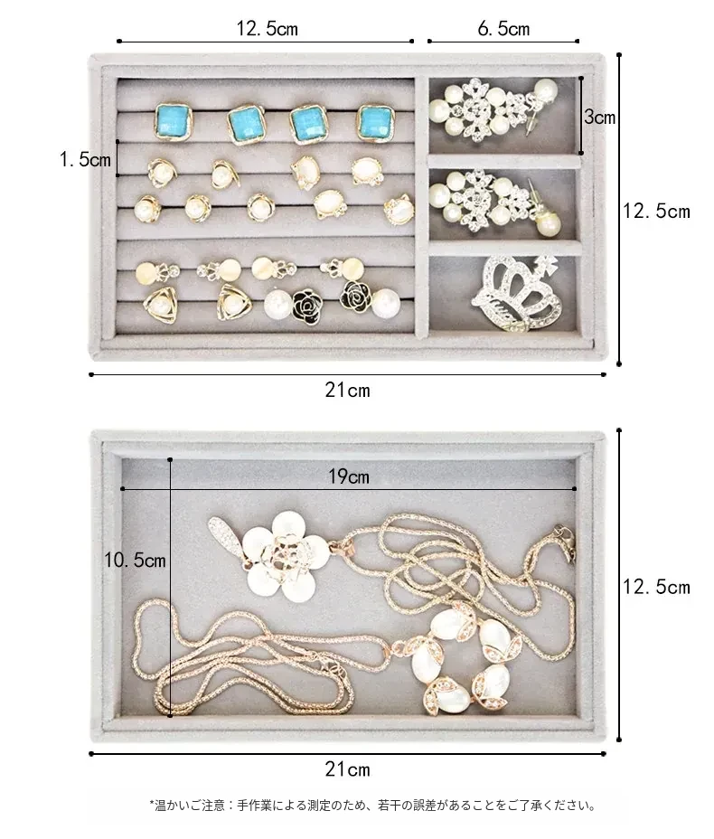 【大きなリングを簡単に収納-高くて大きいフロッキープレート】12格口紅トップ+三層ジュエリーボックス