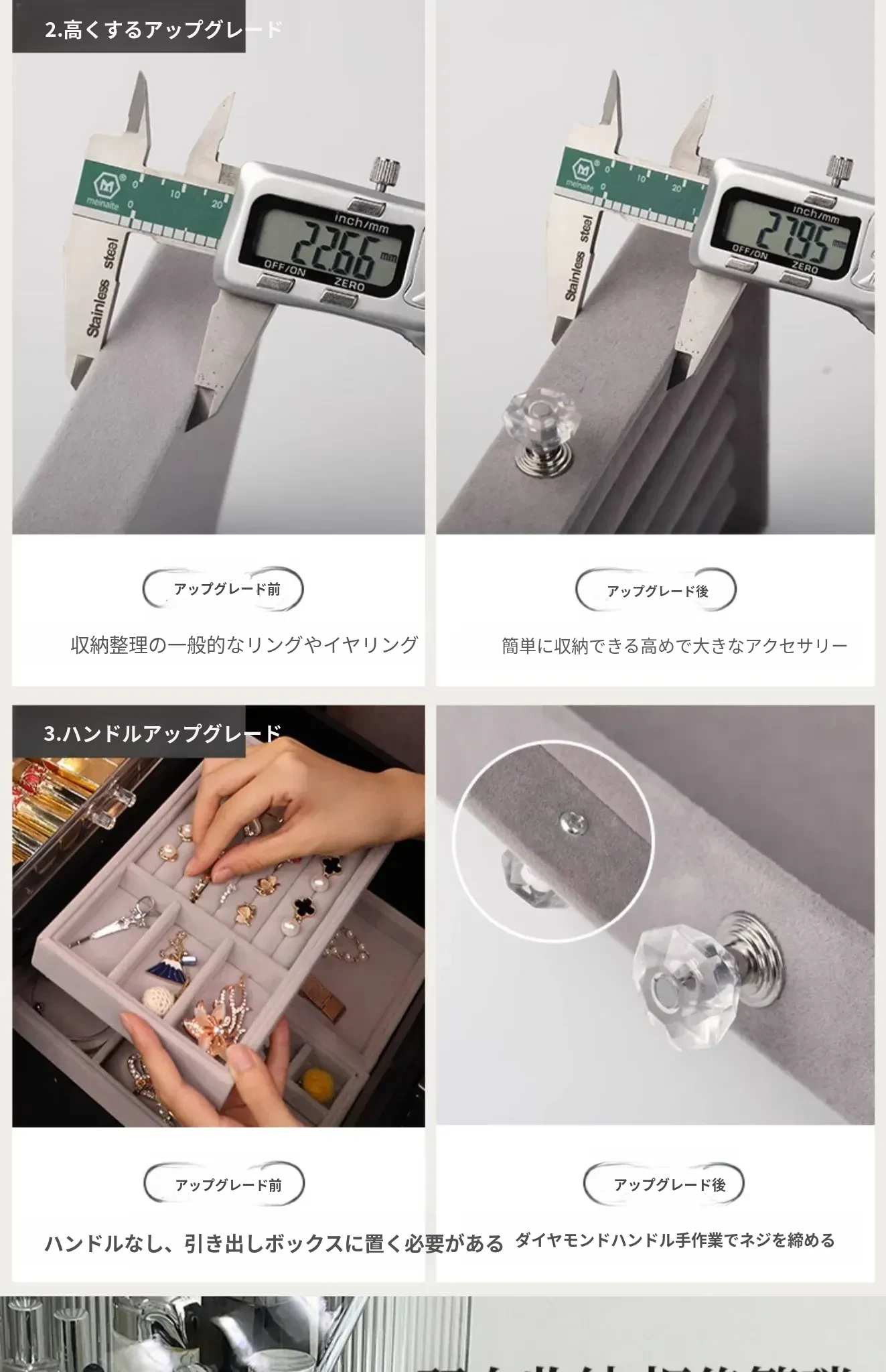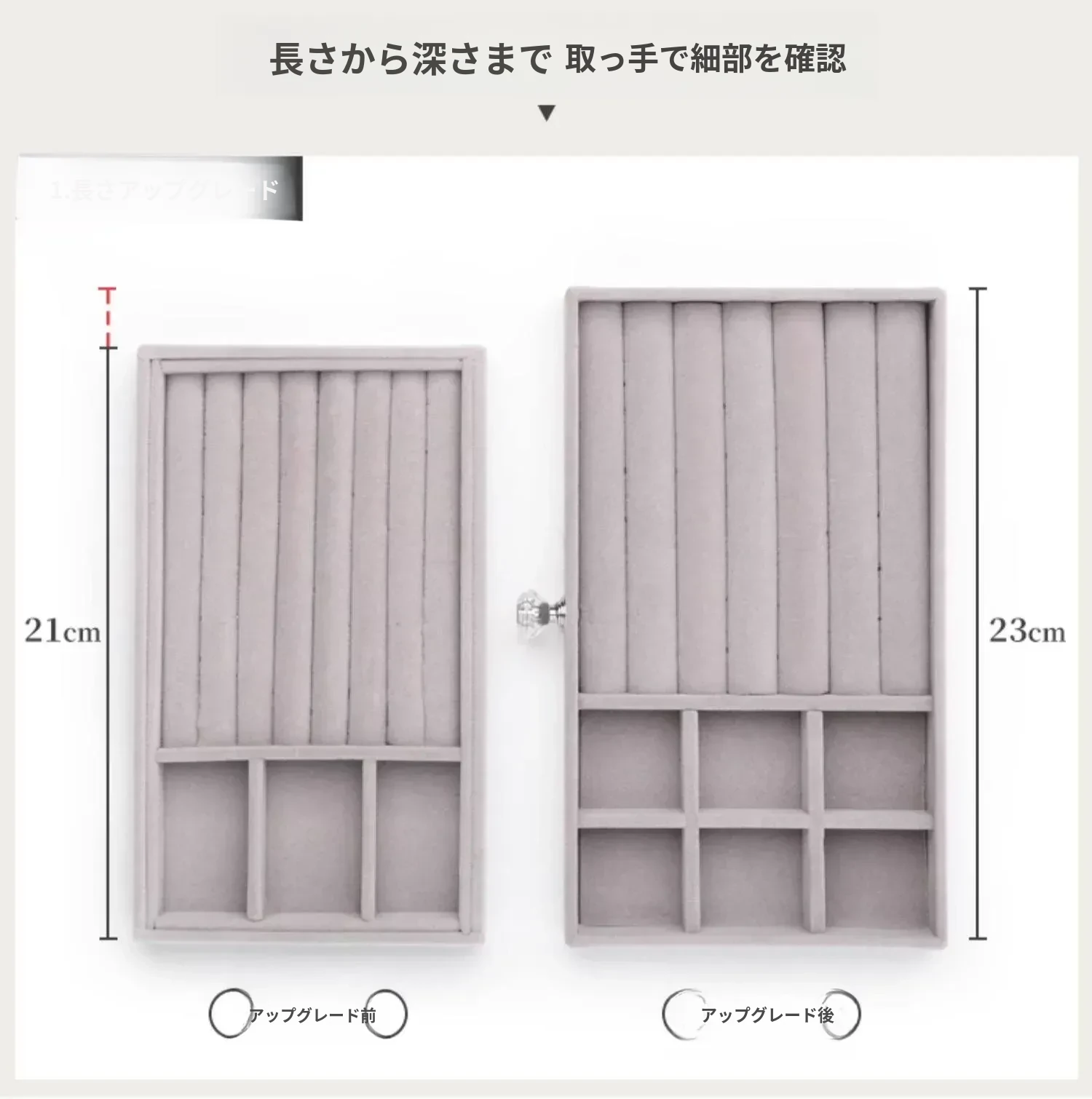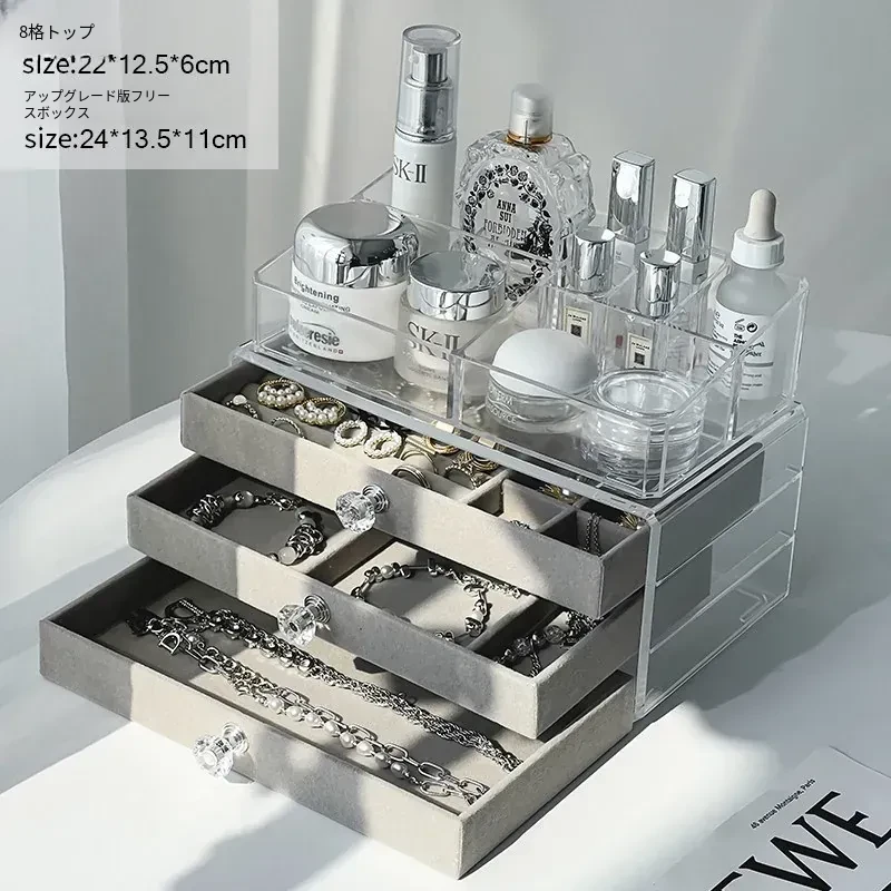 【同じサイズでより大きな容量-高くて大きいフロッキープレート】8格トップ+三層ジュエリーボックス