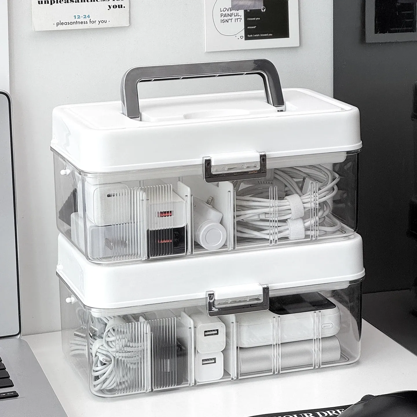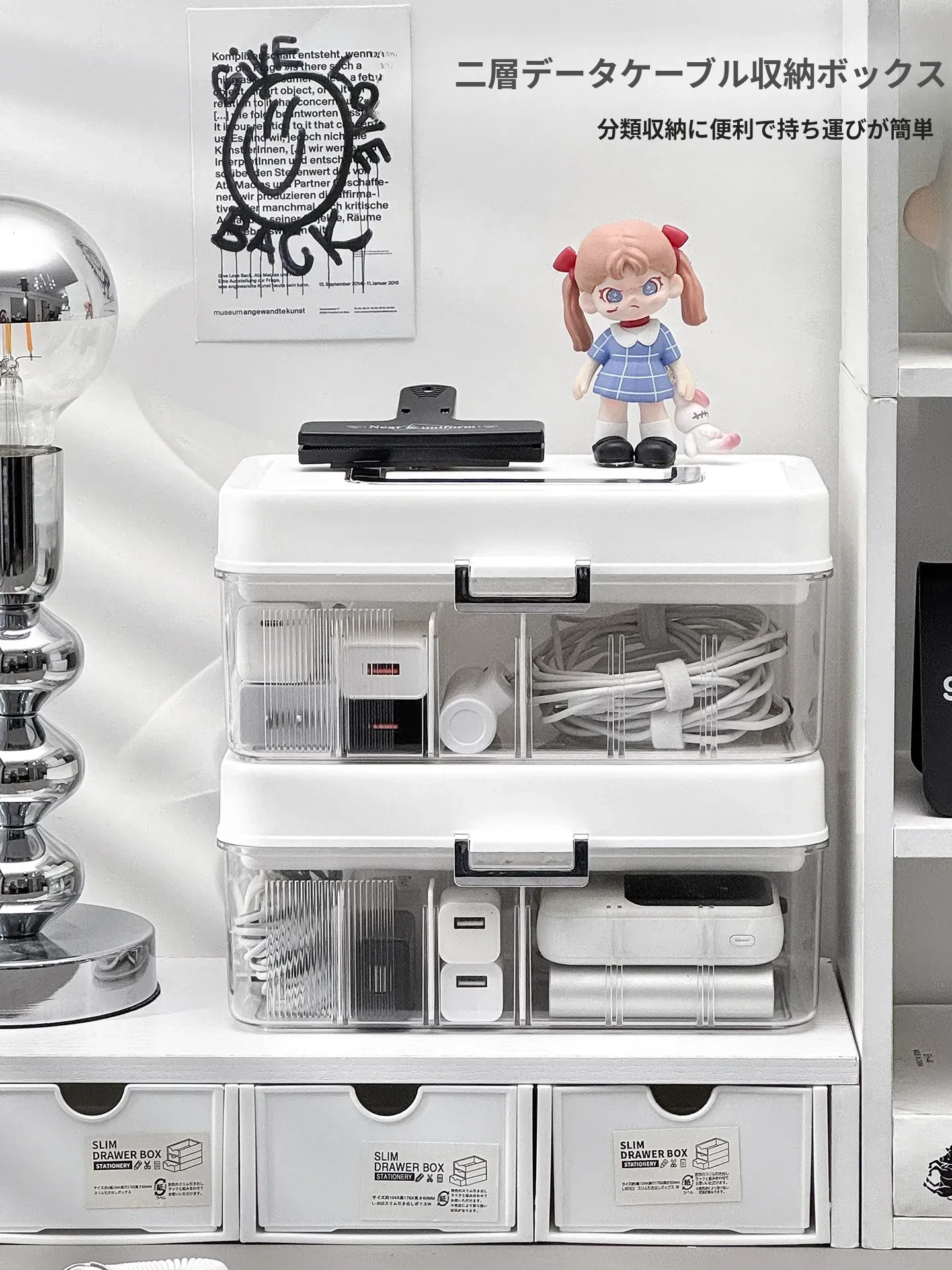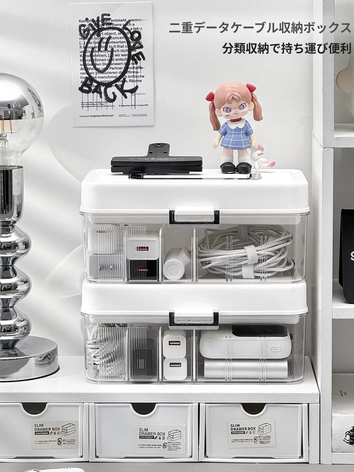 【2つ装-クリンチ開閉/仕切り取り外し可能】蓋付きデータケーブル収納ボックス SF0440WW