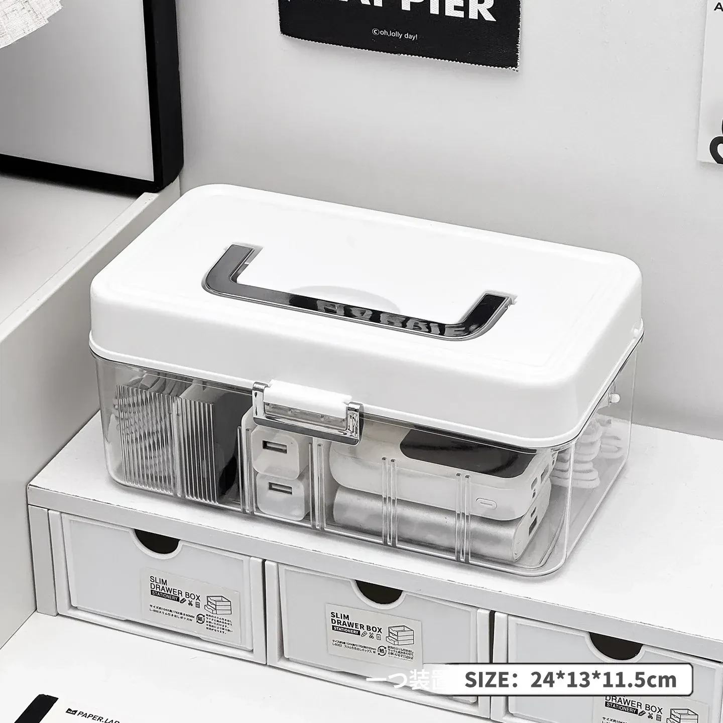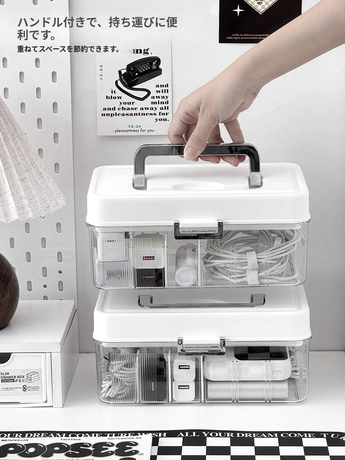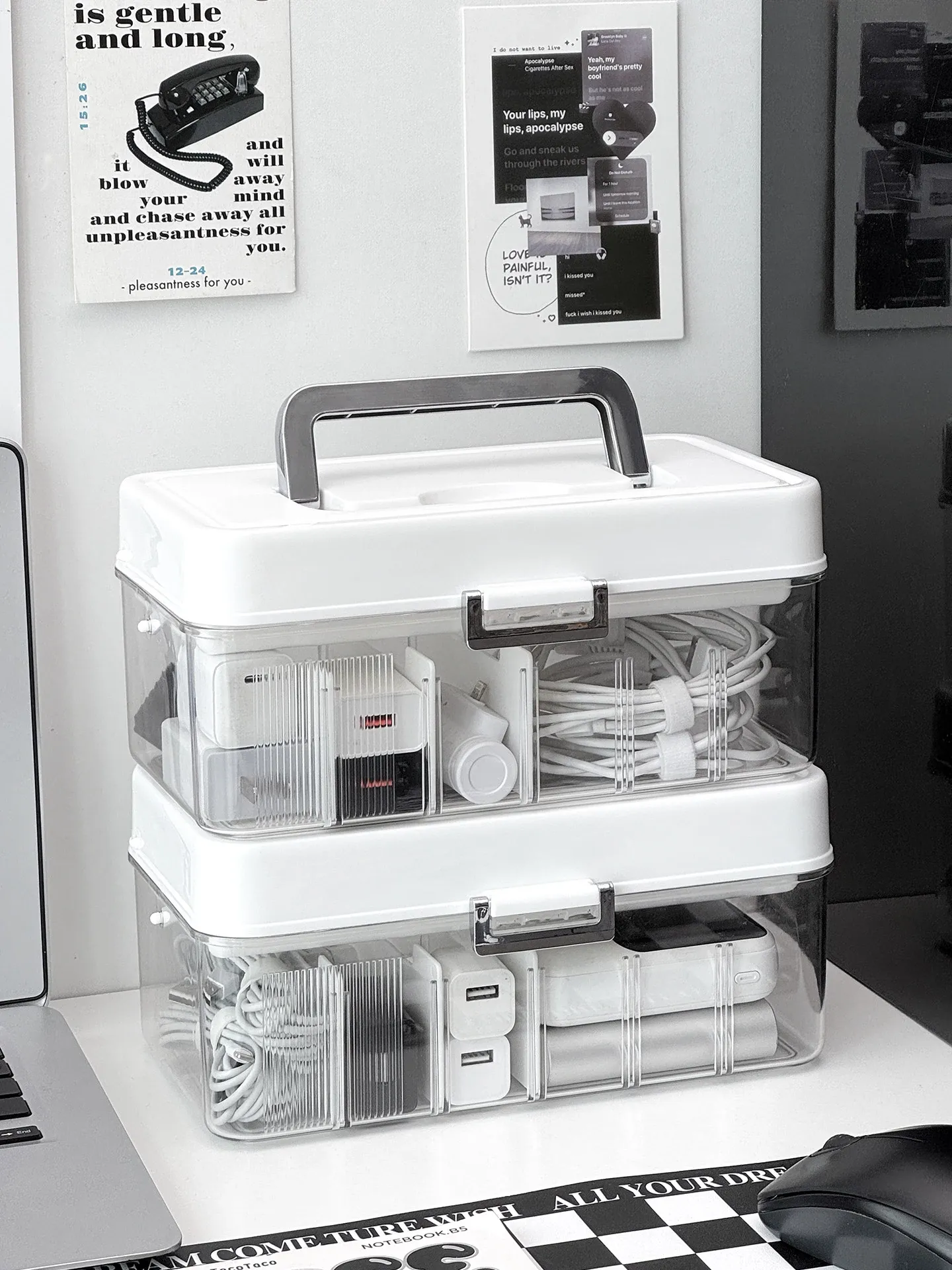 【2つ装-クリンチ開閉/仕切り取り外し可能】蓋付きデータケーブル収納ボックス SF0440WW