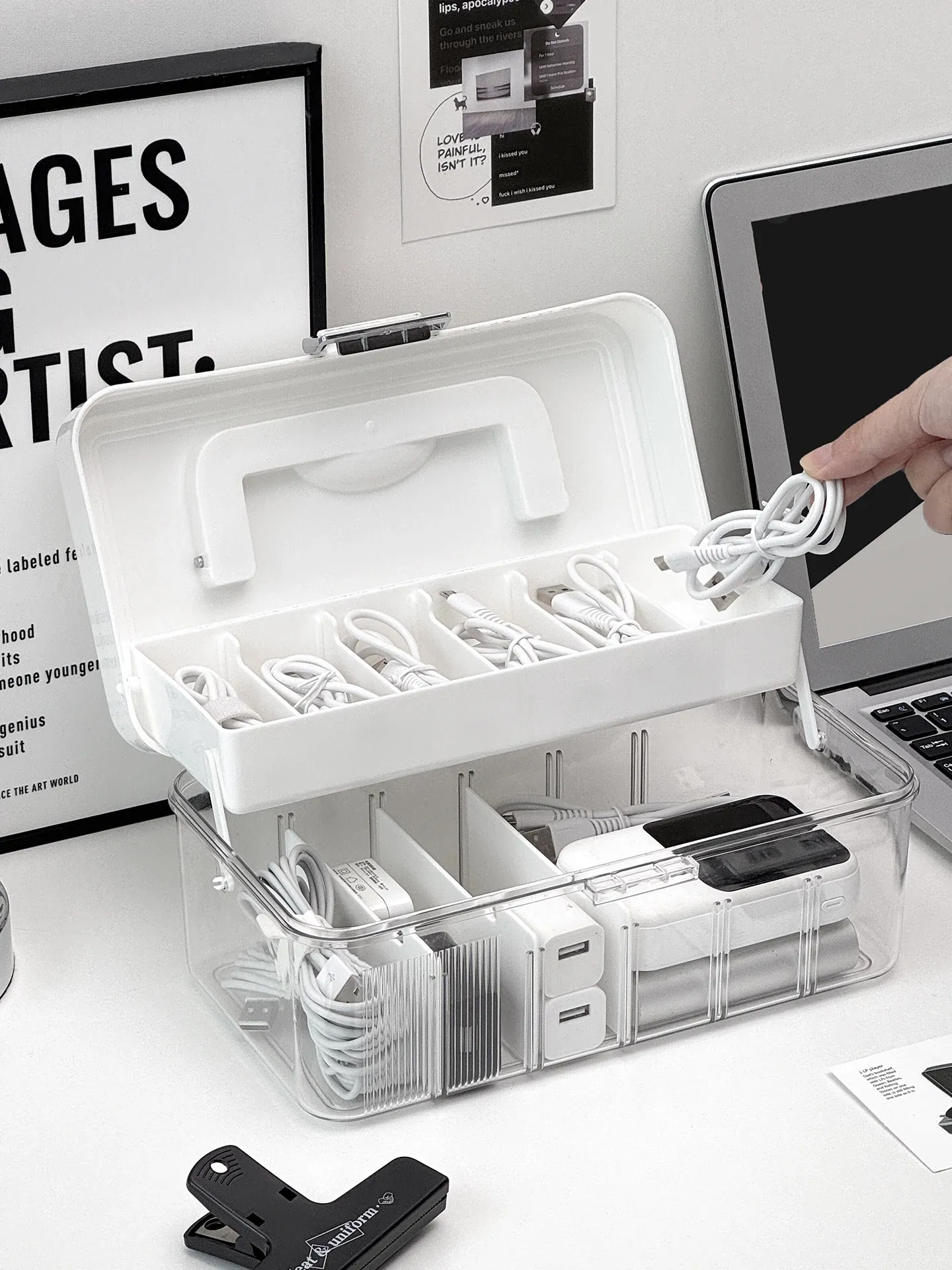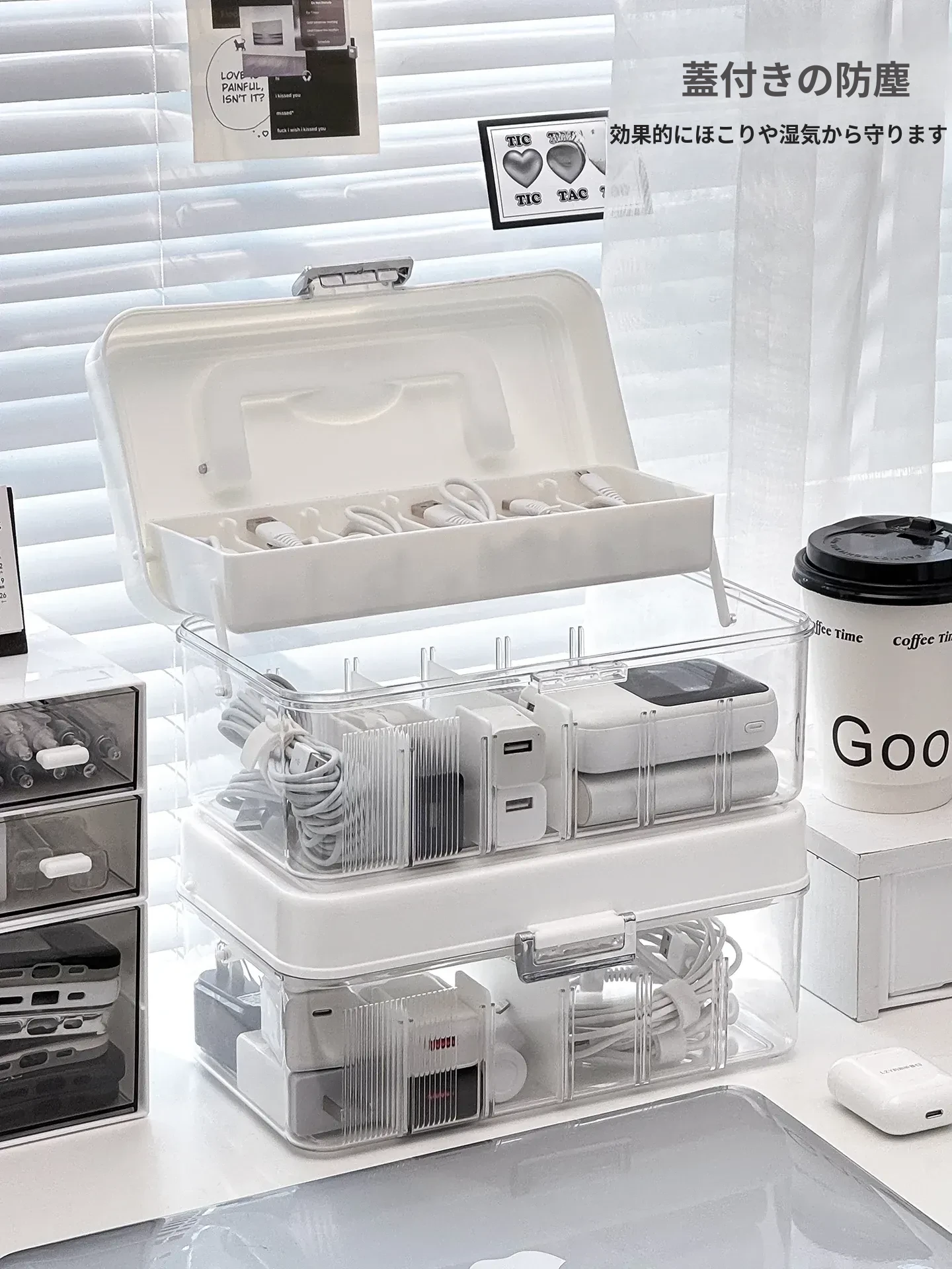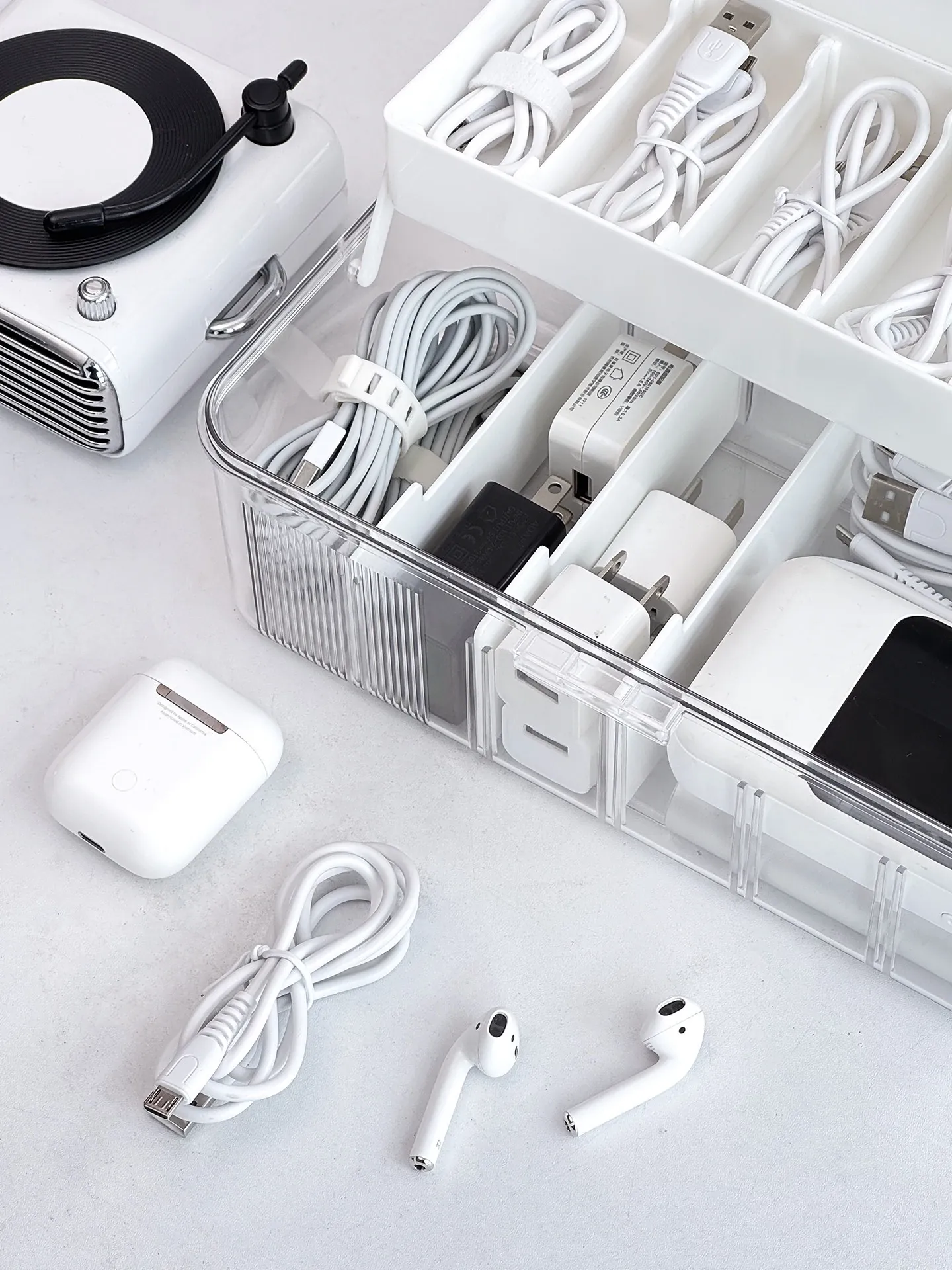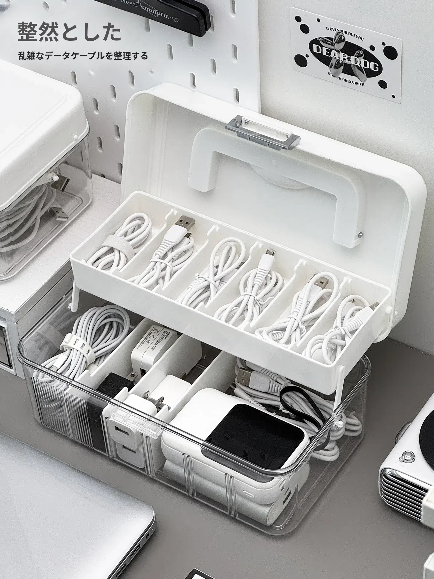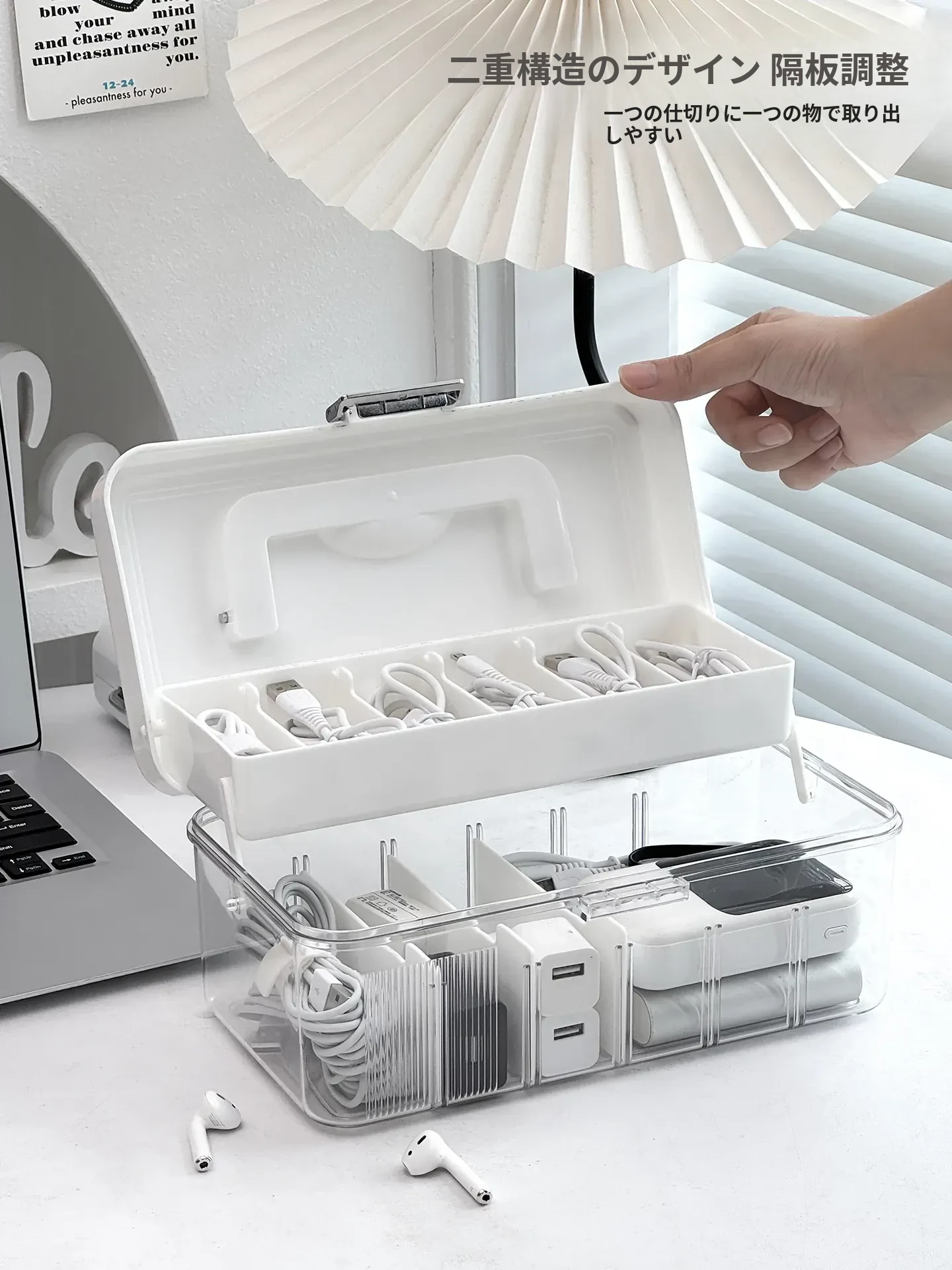 データケーブル収納ボックス|デスク上の大容量スマホ充電ケーブル整理神器|仕切り付き充電器ケーブル管理器でスッキリ整理!