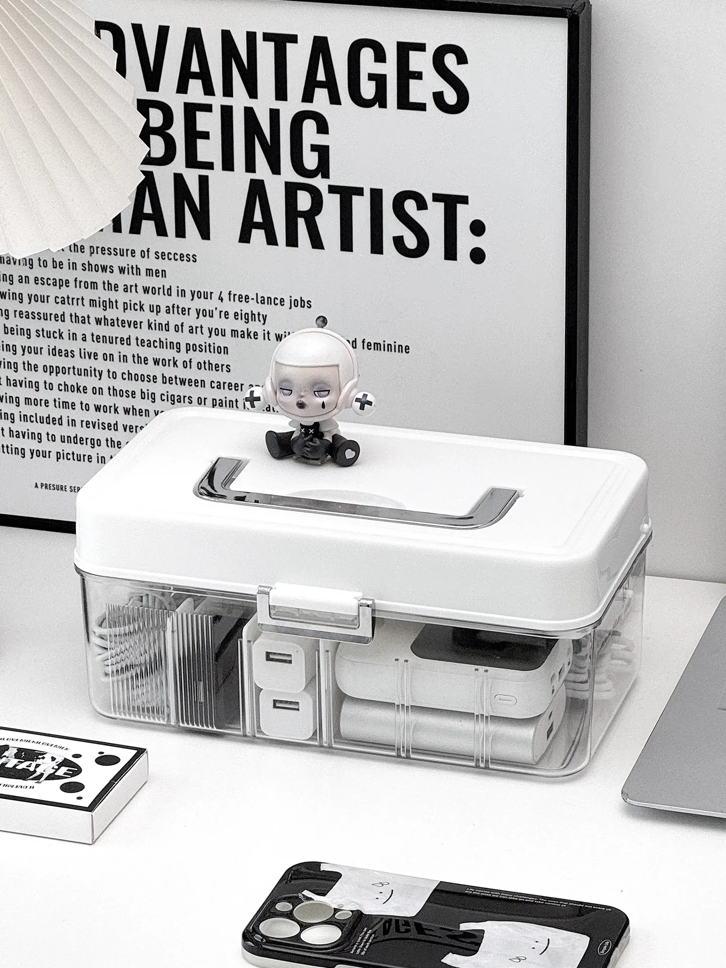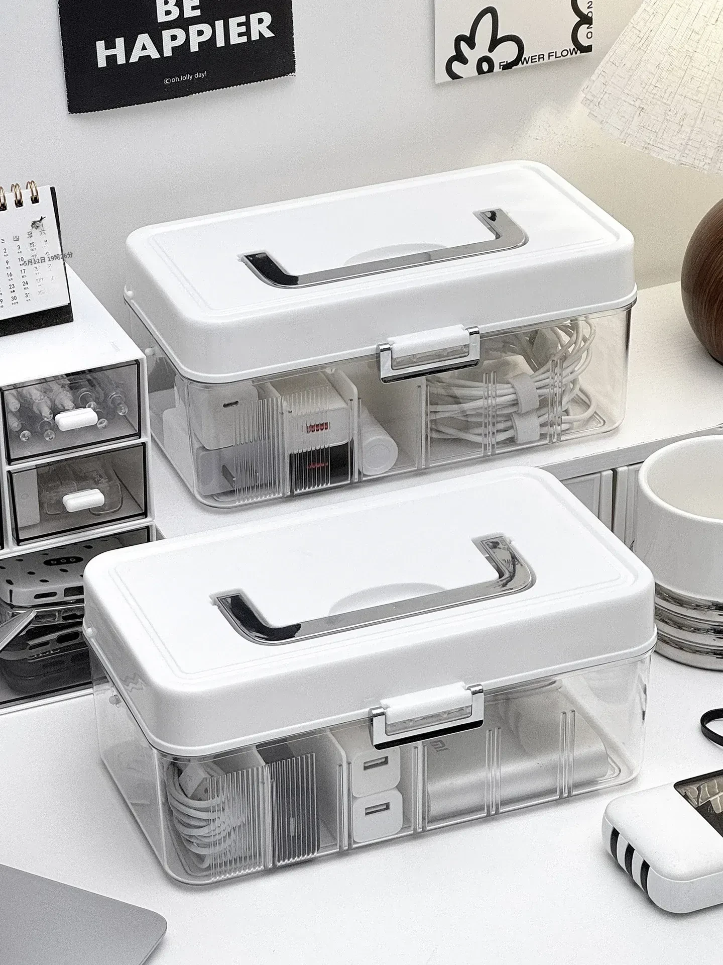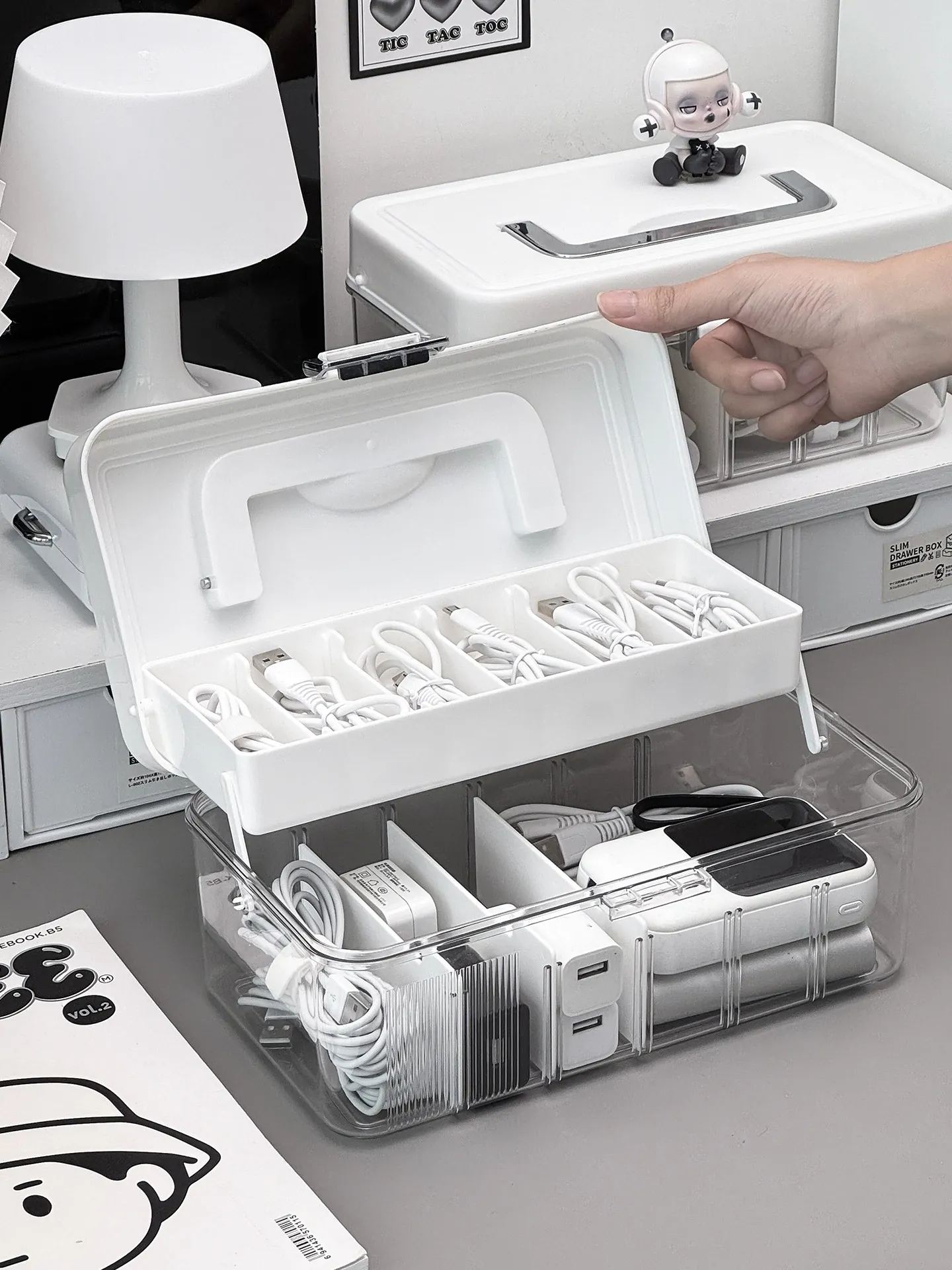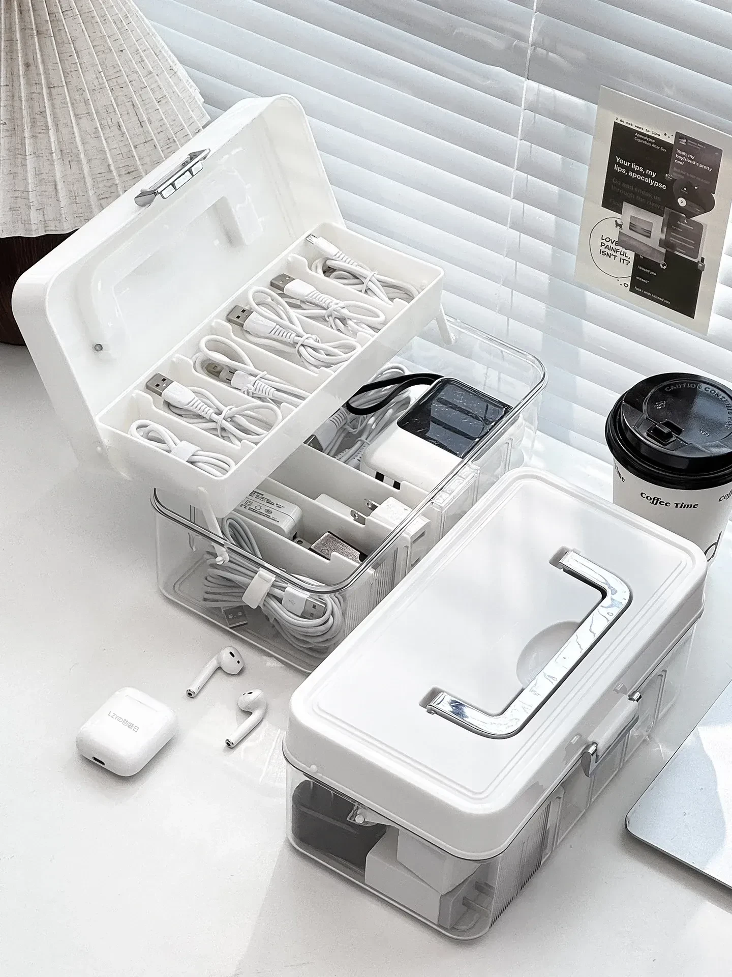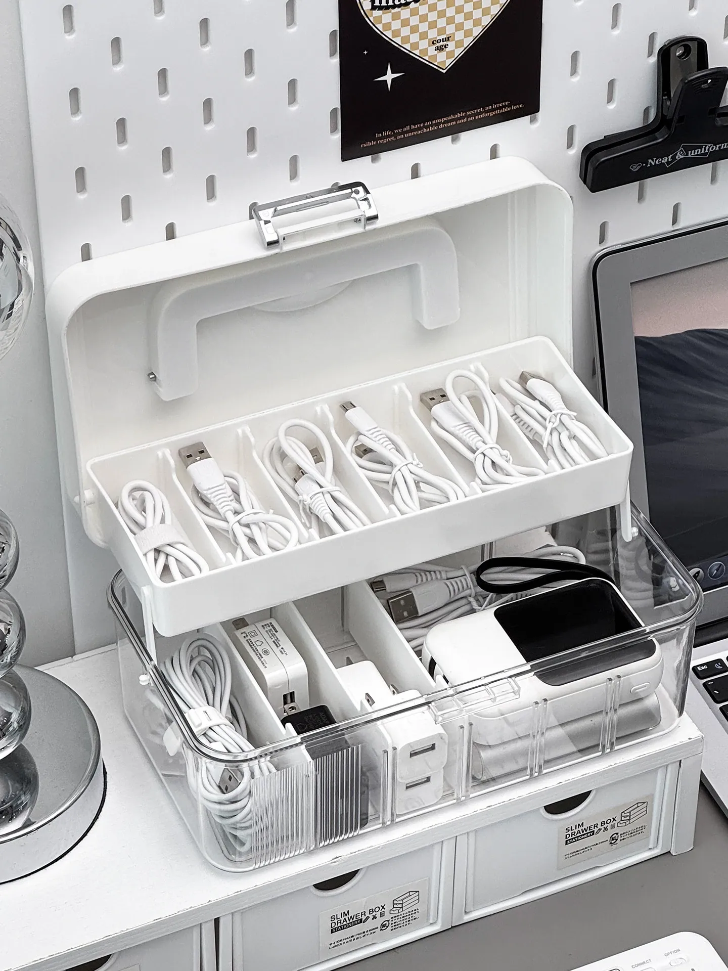 データケーブル収納ボックス|デスク上の大容量スマホ充電ケーブル整理神器|仕切り付き充電器ケーブル管理器でスッキリ整理!