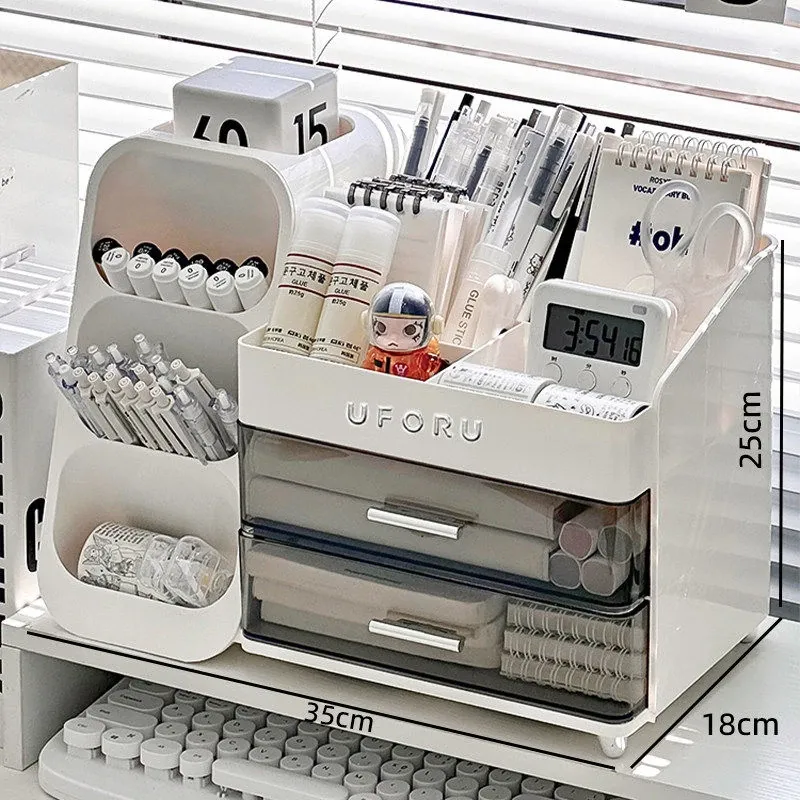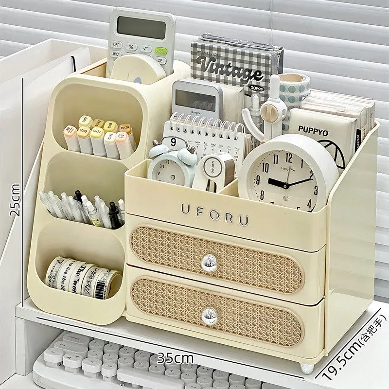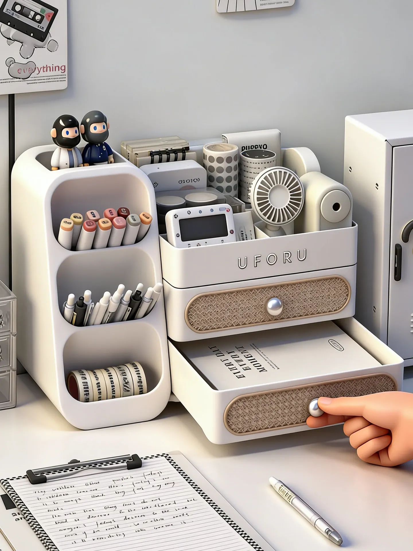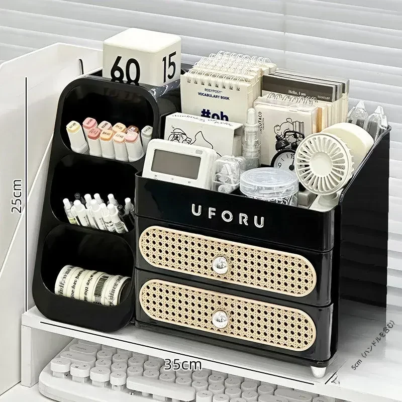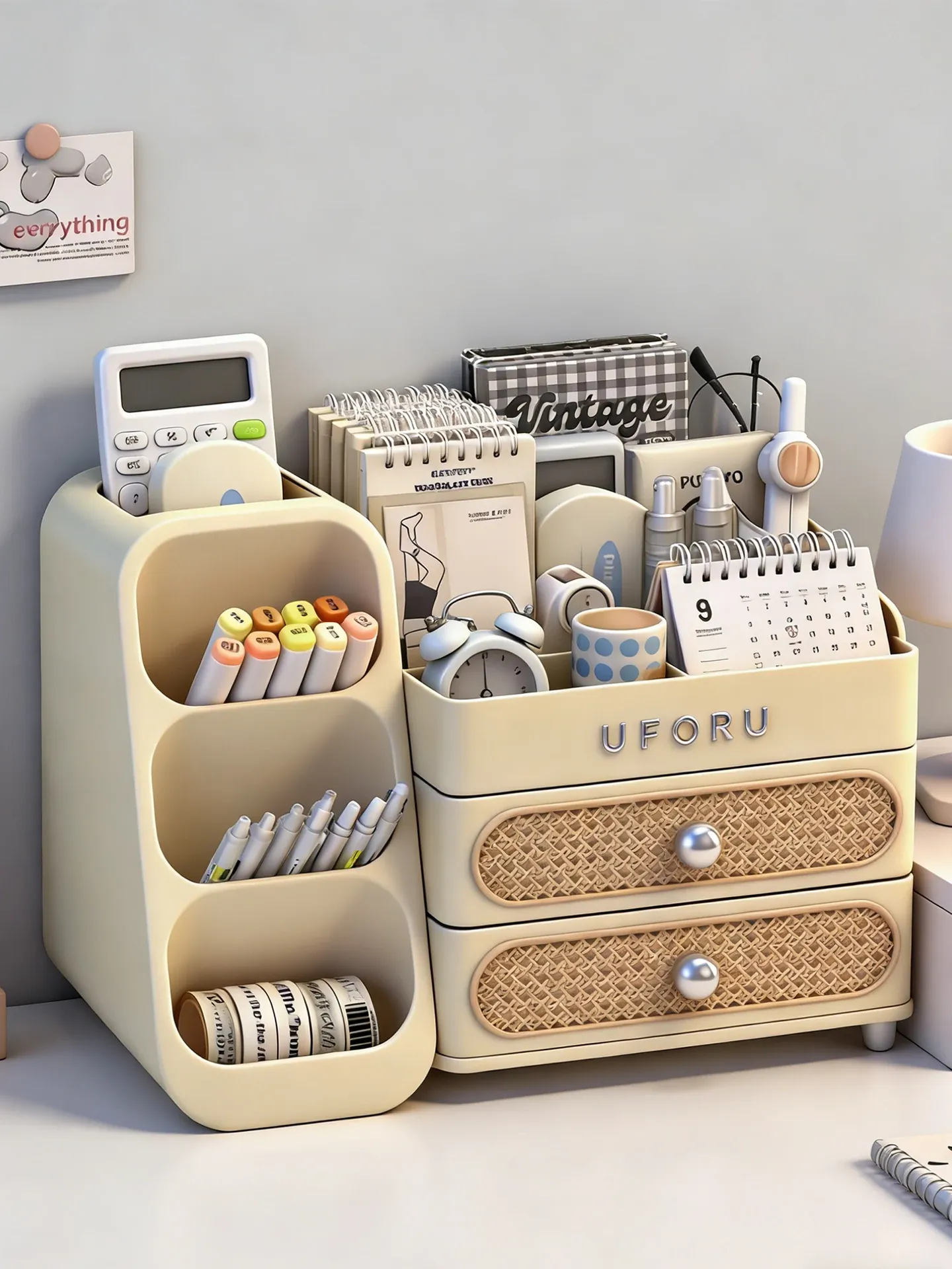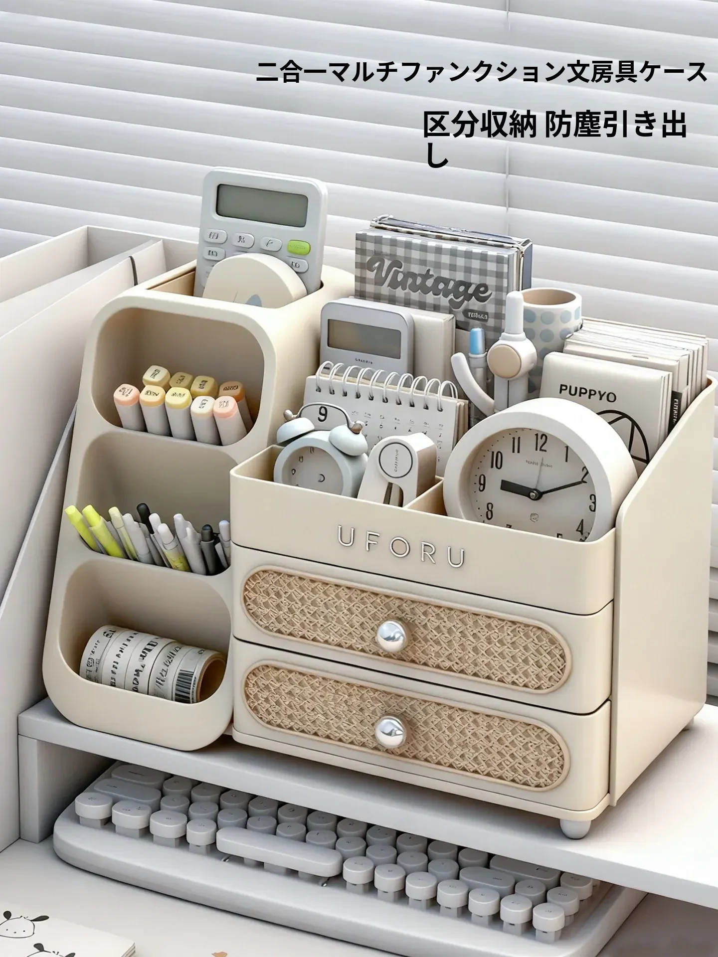 デスク用多機能収納ボックス 大容量 学生向け 書斎用 スリムペンスタンド 引き出し付き メモ帳整理に最適な必需品