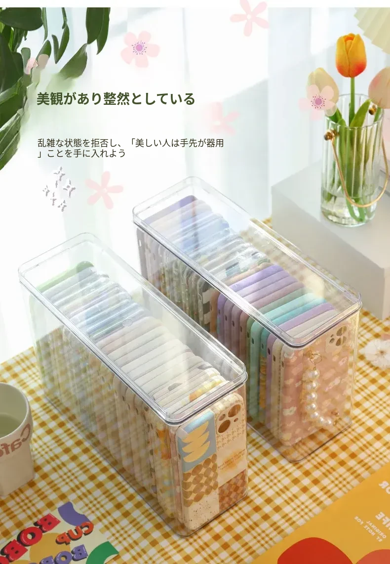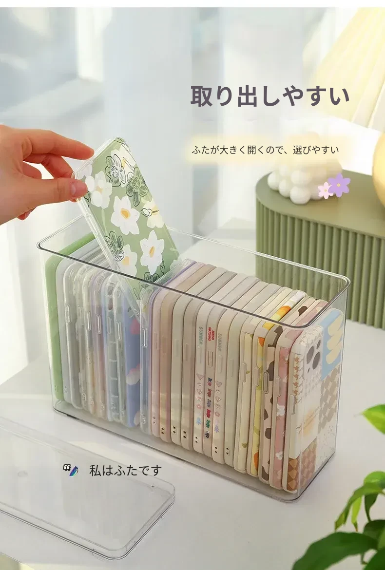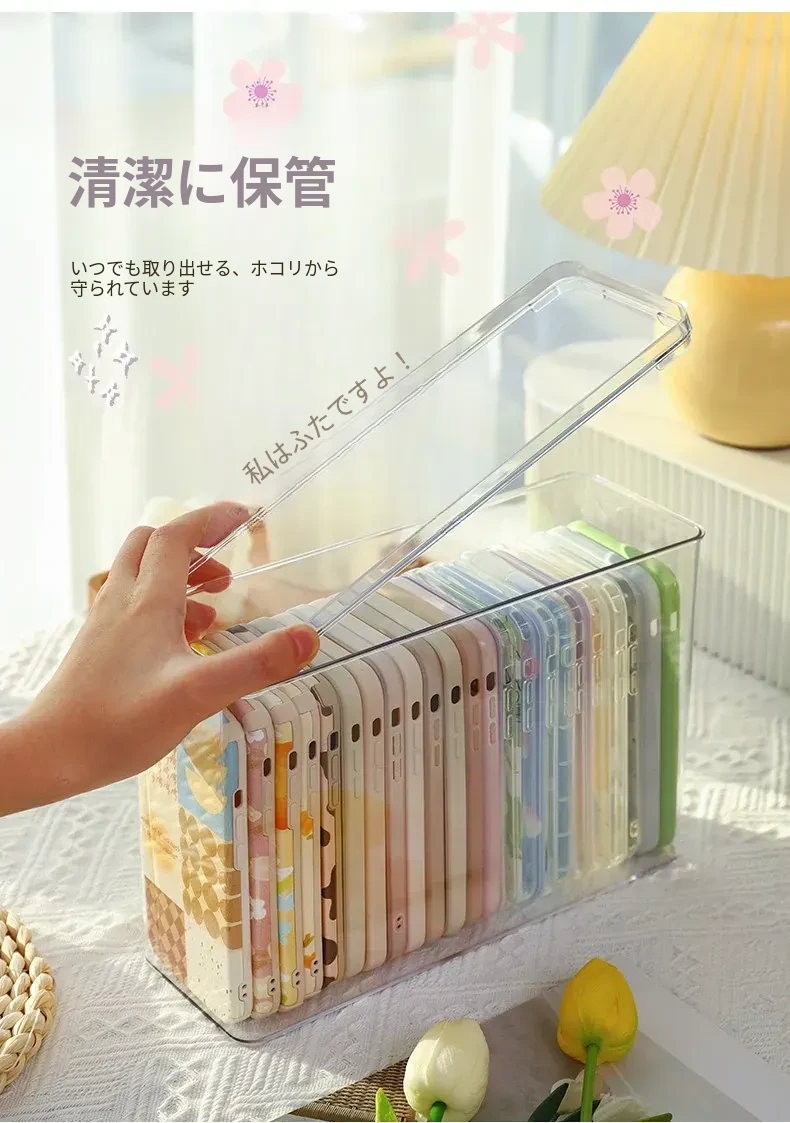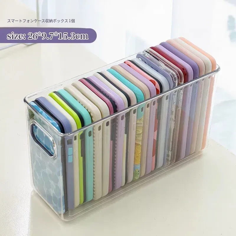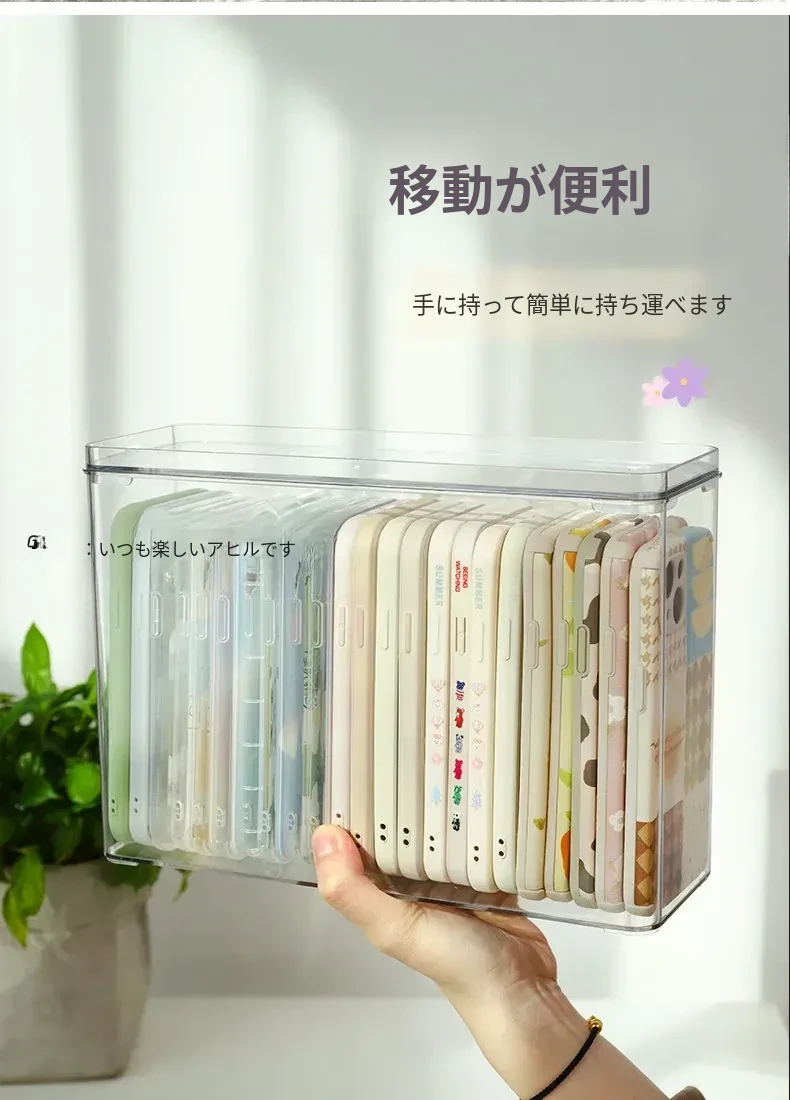 防塵透明アクリル収納ボックス - 蓋付きで大容量!多機能ハンドル付き整理ボックス、スマホケースや小物の整理に最適です。あなたの生活空間をスッキリ整えましょう!